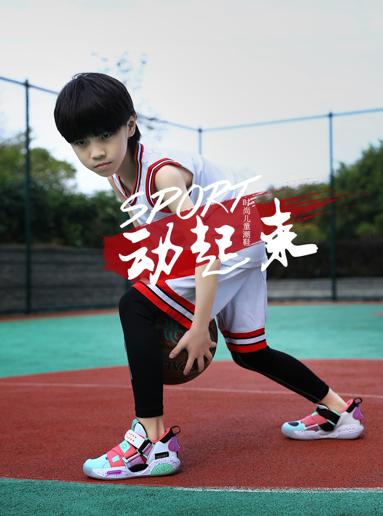 Zapatos de baloncesto para niños, zapatos de entrenamiento de combate profesional para niños, fricción sonora