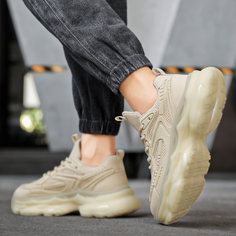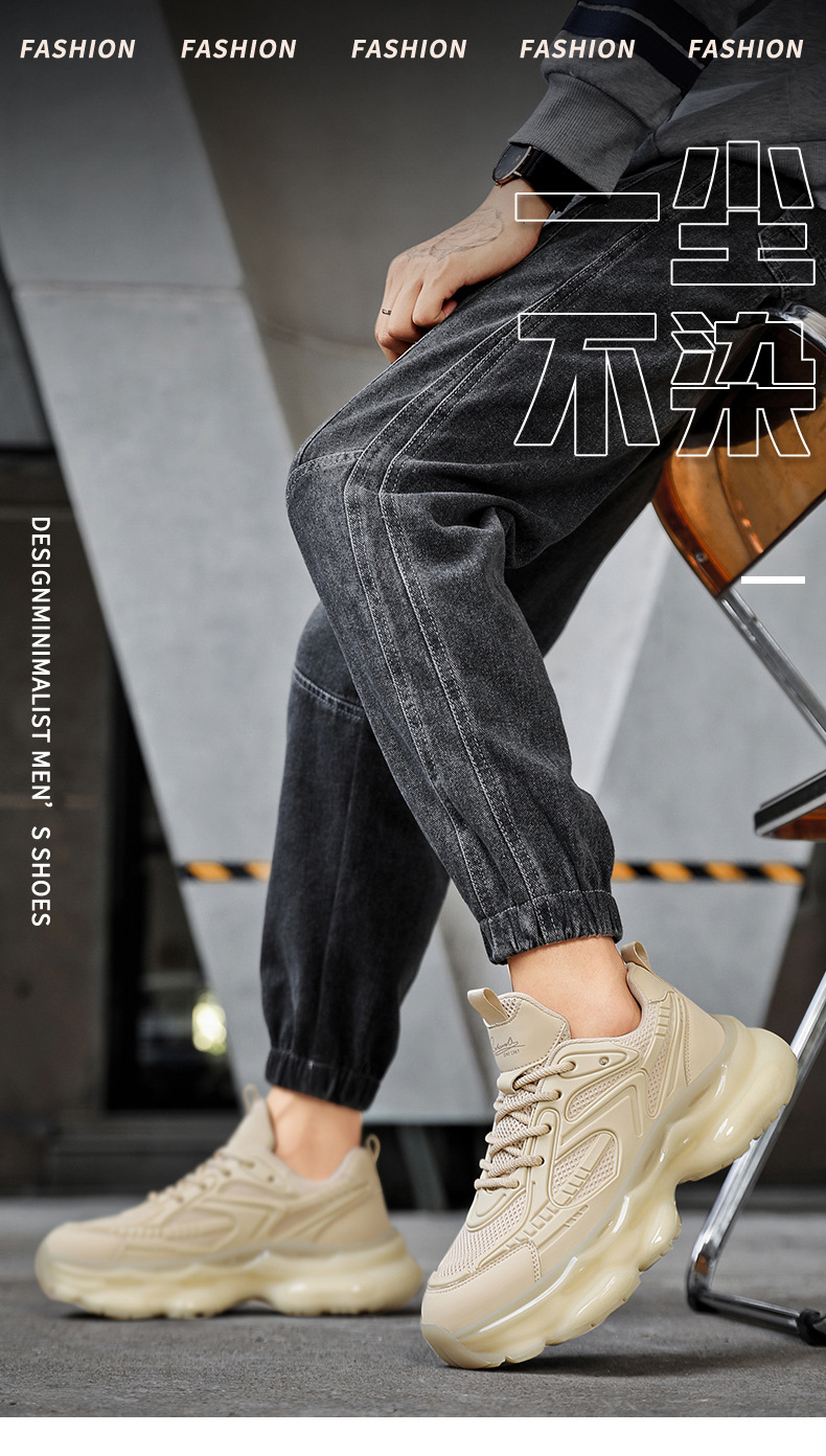 Zapatos de hombre 2025 primavera nuevos zapatos deportivos de malla transpirables de suela gruesa para hombres aumentan la altura de los zapatos casuales de samurai negro