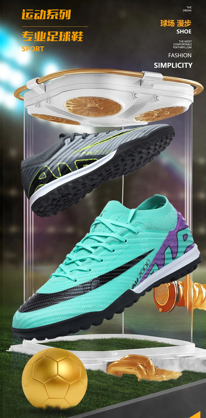 Transfronterizo comercio exterior 2025 nuevos zapatos de fútbol de alta altura, zapatos de fútbol TF, zapatos de entrenamiento de clavos 15 hombres