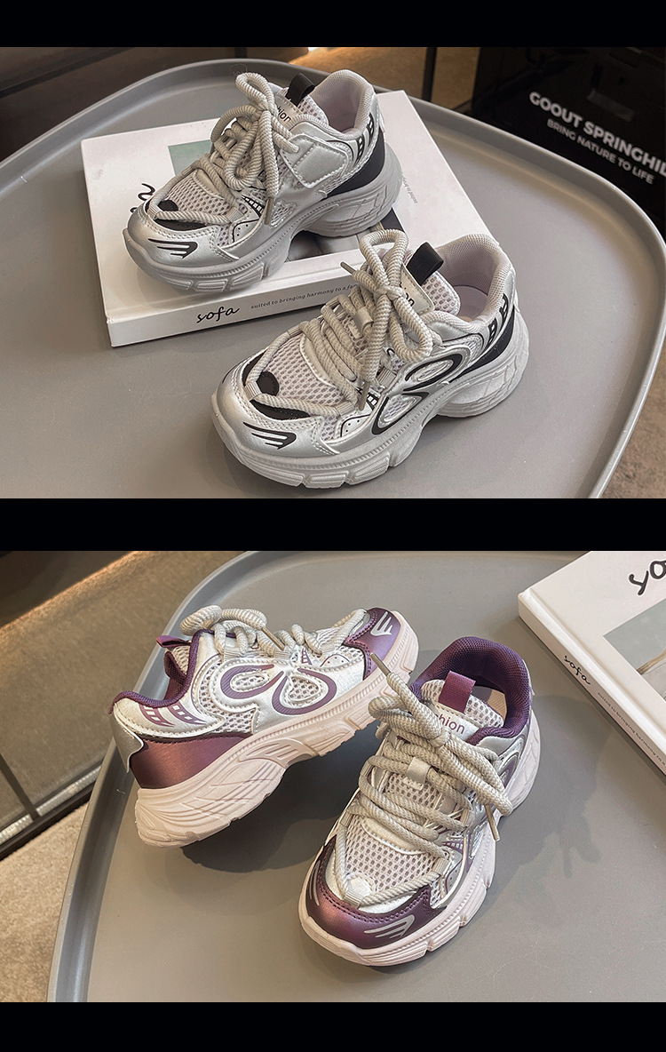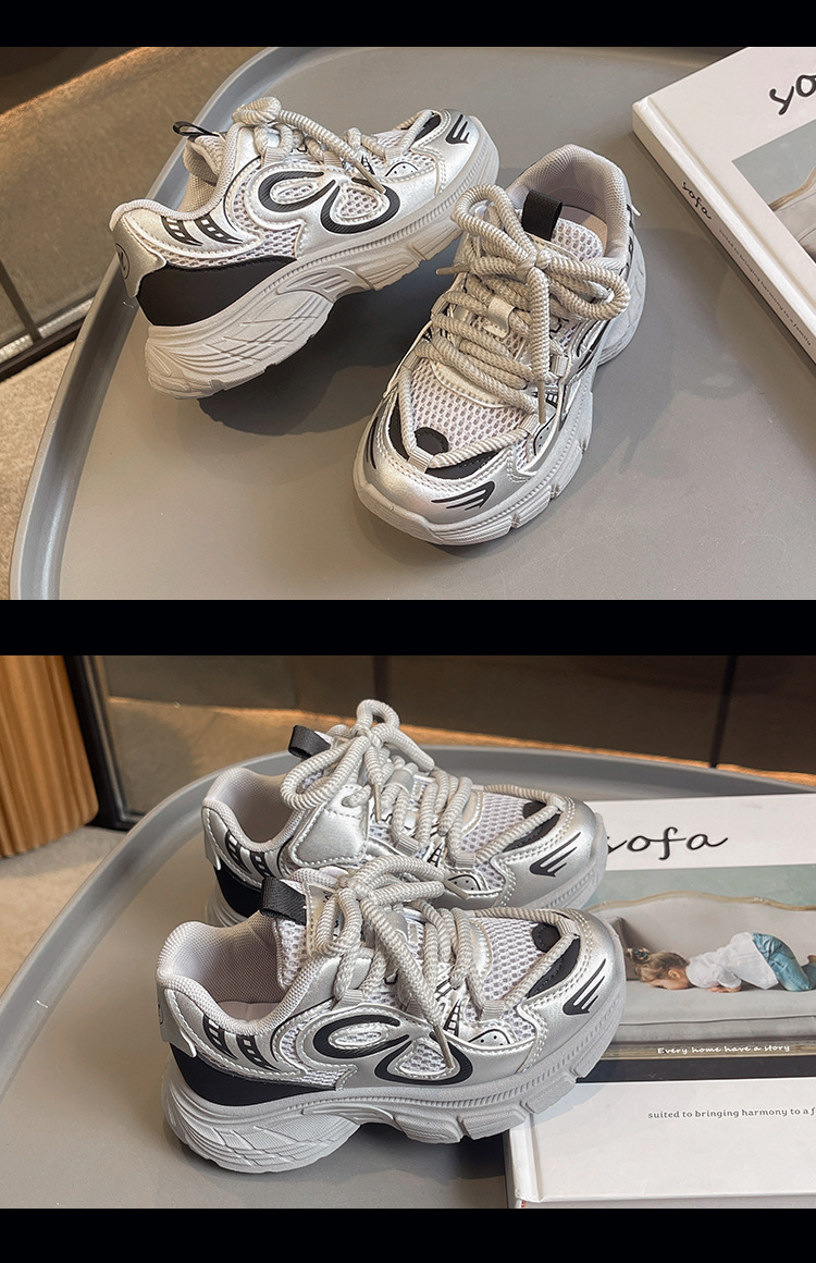 Calzado deportivo para niñas 2025 primavera nuevos zapatos de papá para niños zapatos para niños zapatos para correr para niños de todos los partidos