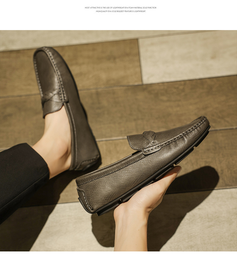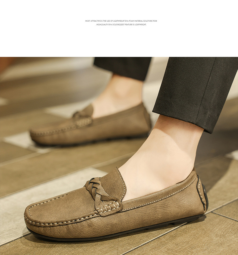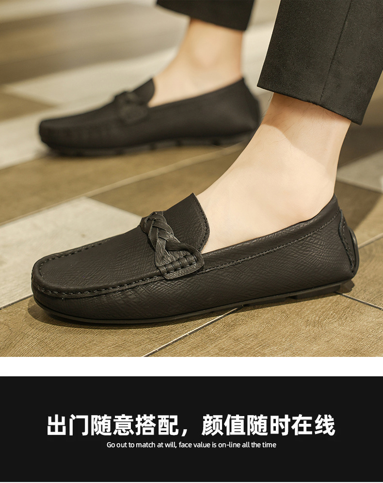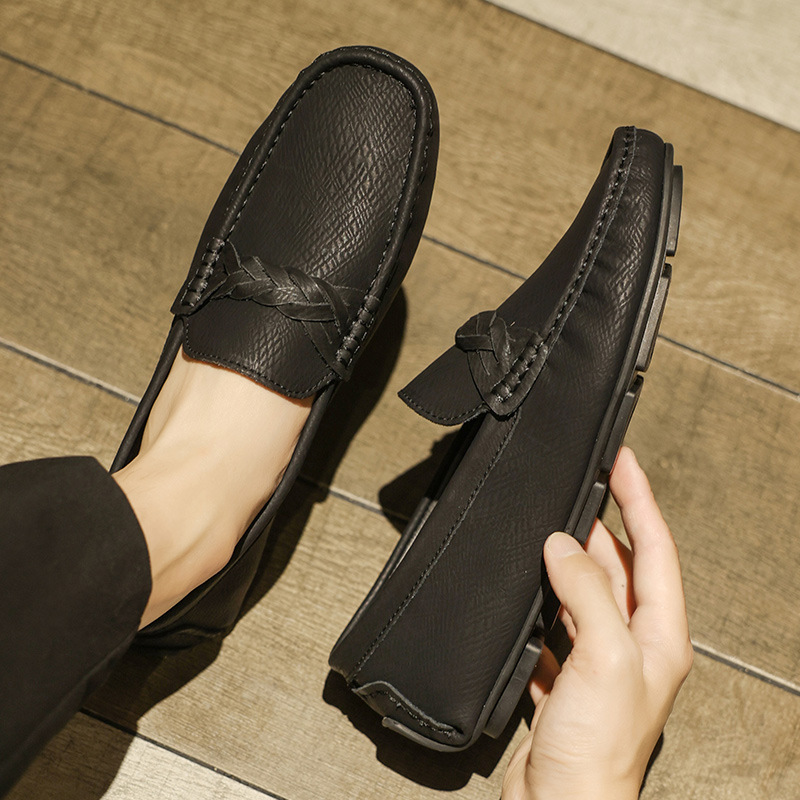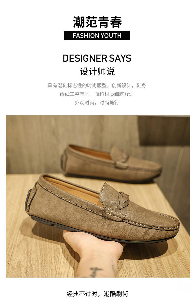 2025 verano nuevo estilo Doudou zapatos hombres versión coreana de un pie perezoso simple transpirable zapatos de cuero casuales para hombres fondo suave para hombres