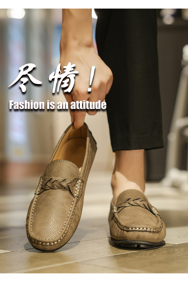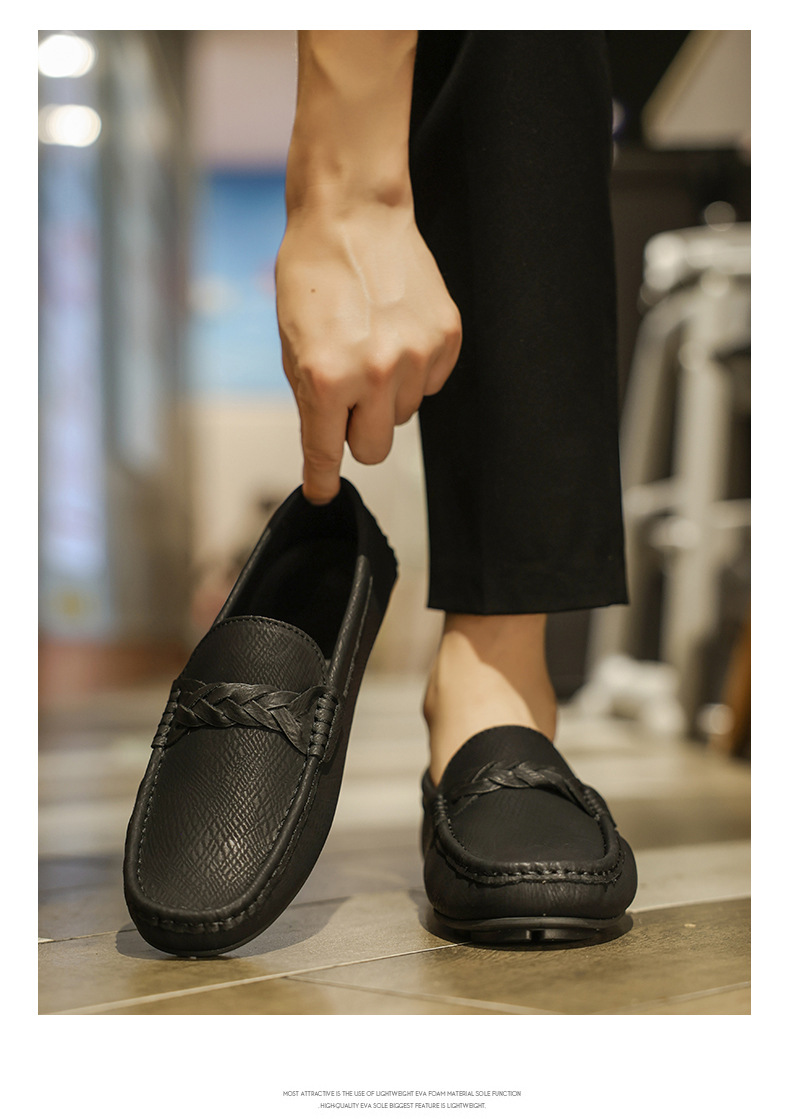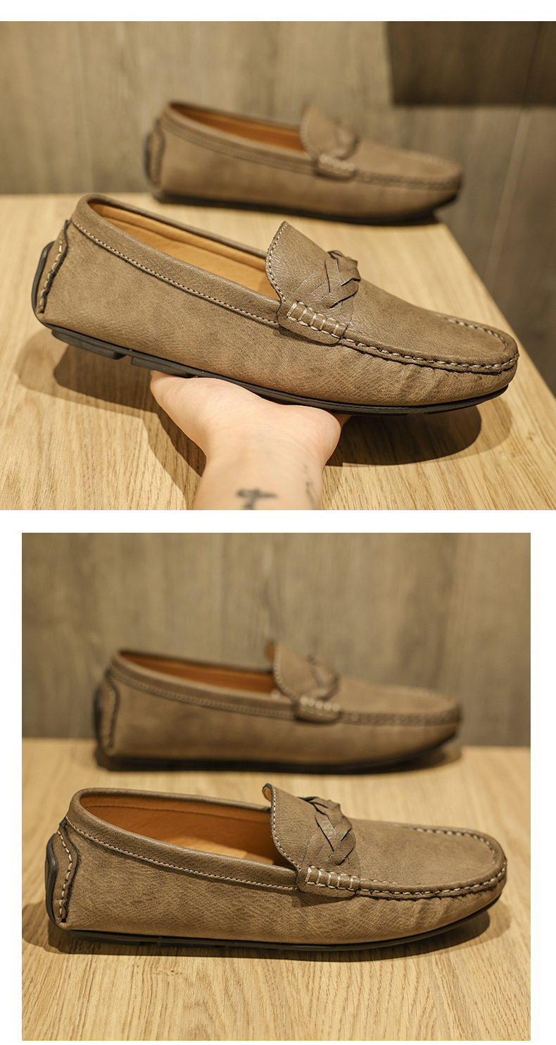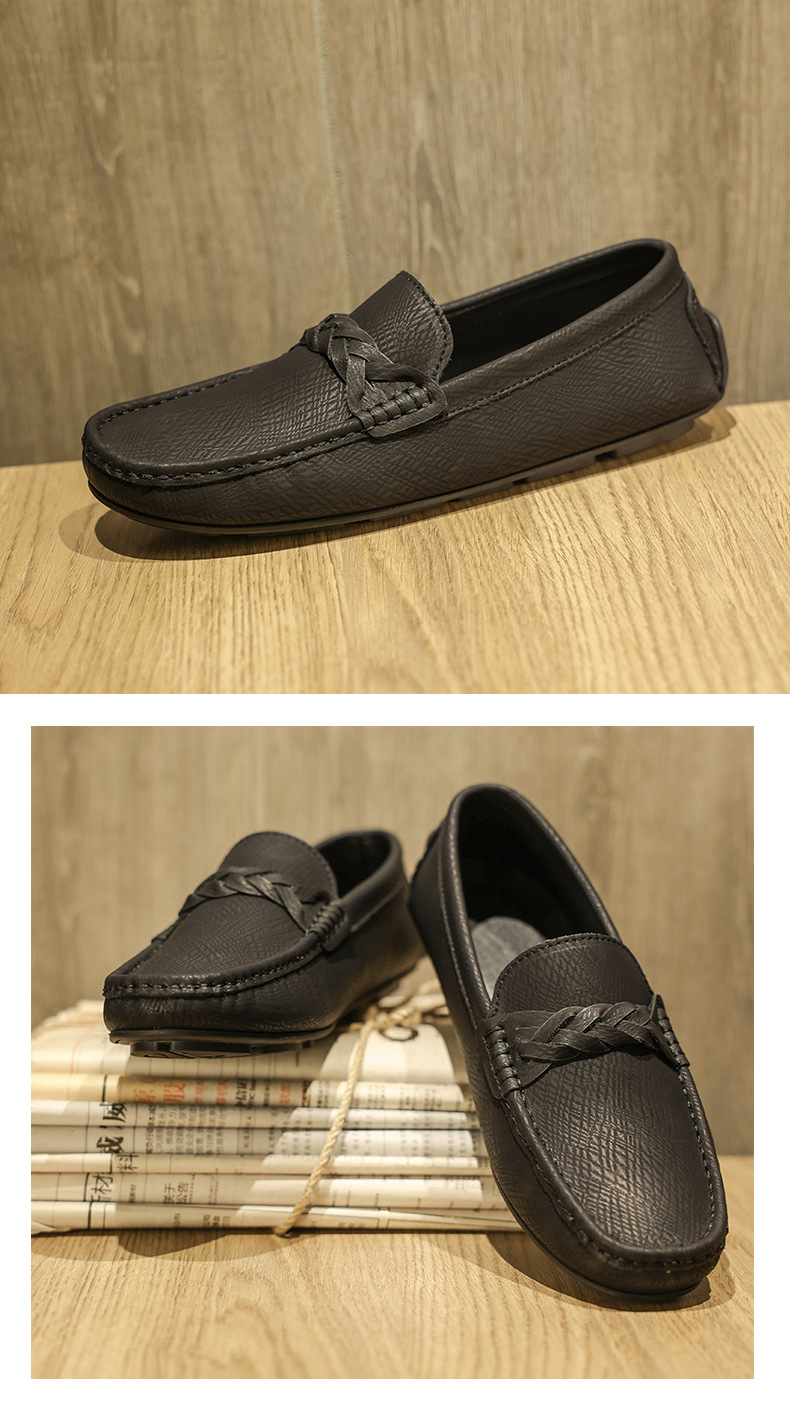 2025 verano nuevo estilo Doudou zapatos hombres versión coreana de un pie perezoso simple transpirable zapatos de cuero casuales para hombres fondo suave para hombres