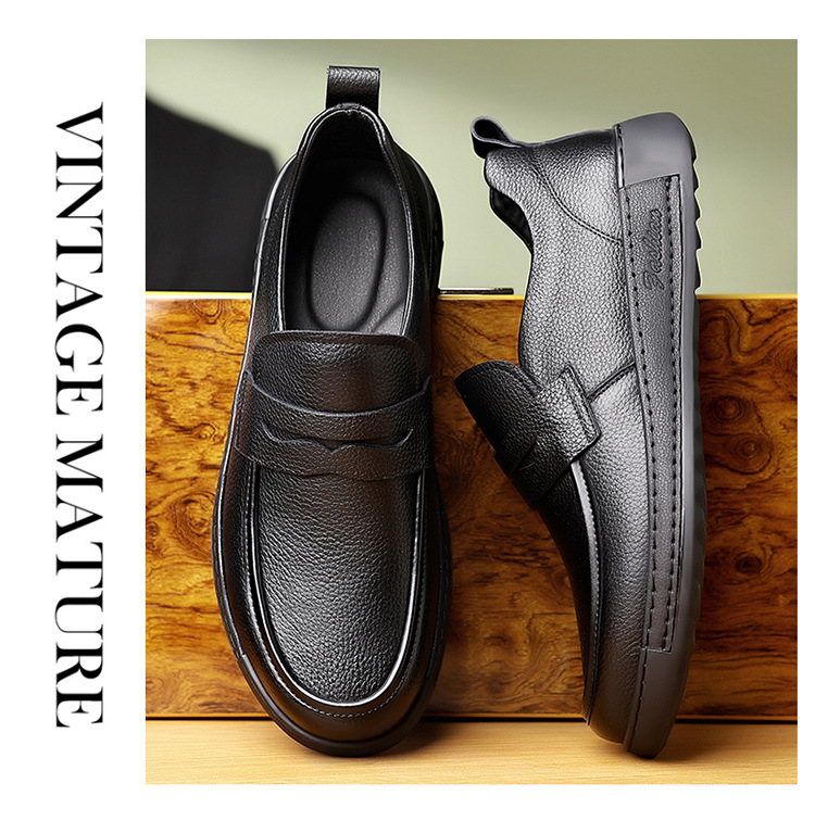 Zapatos de hombre 2025 primavera nuevo estilo casual de suela blanda para conducir zapatos Doudou zapatos de cuero casuales perezosos británicos de un pie para hombre
