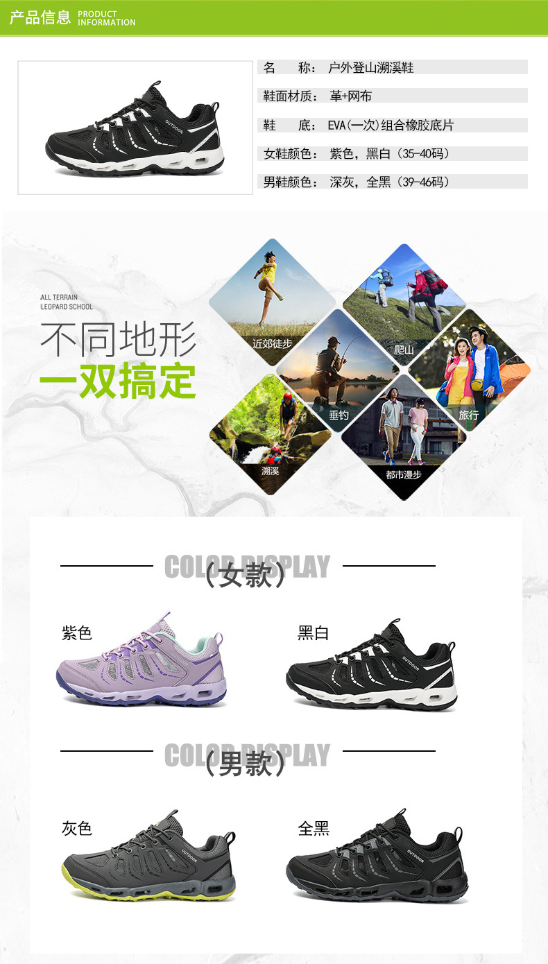Ventas directas de fábrica transfronterizas zapatos para exteriores para hombres y mujeres del mismo estilo, zapatos anfibios antideslizantes, resistentes al desgaste, transpirables y secos para vadear