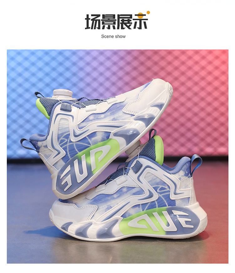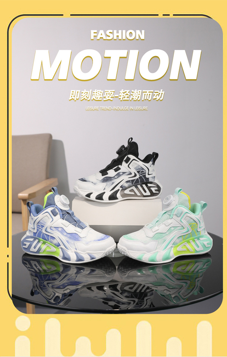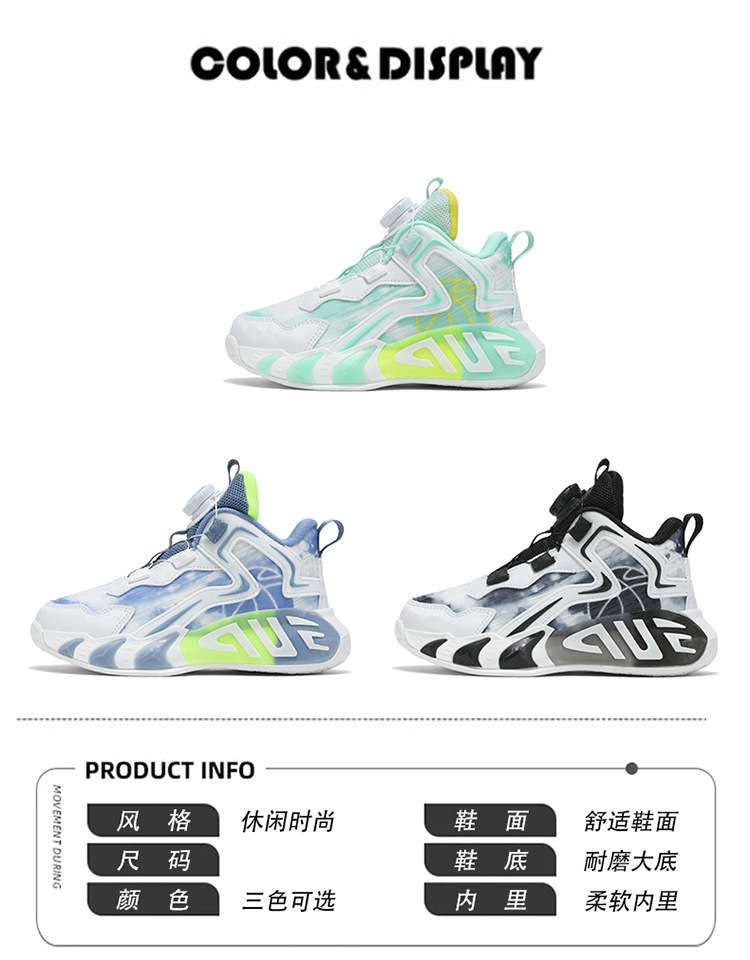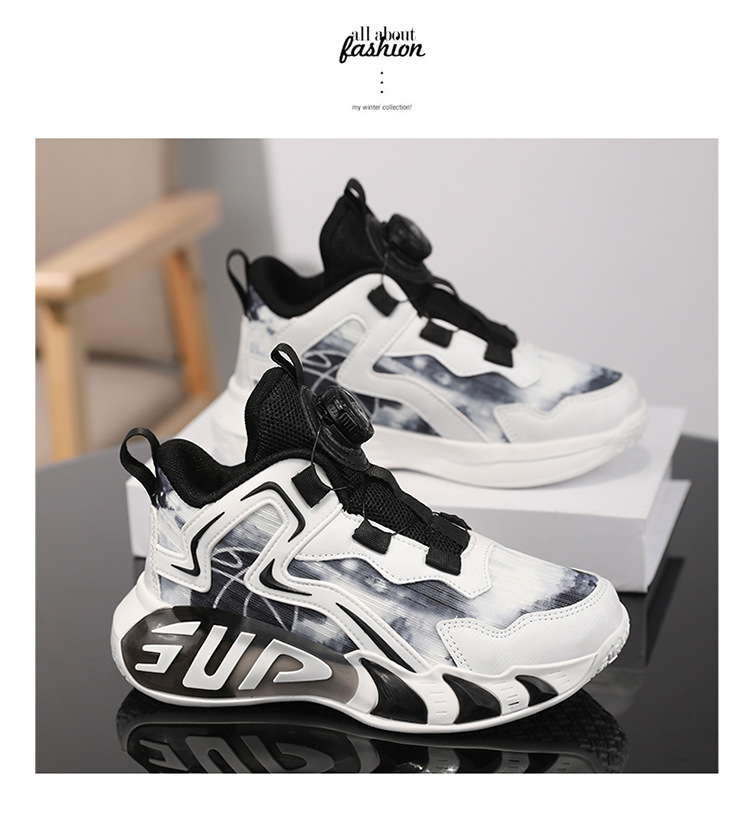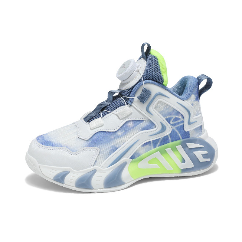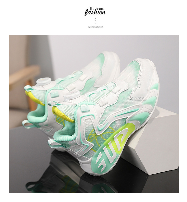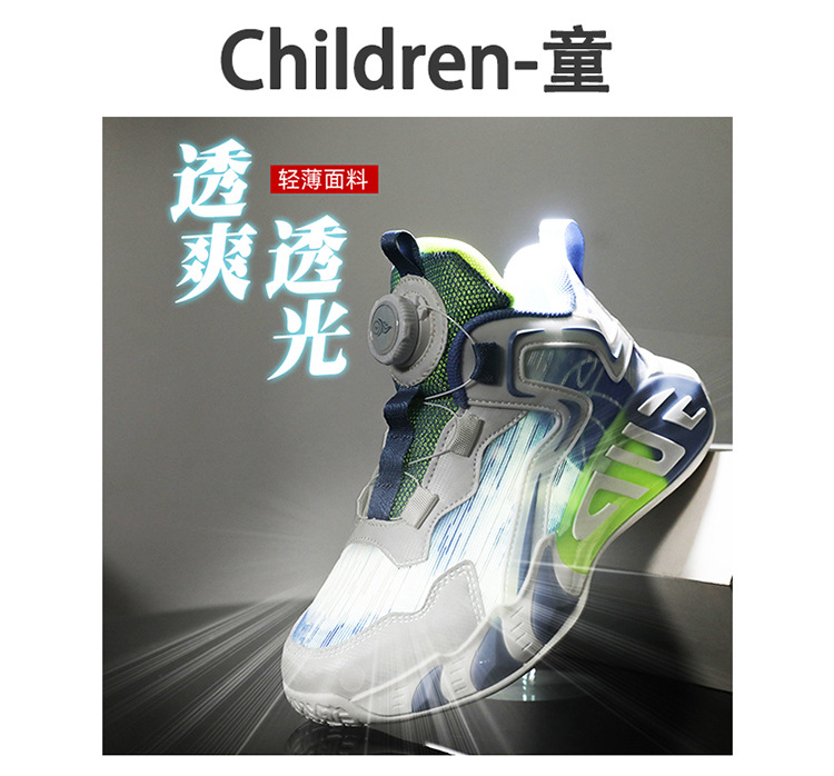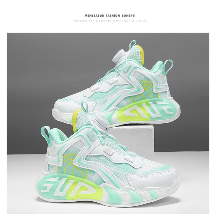 Zapatos para niños, zapatos de baloncesto para niños, primavera y verano, nuevos zapatos para correr transpirables de malla, zapatos deportivos con botones para niños de mediana edad, marea