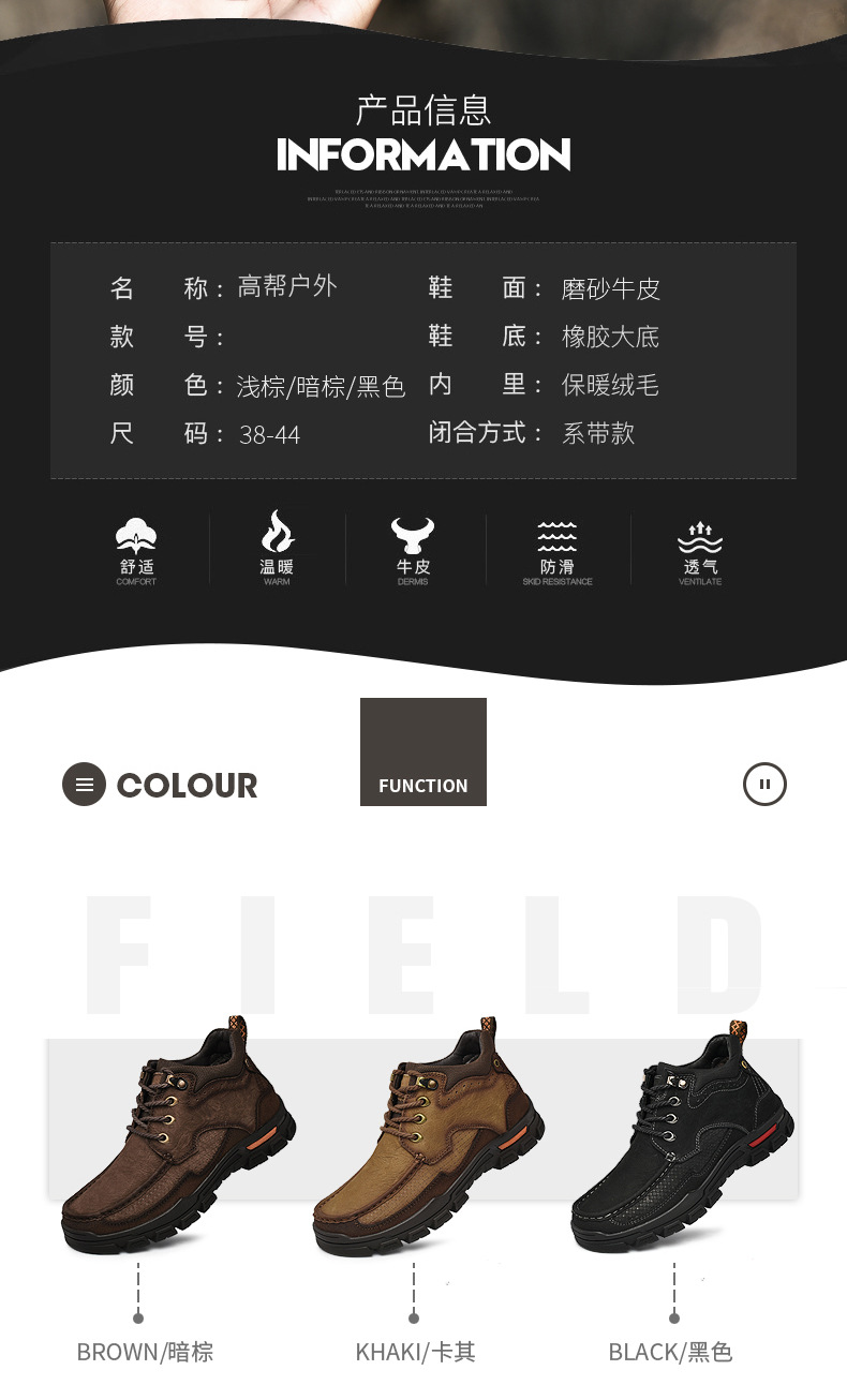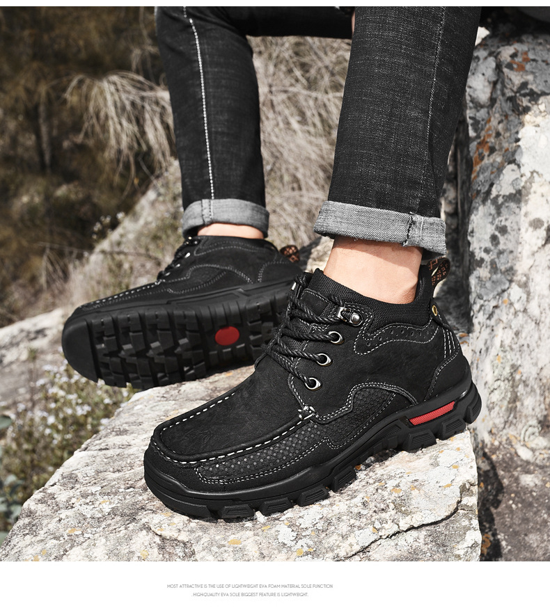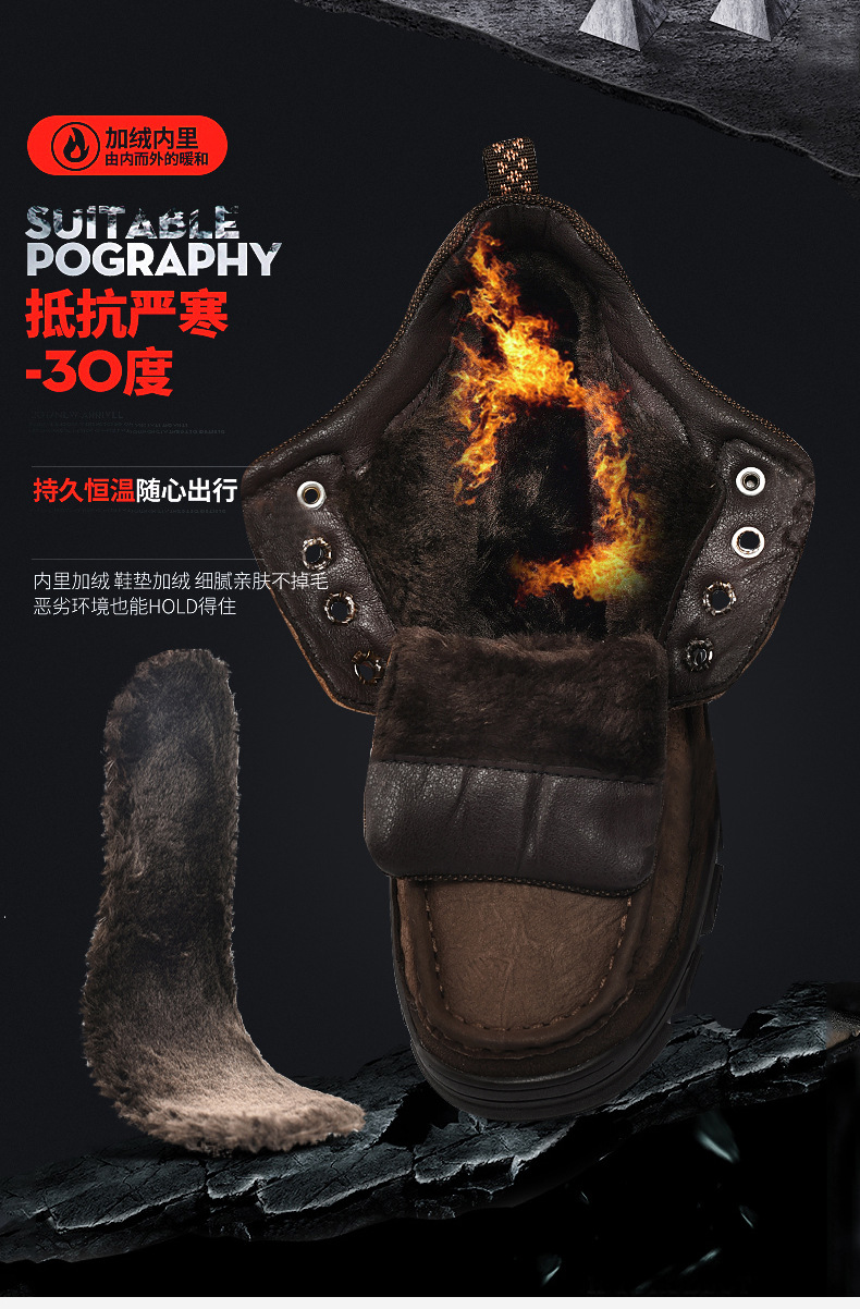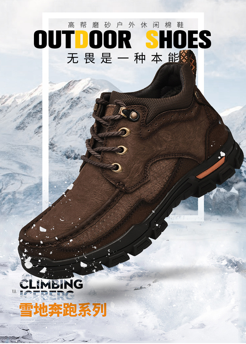 Paul camel zapatos de algodón de cuero para hombre botas de nieve cálidas de invierno zapatos de herramientas de escalada al aire libre de suela gruesa zapatos de cuero altos