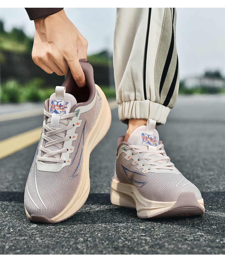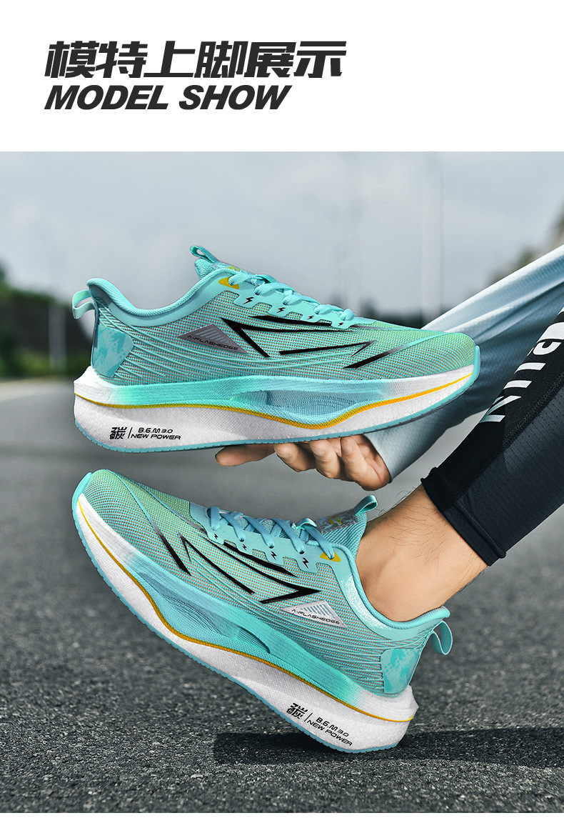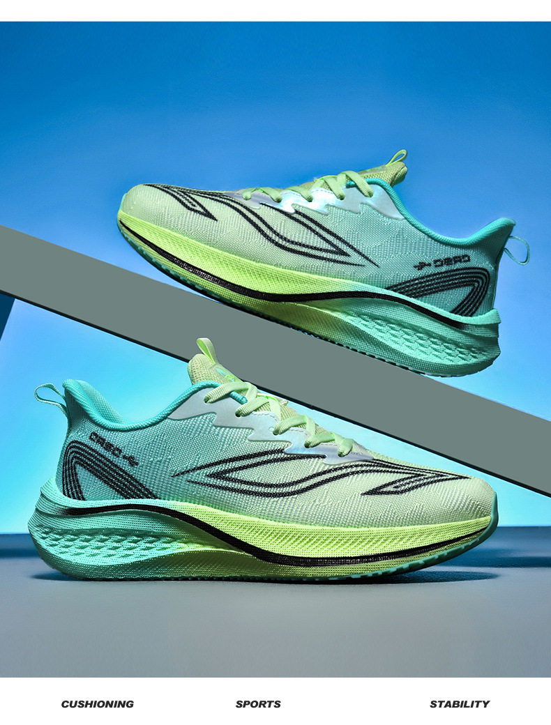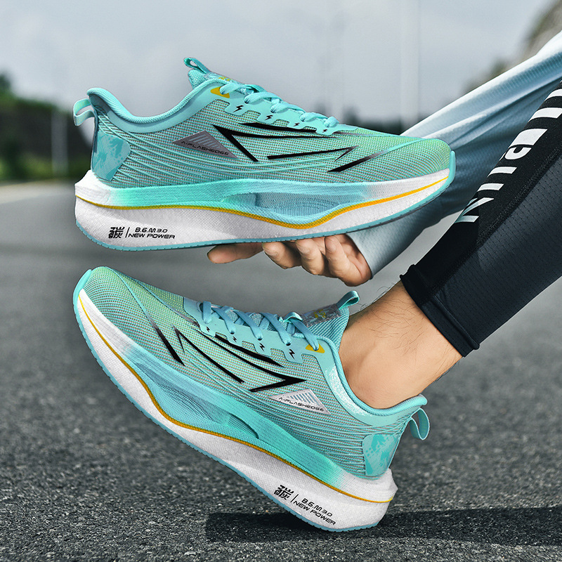 Zapatos de carreras de velocidad juvenil con suela blanda resistente al desgaste, zapatos de corrida de malla ultraligera para hombres, zapatos de deporte de carbono casuales transpirables