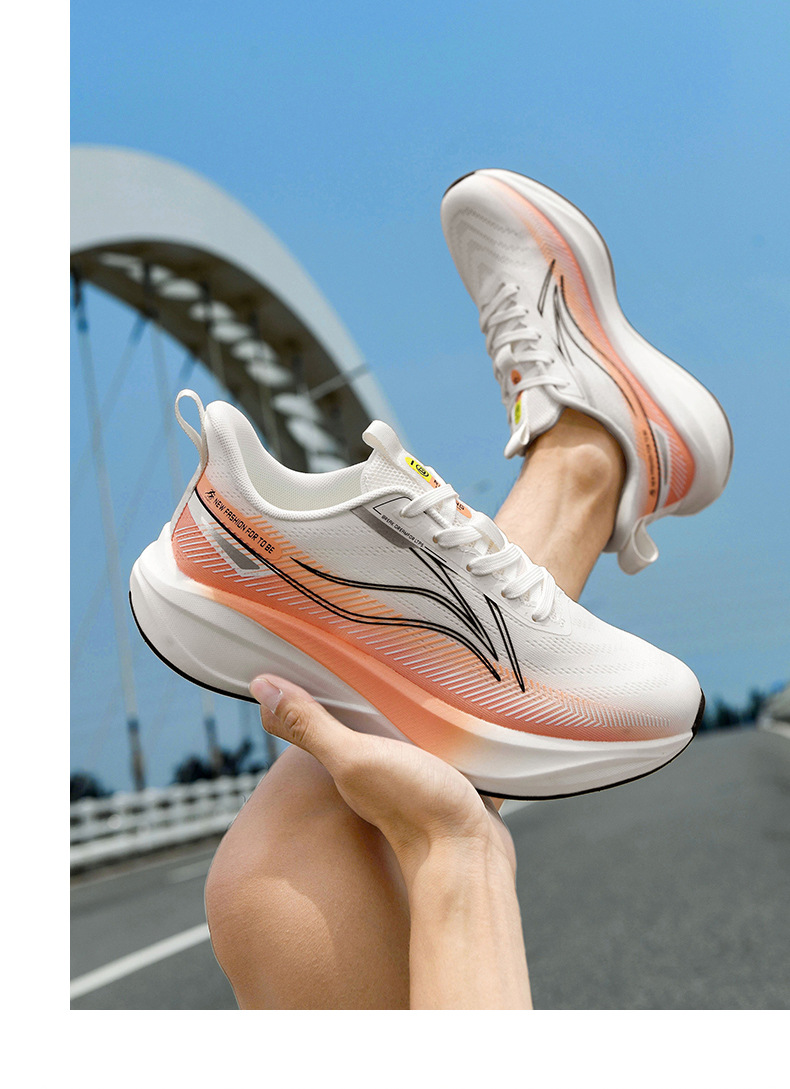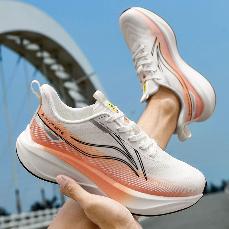 Zapatos de carreras de pareja de carbono de alta velocidad de Guochao, zapatos de corrida de malla transpirables ultraligeros y antideslizantes para hombres y mujeres