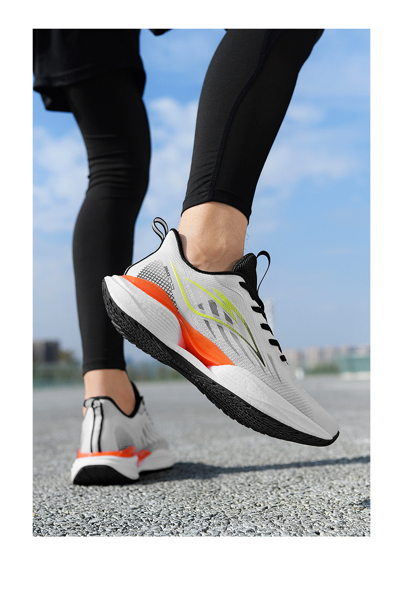 Juvenil ultra ligero ventilador amortiguador zapatos de maratón para hombres y mujeres, zapatos casuales de carbono con suela blanda
