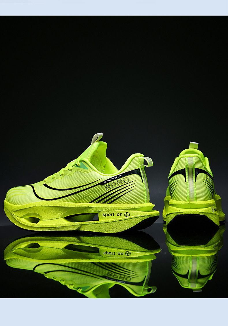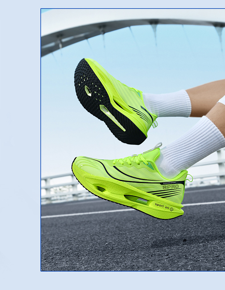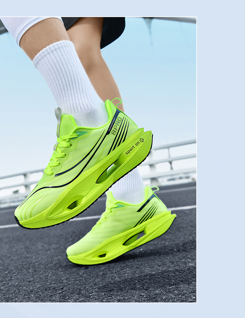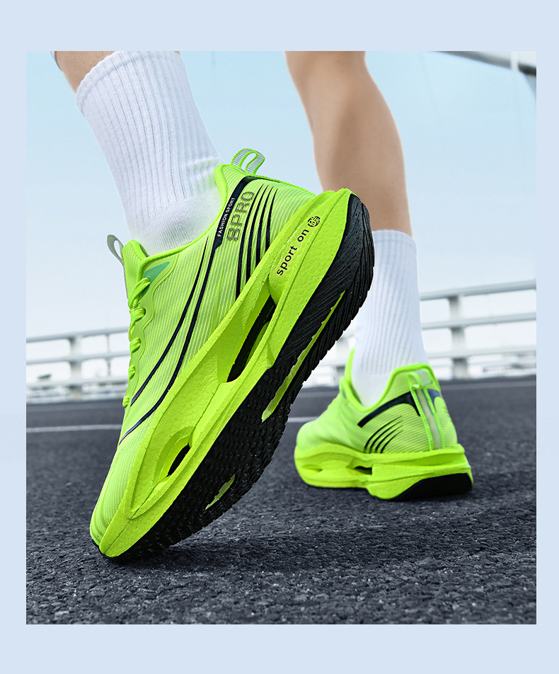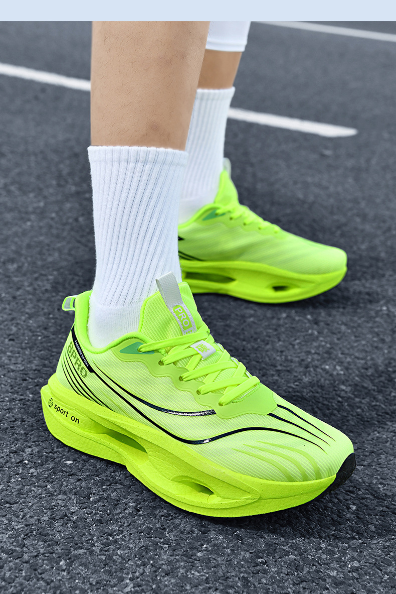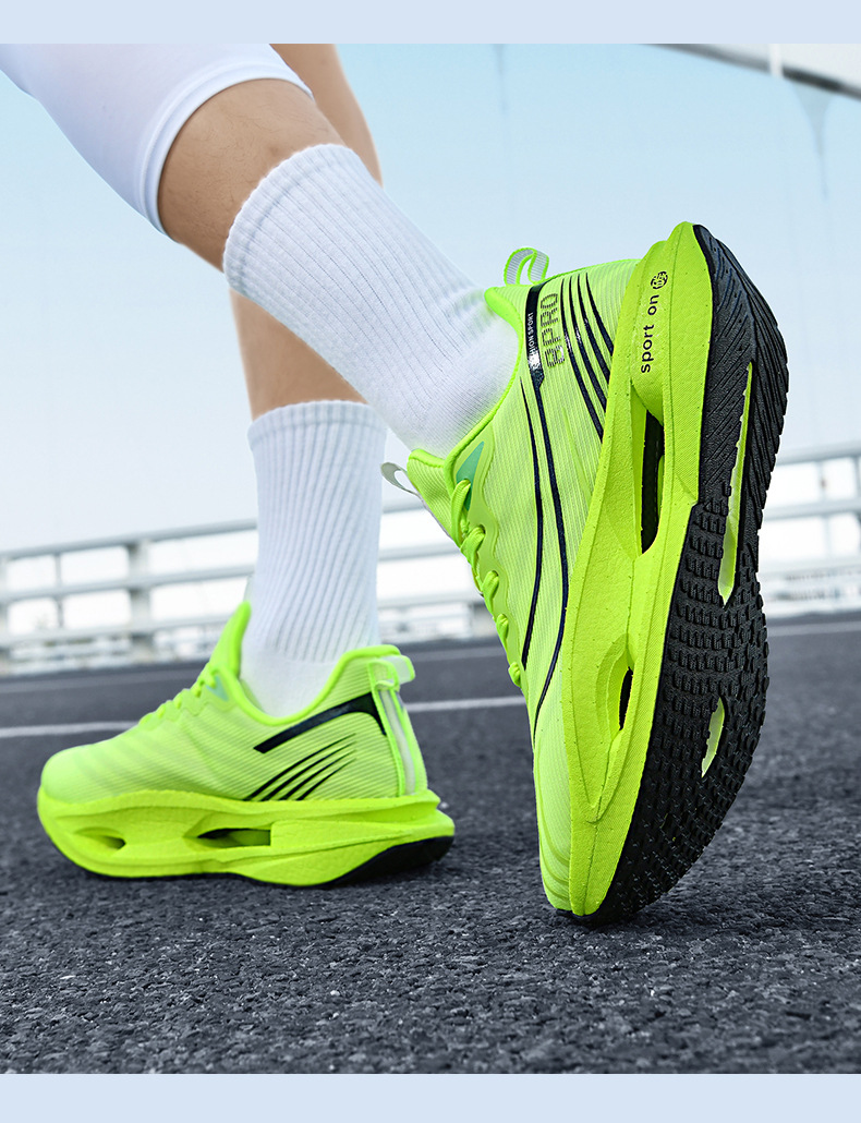 2025 nuevas zapatillas para correr de suela blanda transpirables y realmente explosivas para hombres y mujeres, todo fósforo, fricción, amortiguación de sonido, zapatillas antideslizantes