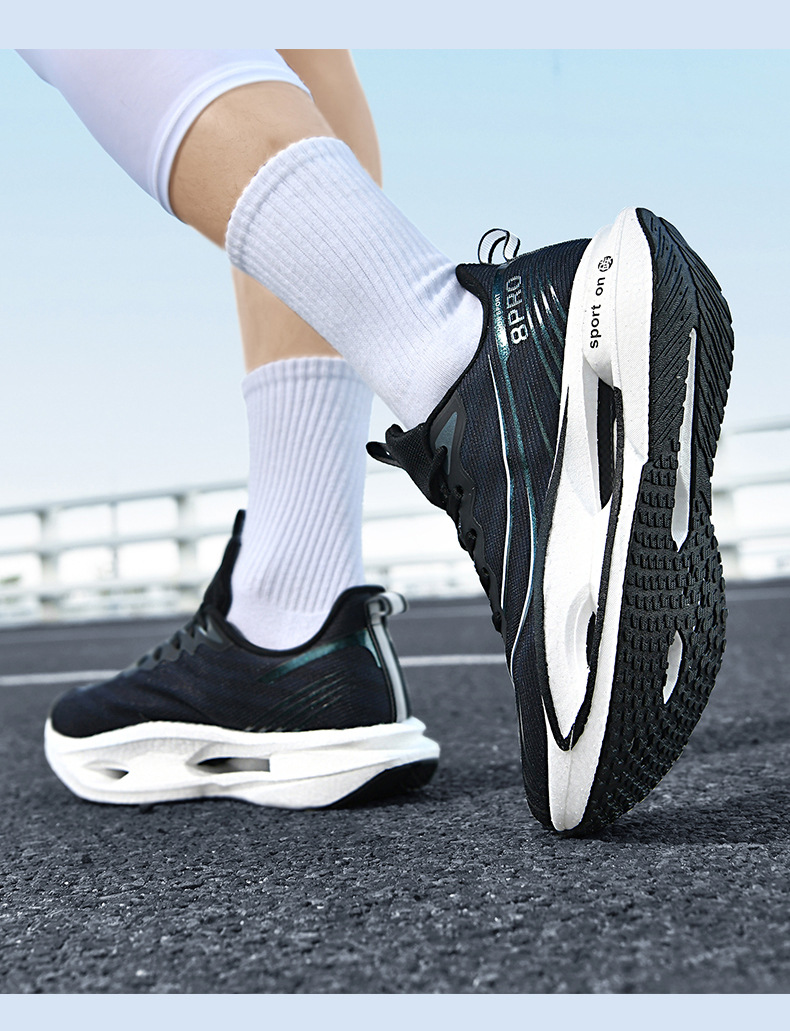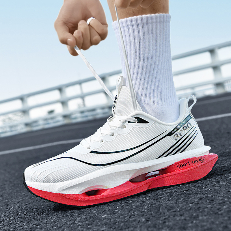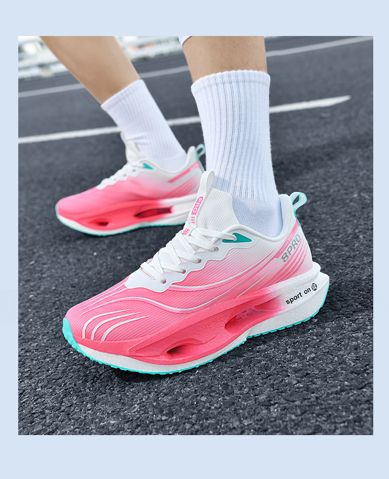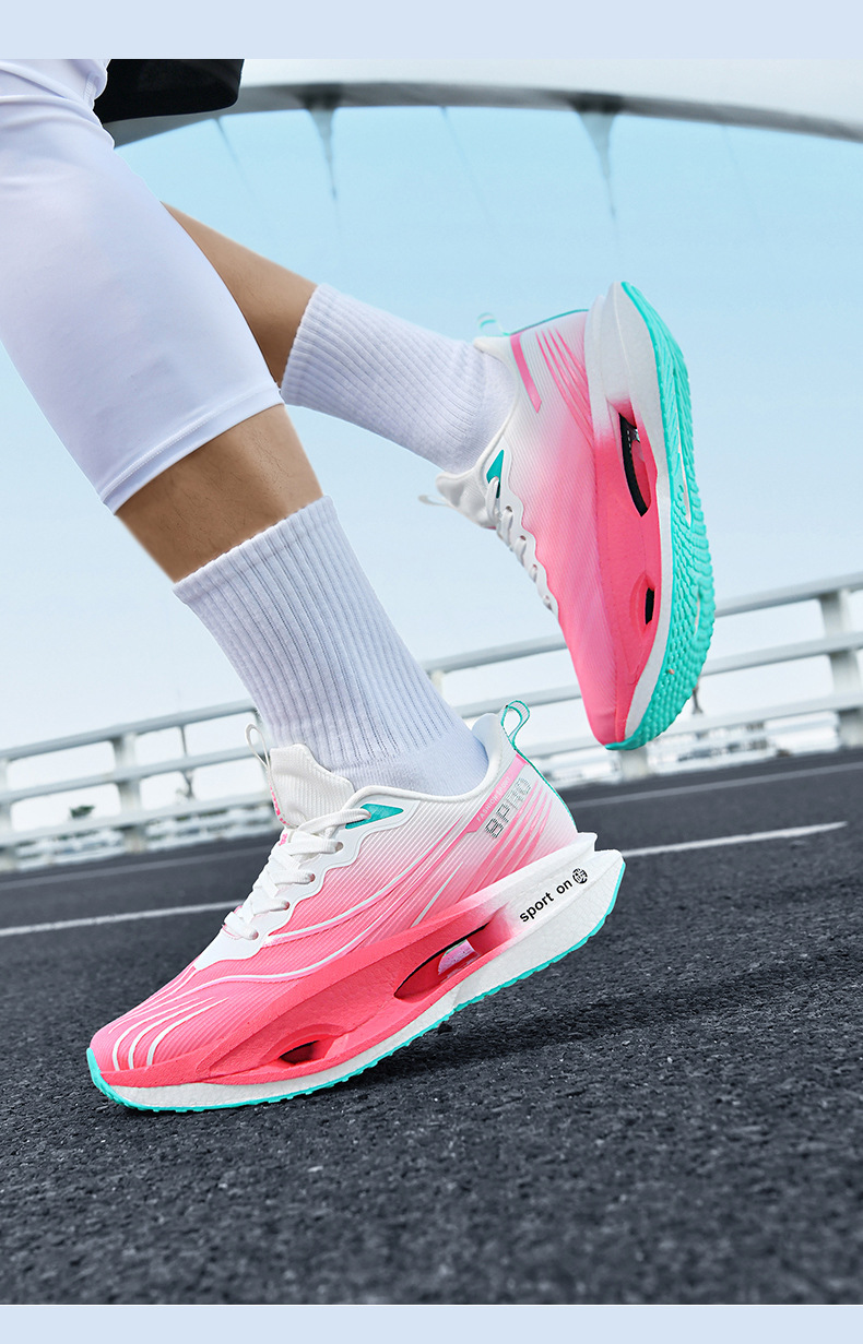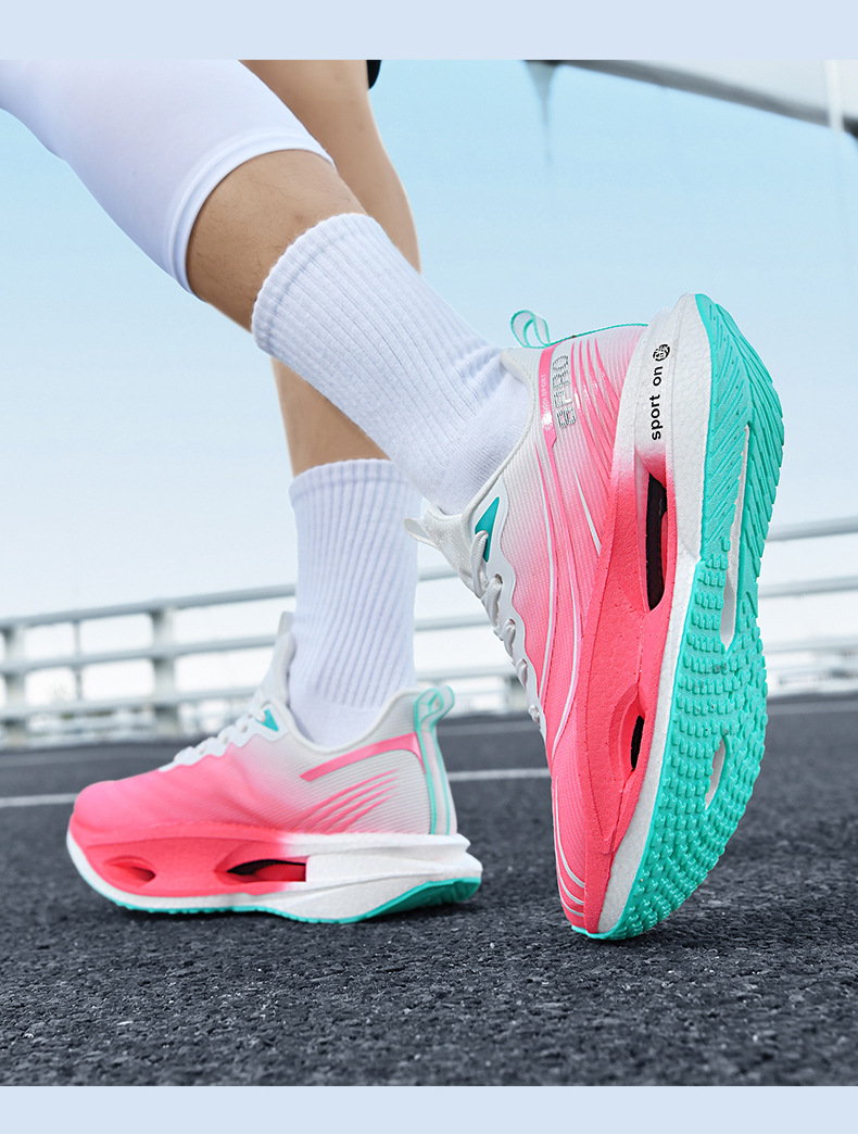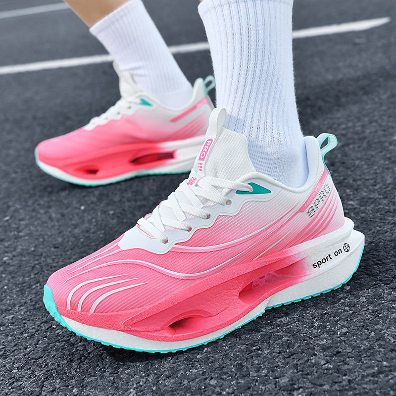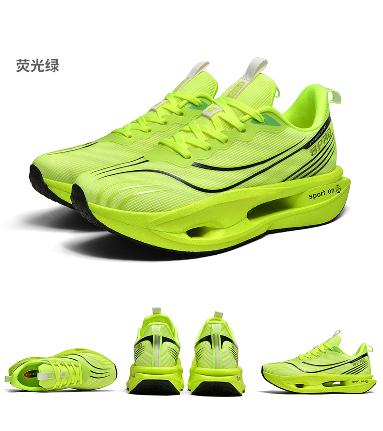 2025 nuevas zapatillas para correr de suela blanda transpirables y realmente explosivas para hombres y mujeres, todo fósforo, fricción, amortiguación de sonido, zapatillas antideslizantes