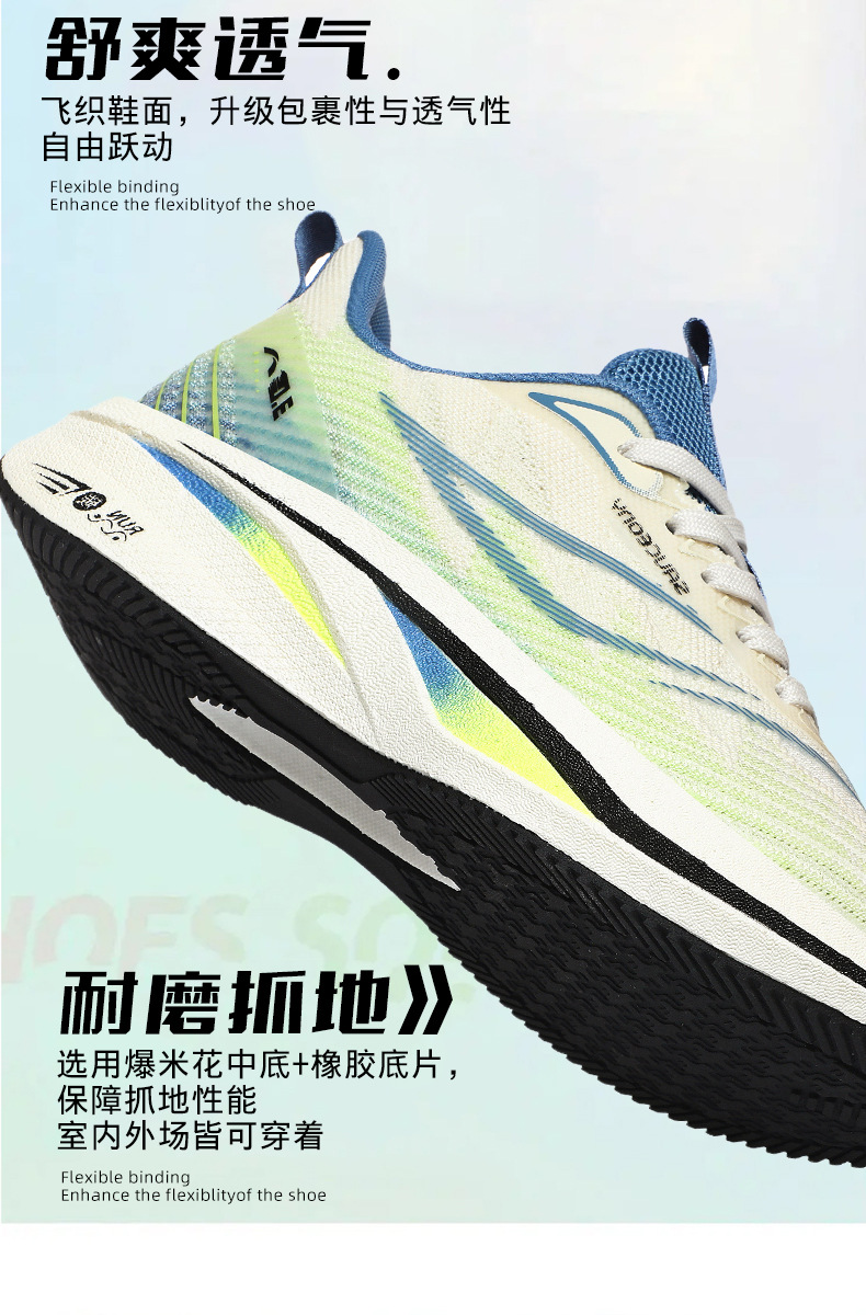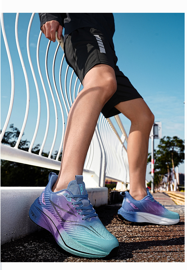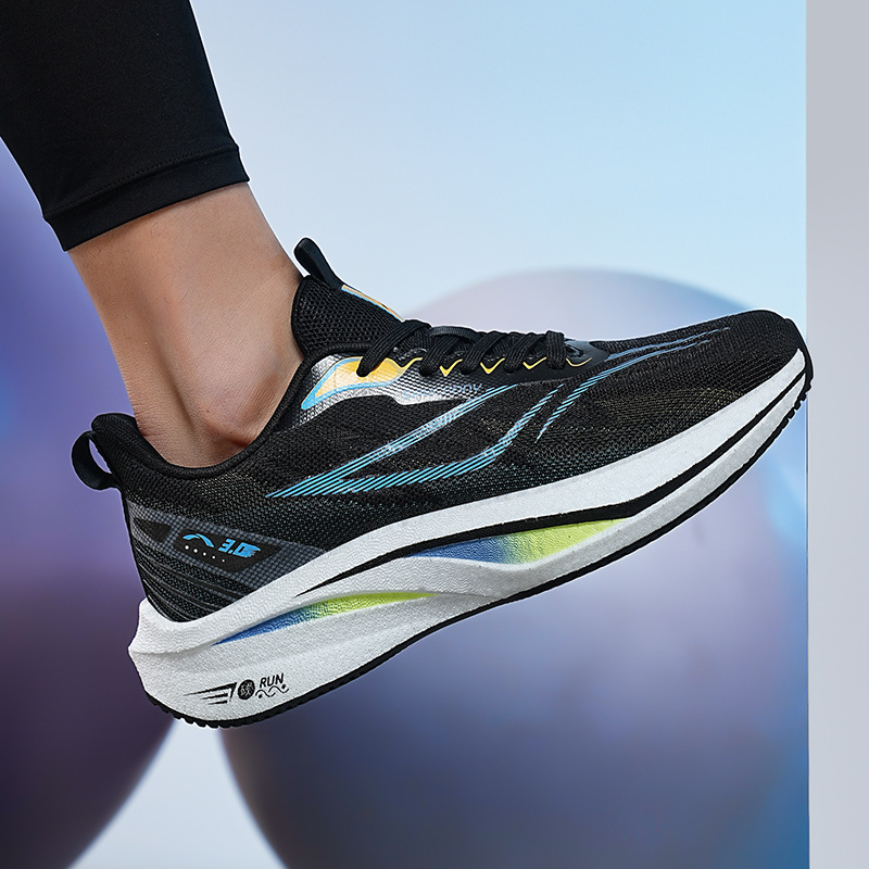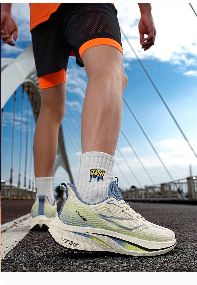 Zapatos para correr de carreras ultraligeros de palomitas de maíz de todo fósforo para jóvenes, amortiguación para hombres, antideslizante y transpirable, zapatos deportivos de tablero de carbono para estudiantes, marea