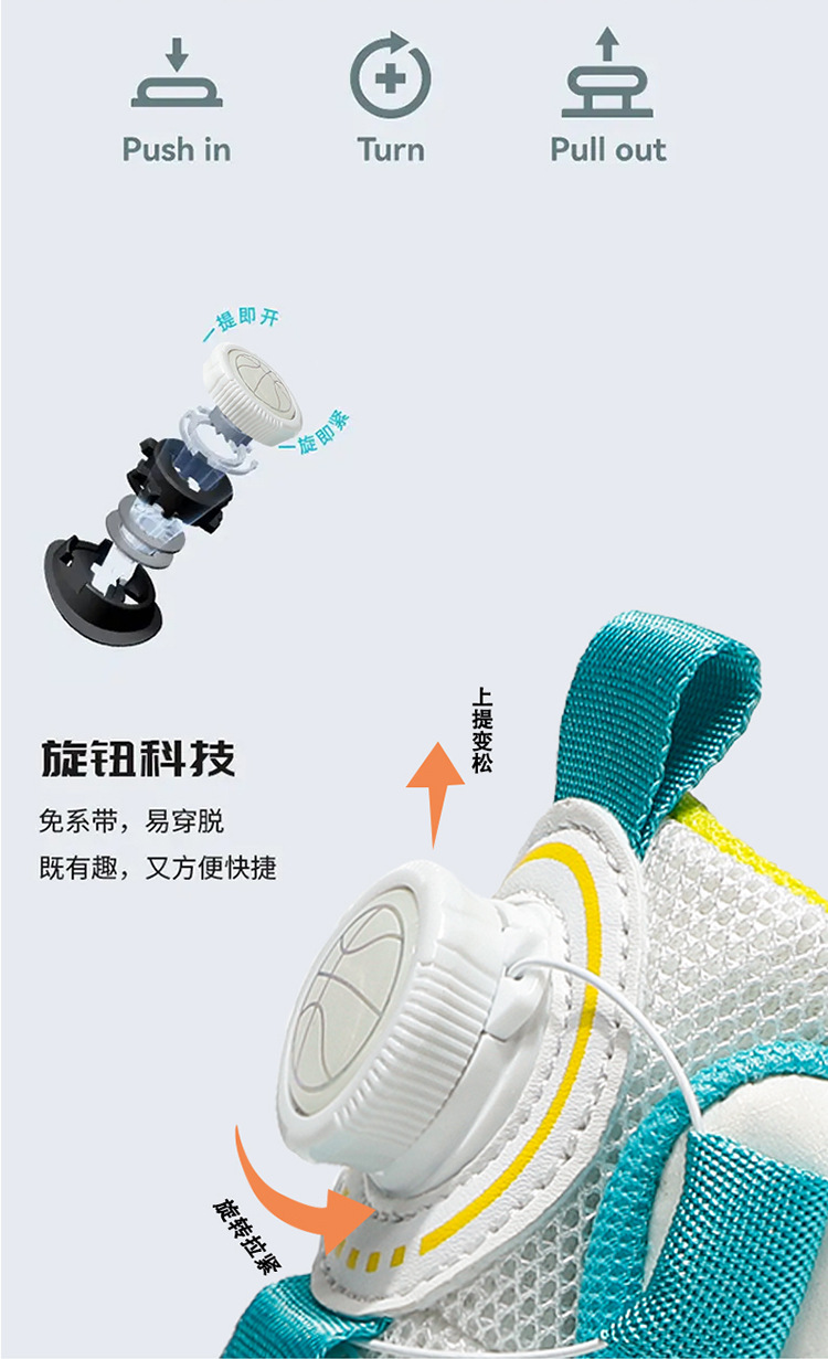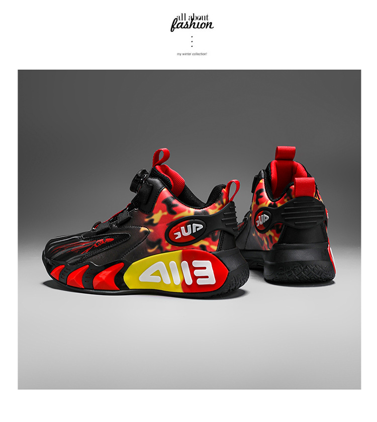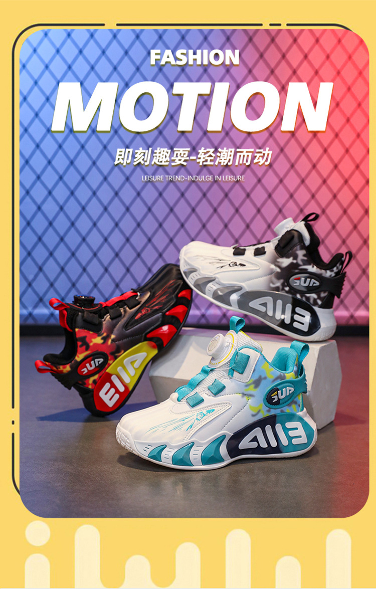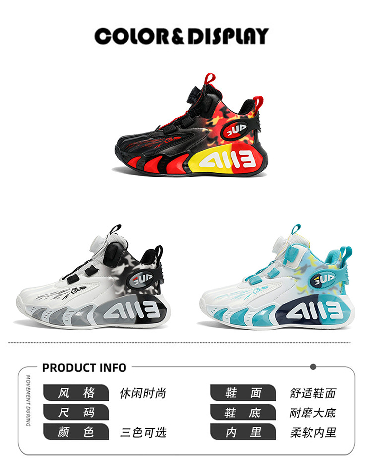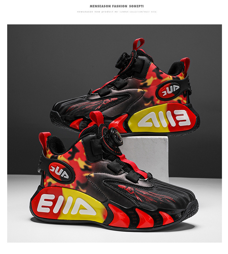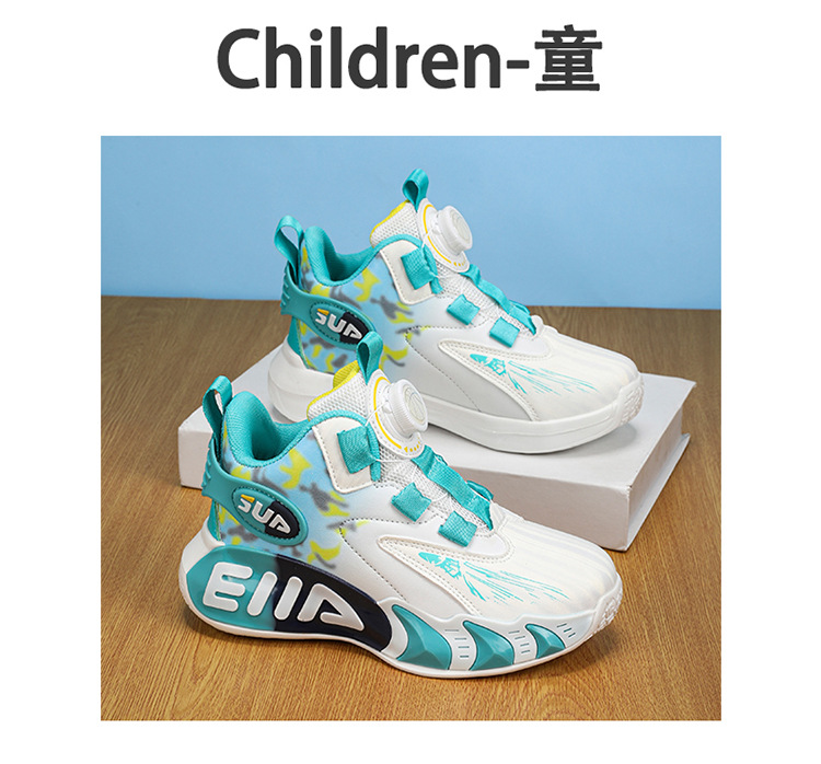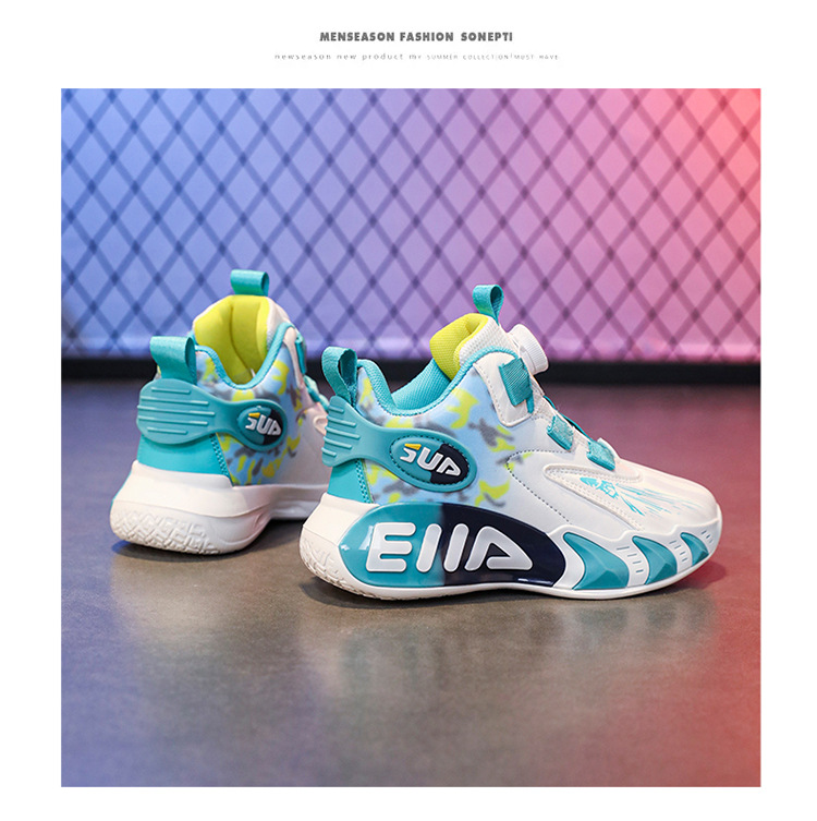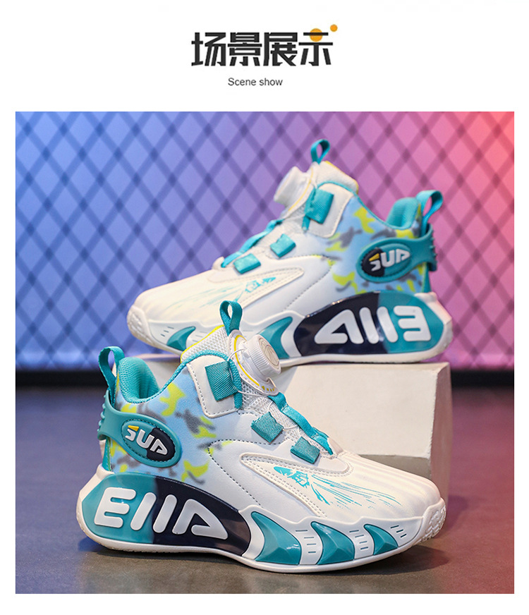 Zapatos infantiles de baloncesto para niños primavera y verano nuevos zapatos de deporte transpirables de malla botón giratorio zapatos de correr para niños