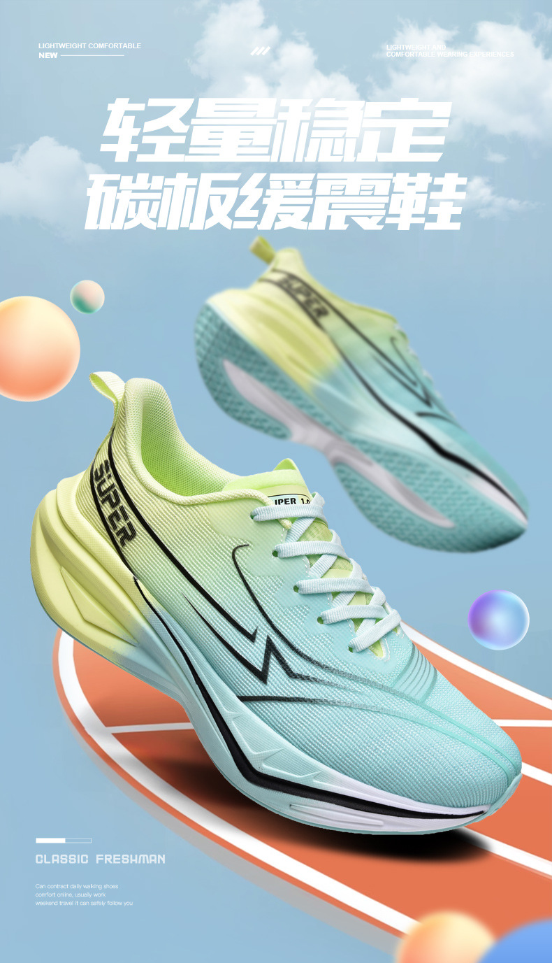 National Trendy Adolescente Realmente Explosión Suela blanda Calzado deportivo de aumento de altura Calzado para correr con tabla de carbono de rebote y amortiguador ultraligero de todo fósforo para hombre