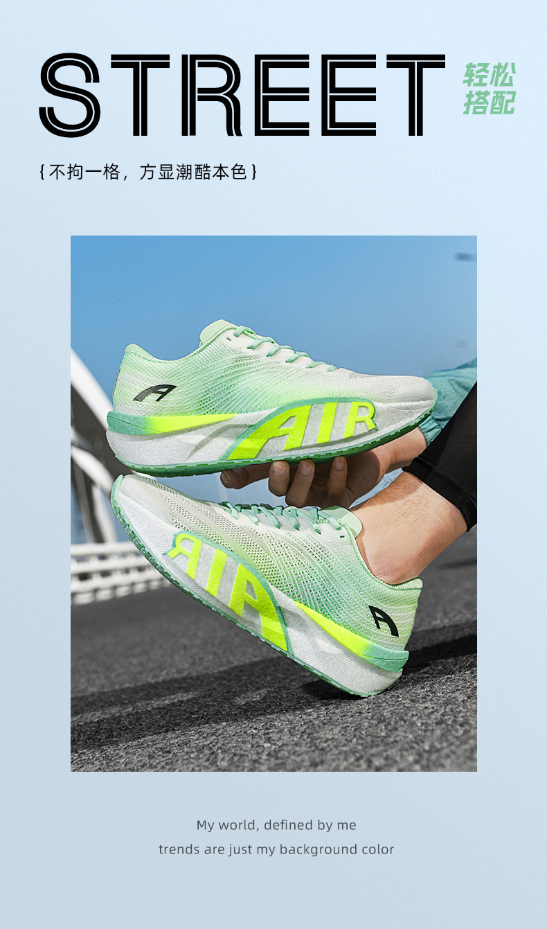 National Trendy Youth Super Ligero, transpirable, antideslizante, zapatos para correr, tablero de carbono de palma completa para hombre, zapatos deportivos casuales para estudiantes