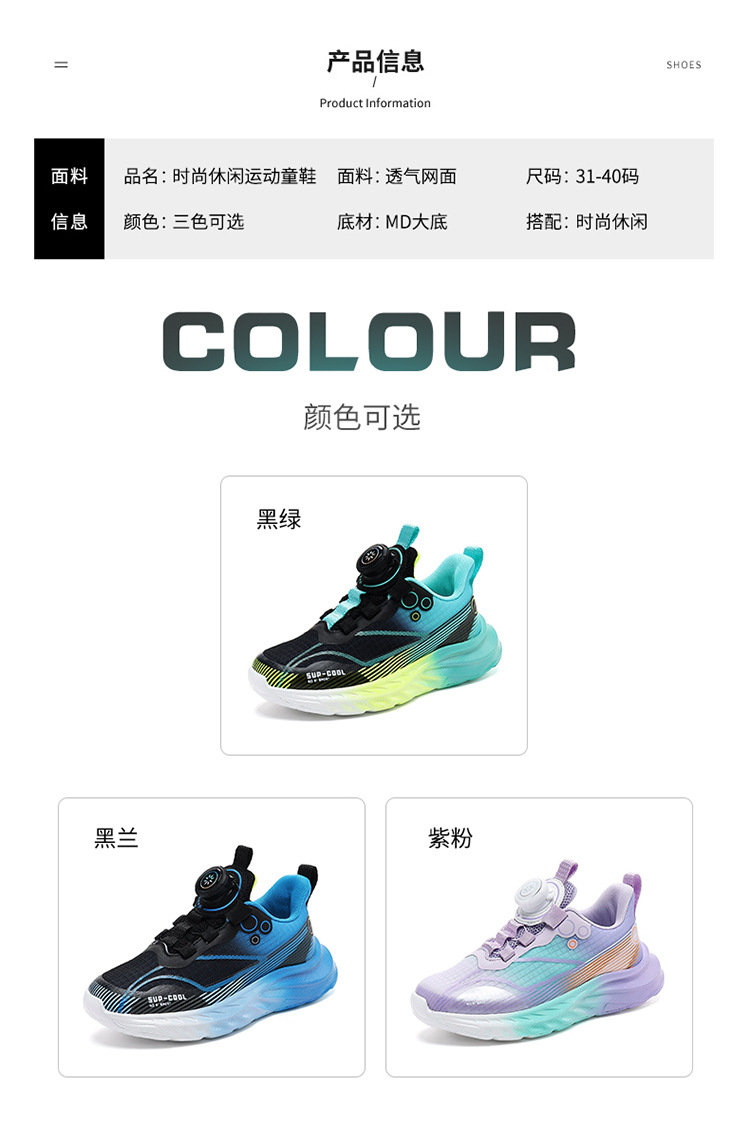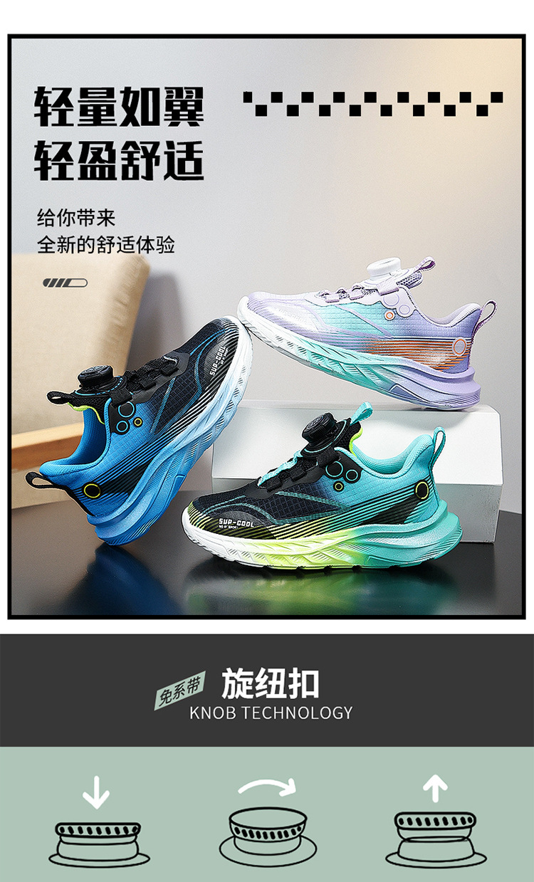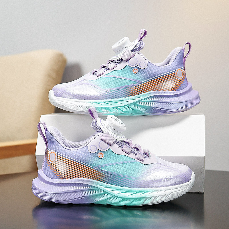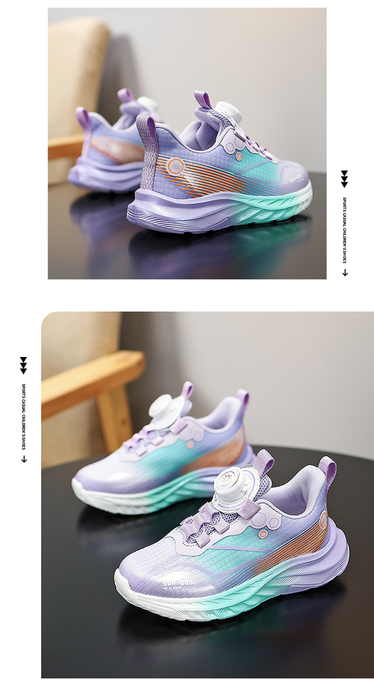Calzado deportivo ligero para niños modelos de primavera y otoño zapatos para correr con botones giratorios transpirables para niñas
