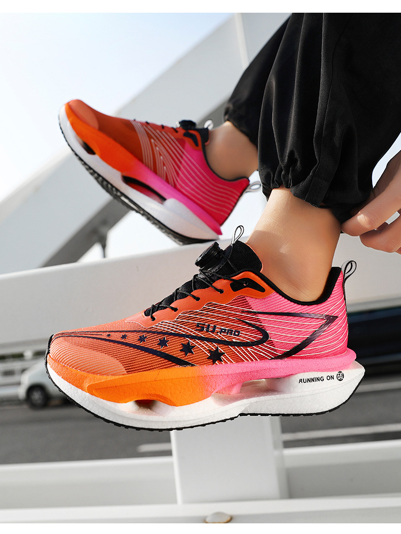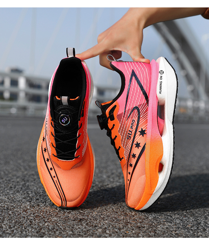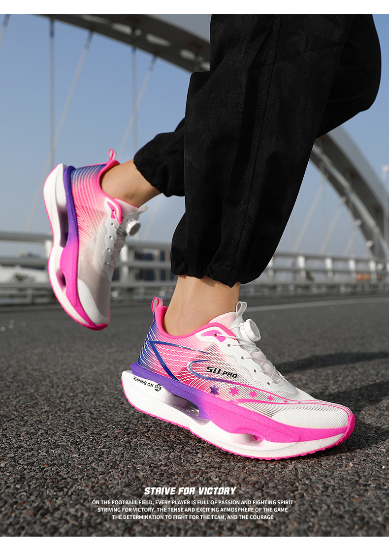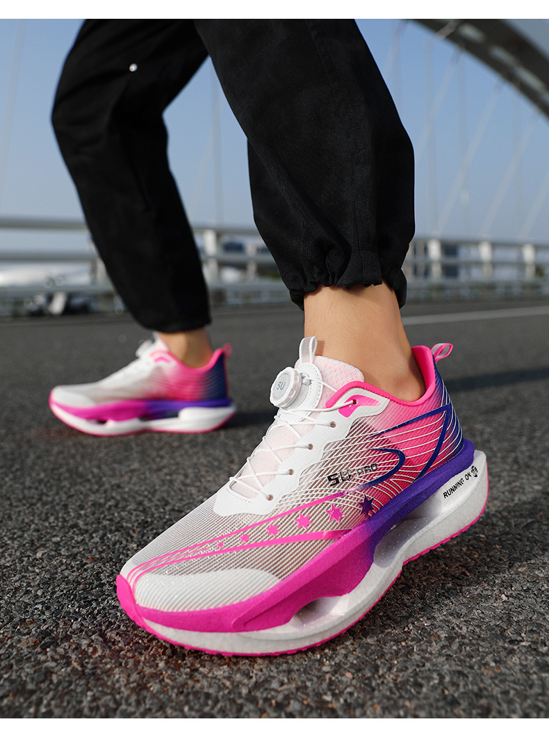 Zapatillas de carreras ultraligeras transpirables de botón giratorio para niños y mujeres con base de palomitas de maíz para estudiantes