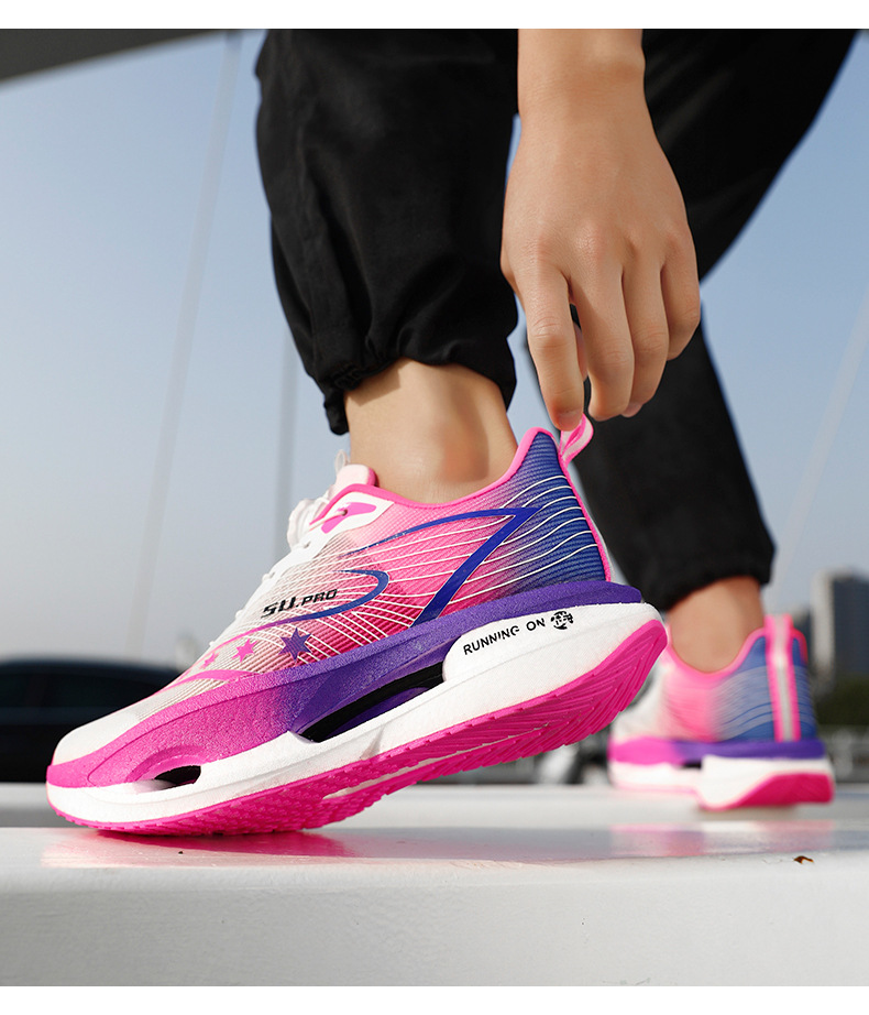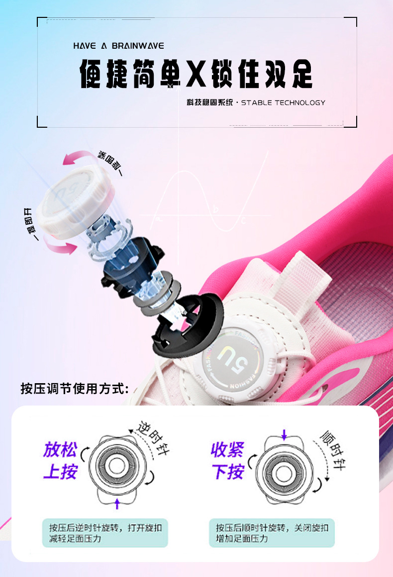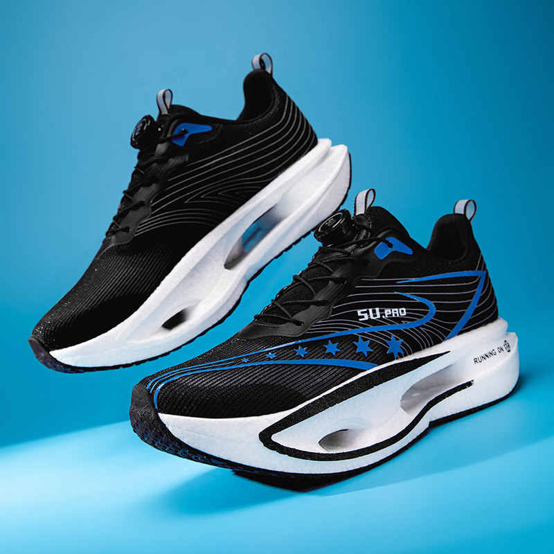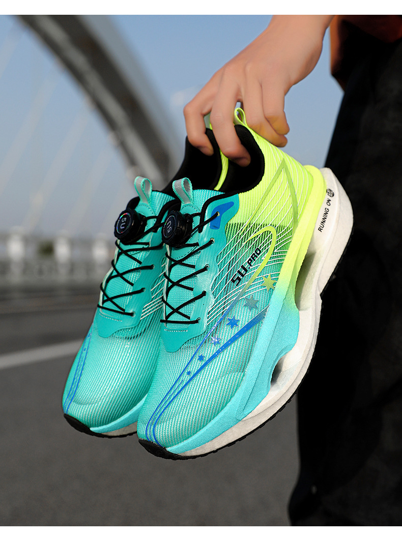 Zapatillas de carreras ultraligeras transpirables de botón giratorio para niños y mujeres con base de palomitas de maíz para estudiantes