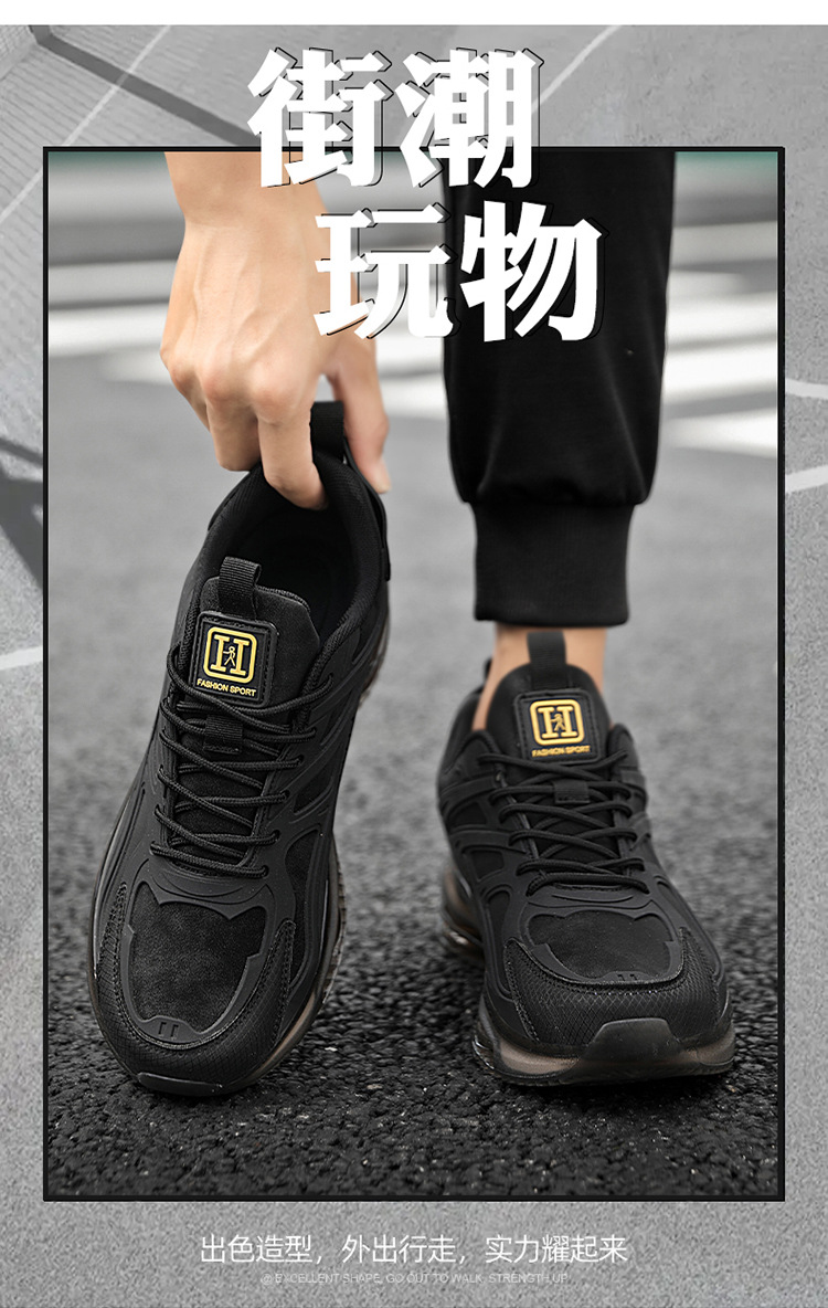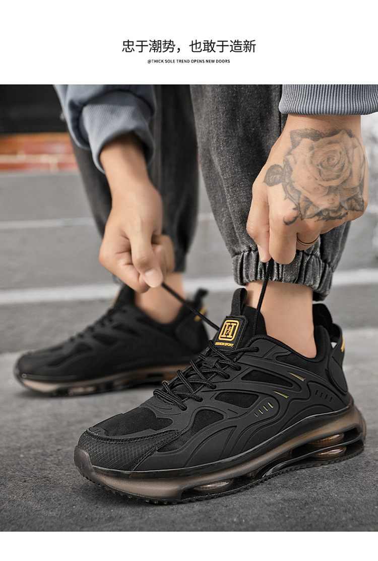 Zapatos de hombre Putian, deportes de primavera, ocio, correr, amortiguación, colchón de aire, aumento, zapatos de moda de papá samurai negro de todo fósforo juvenil