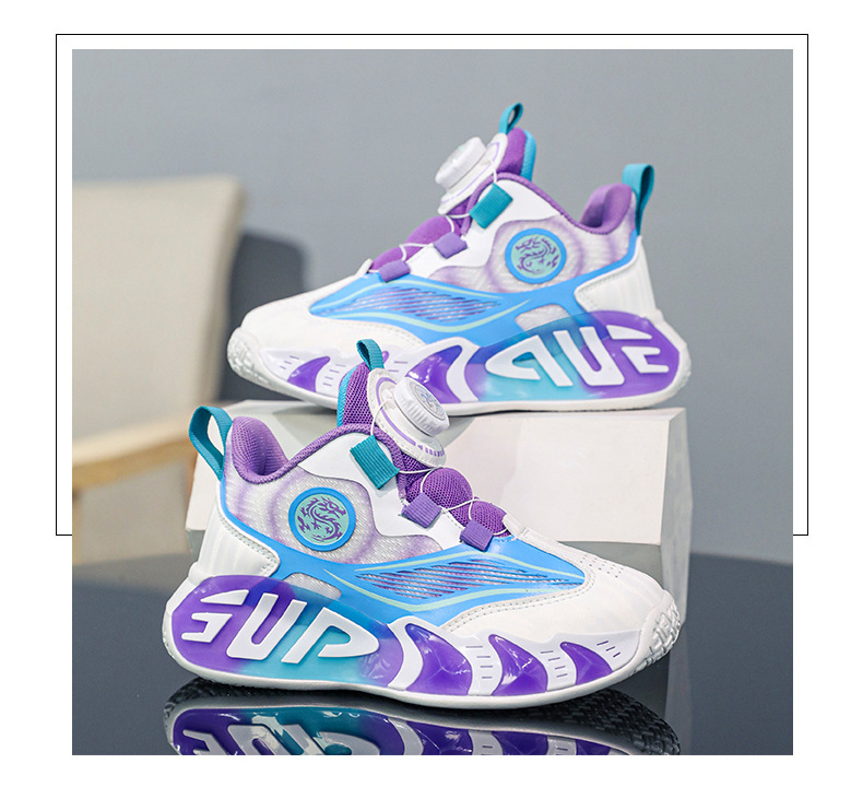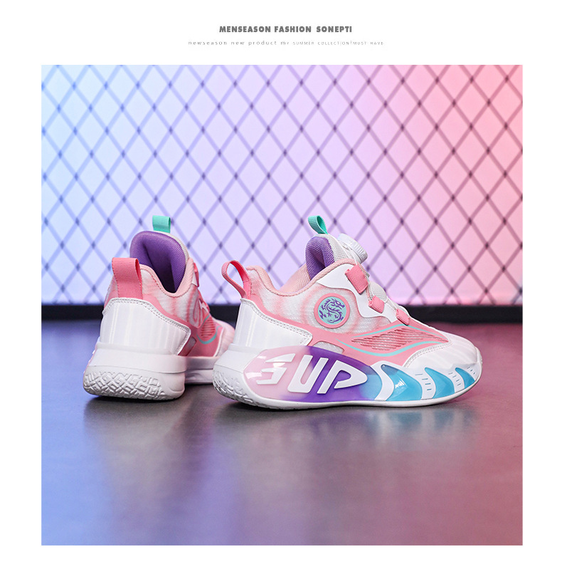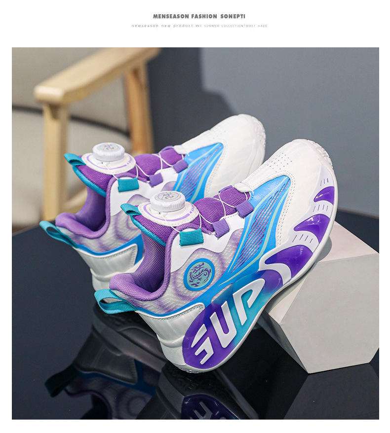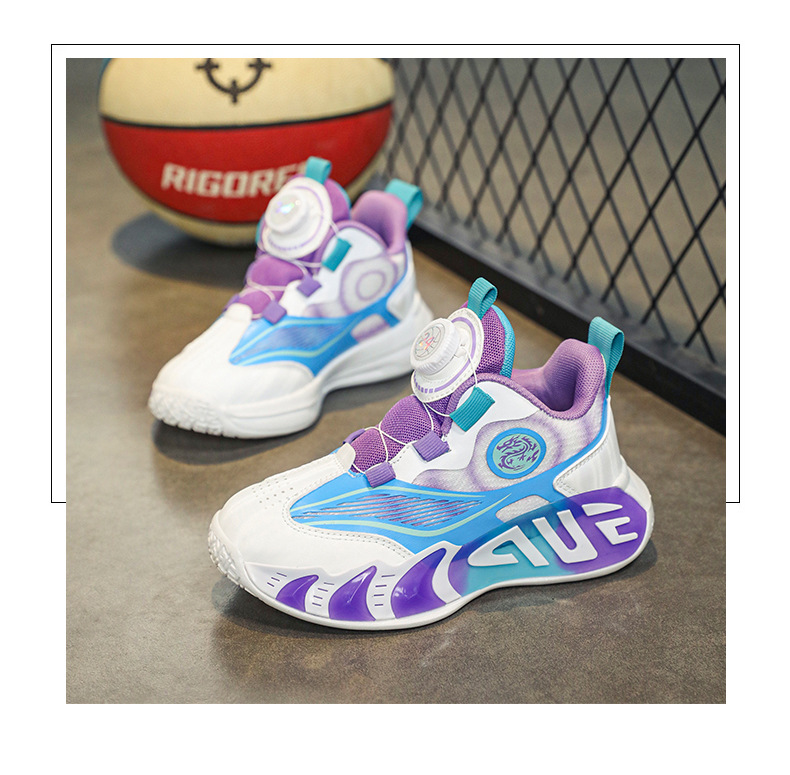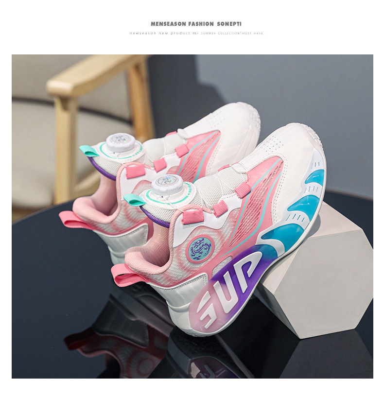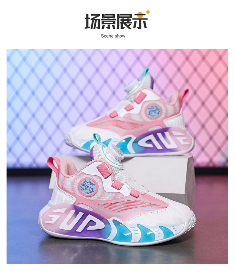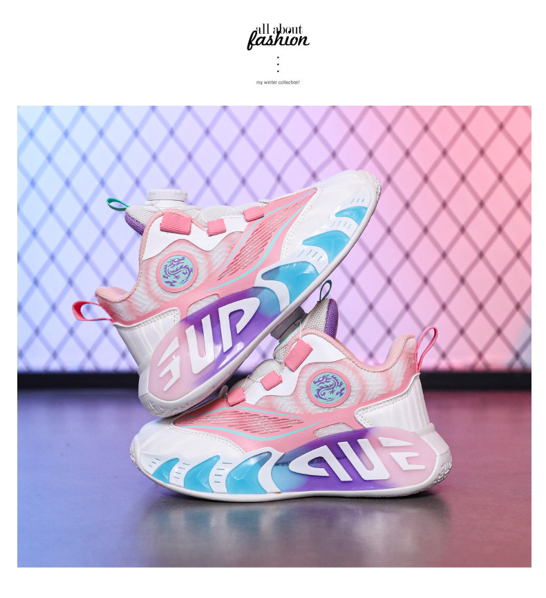 Zapatillas de baloncesto para niñas 2025 primavera nueva malla transpirable hebilla giratoria zapatos deportivos para niñas para niños zapatos para correr con botones