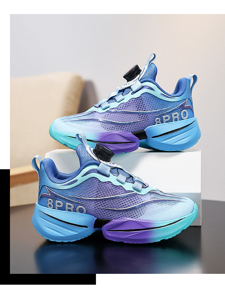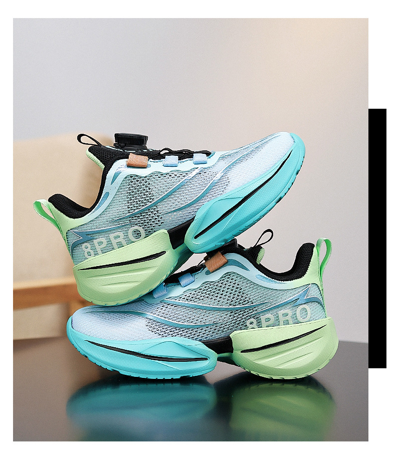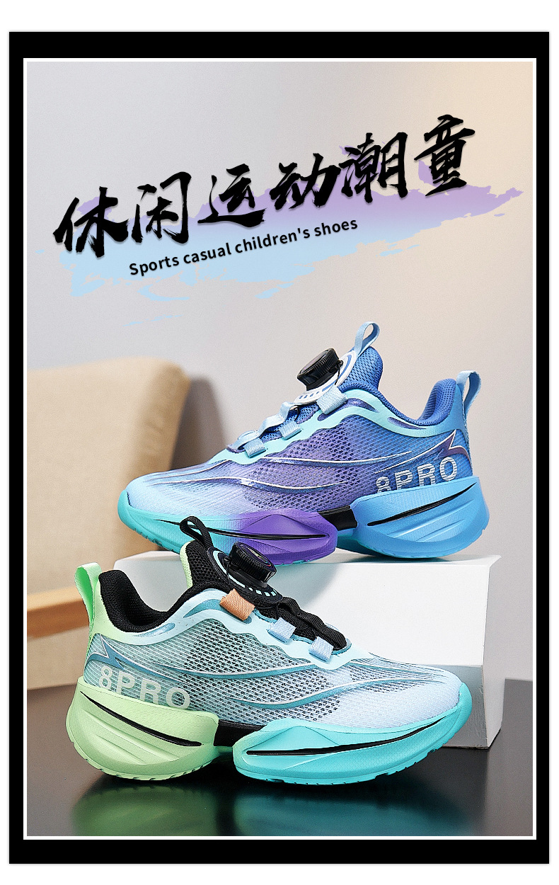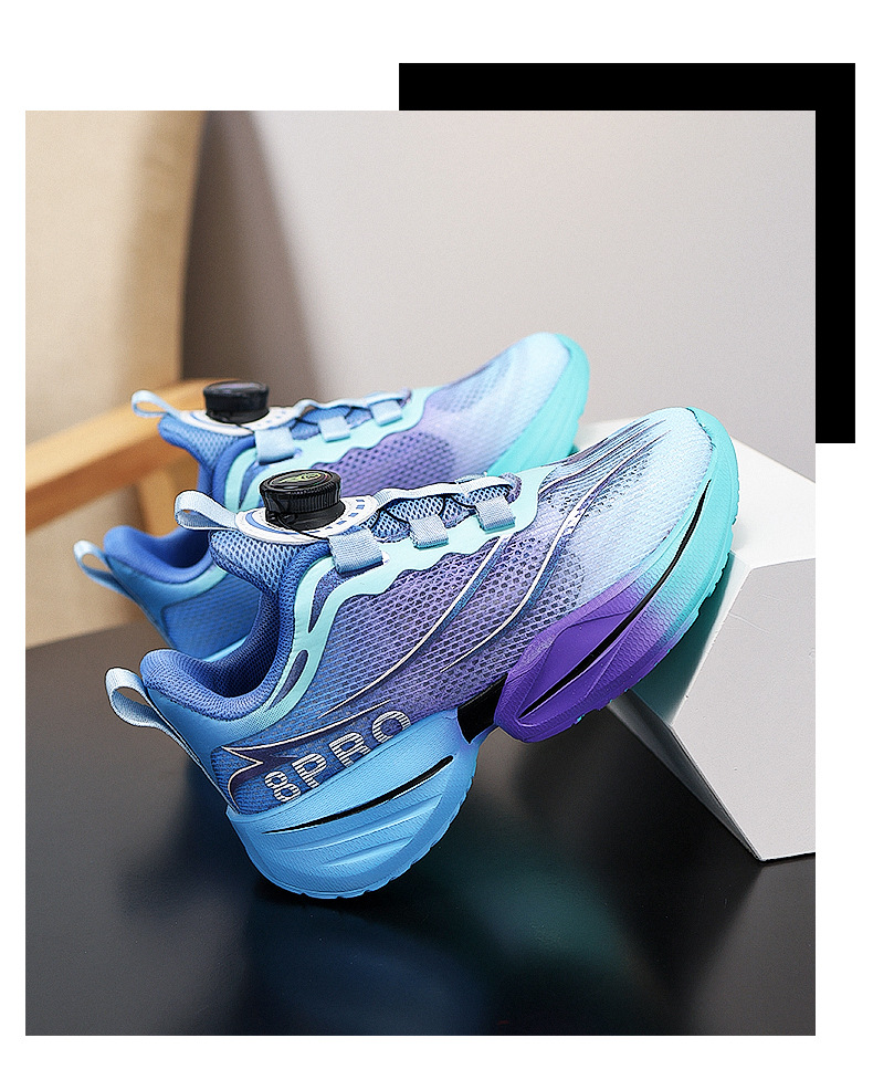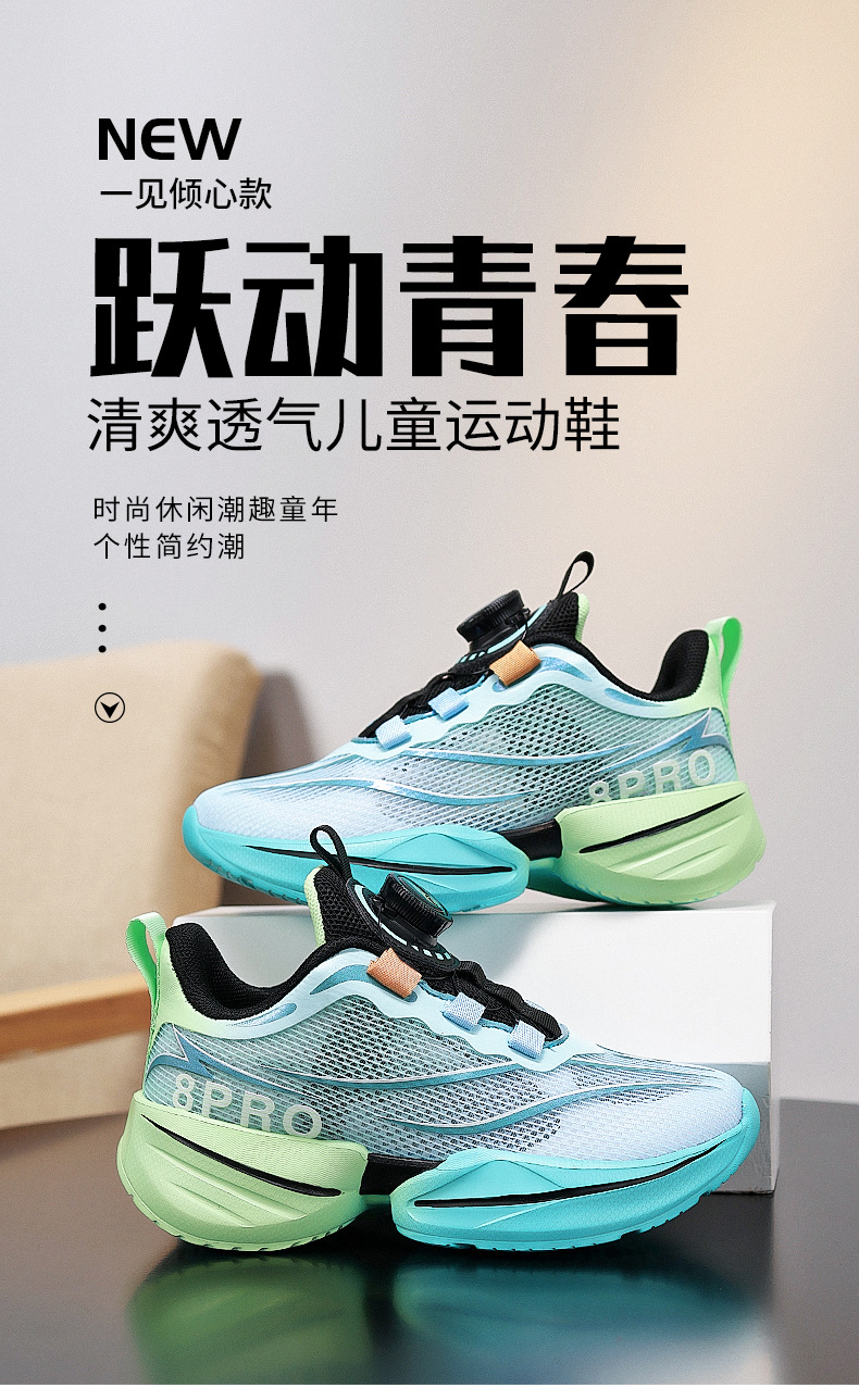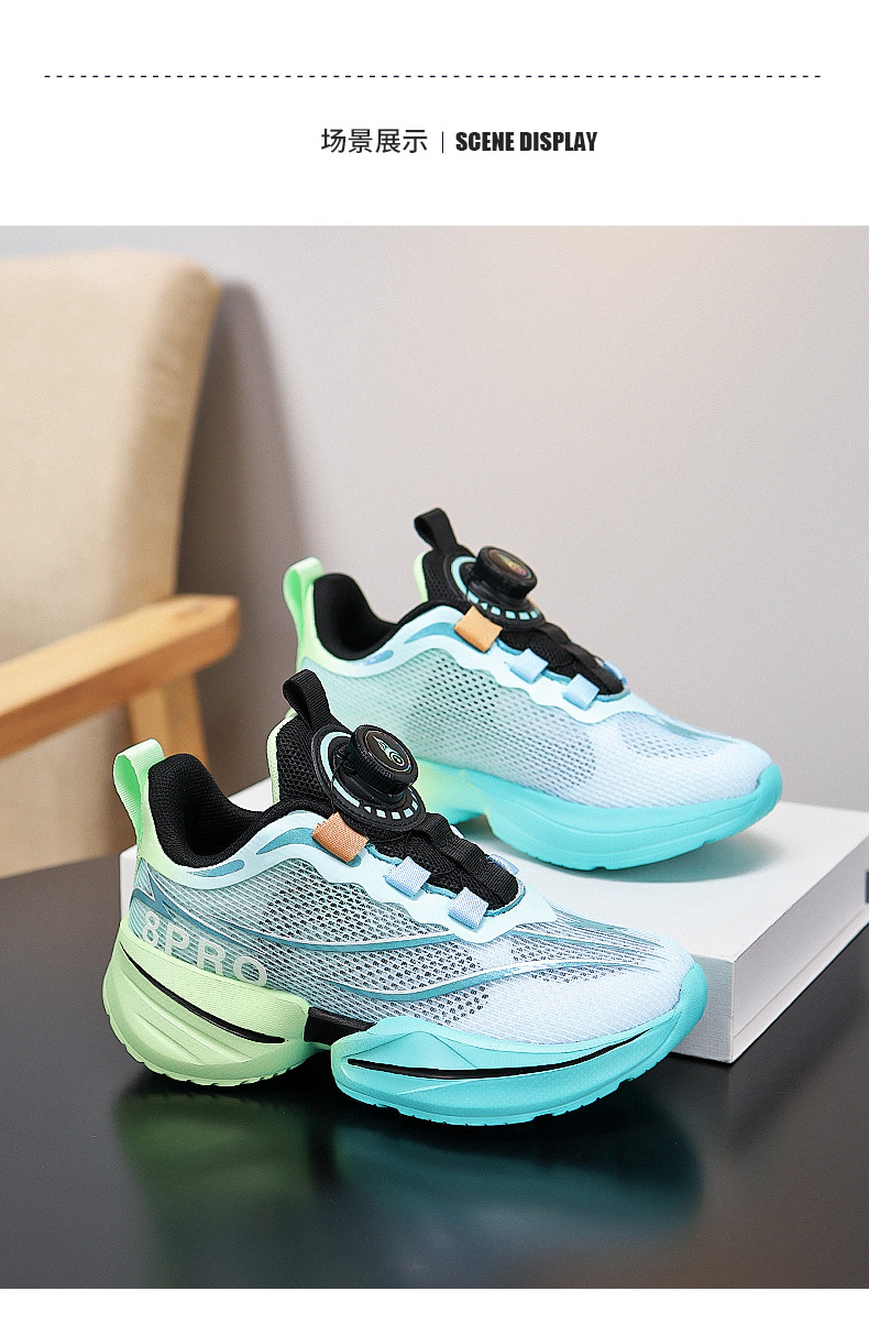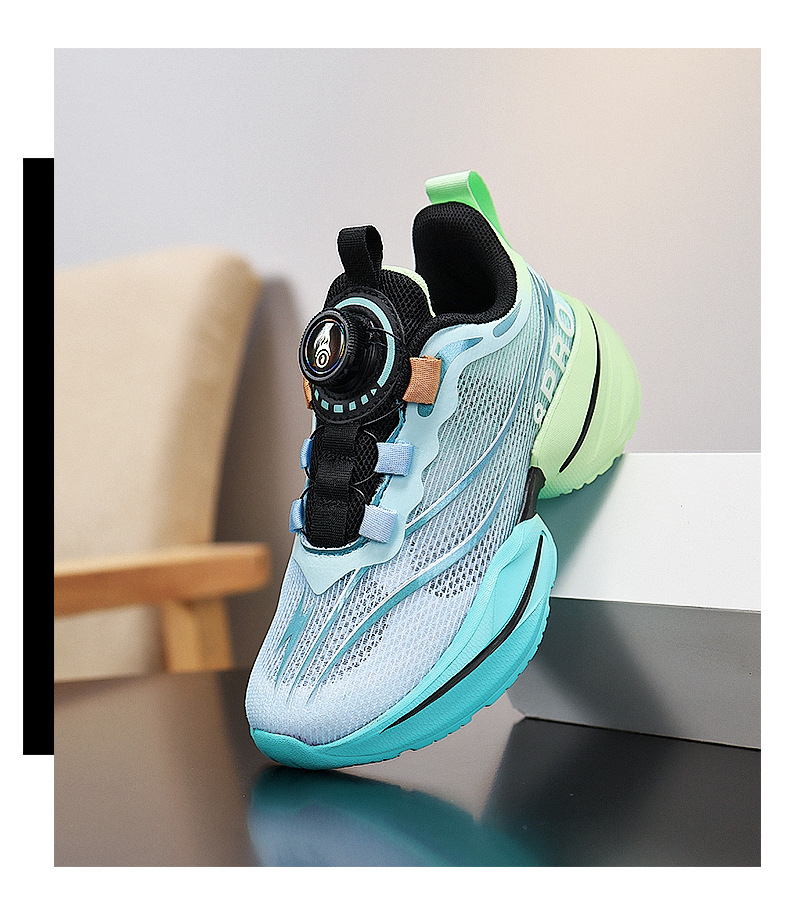 Zapatos para niños, niños, nuevos zapatos de red deportiva para niños de verano 2025, botones giratorios, suela suave, zapatos para correr para estudiantes universitarios