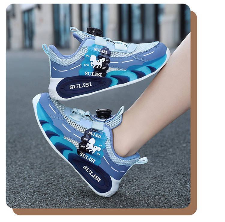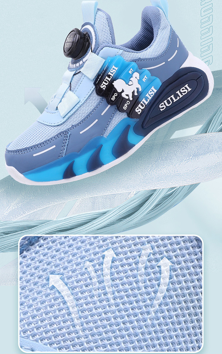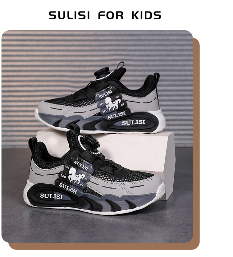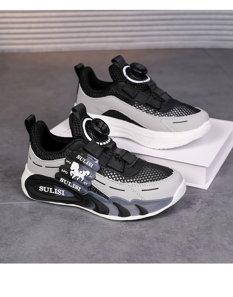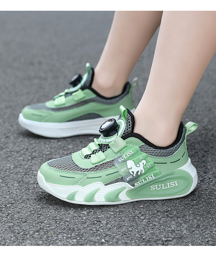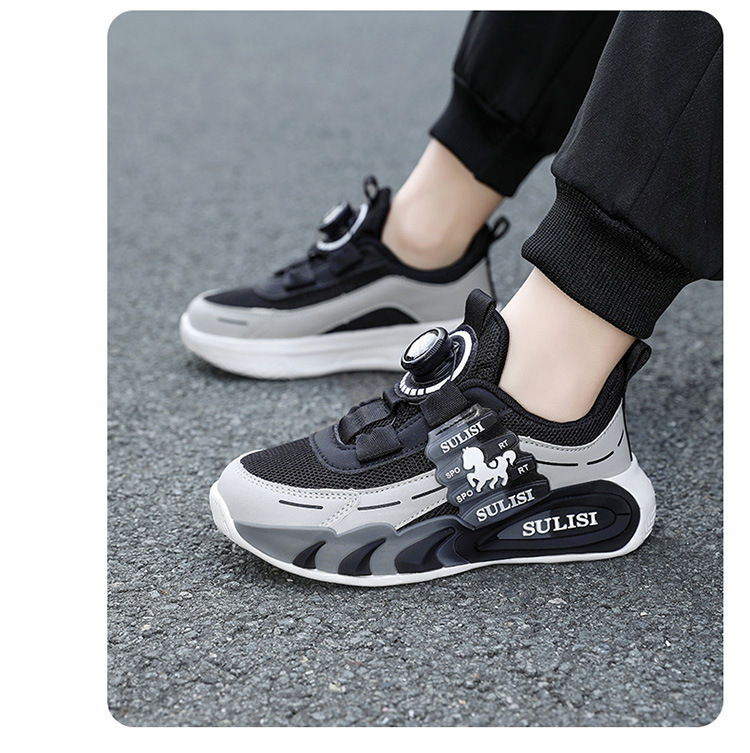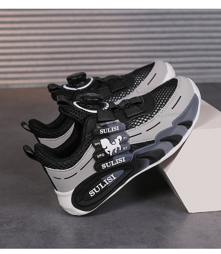 Zapatos giratorios con botones, malla, zapatos deportivos para niños de moda transpirables, 2025 nuevos zapatos para correr para niños, cabello lacio de fábrica