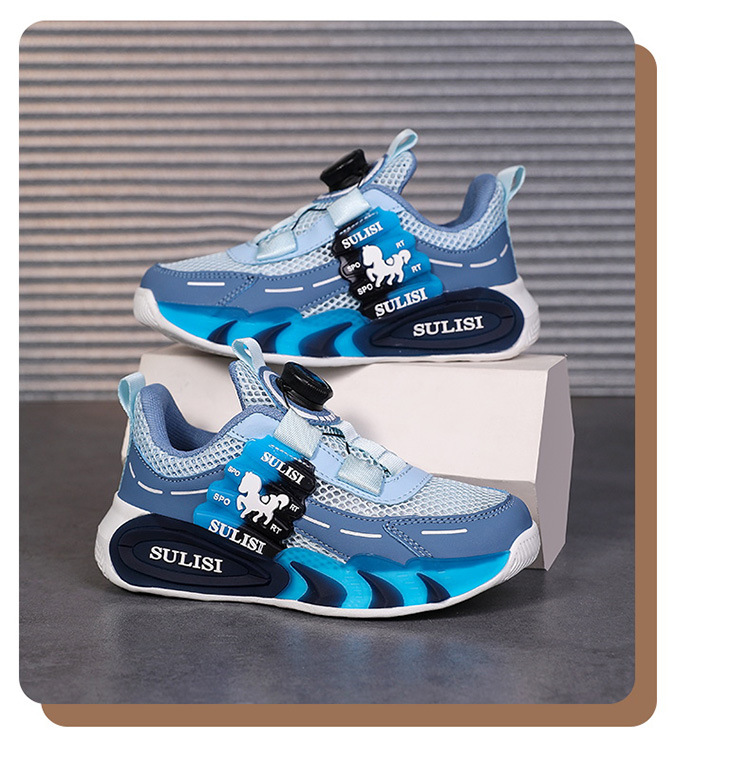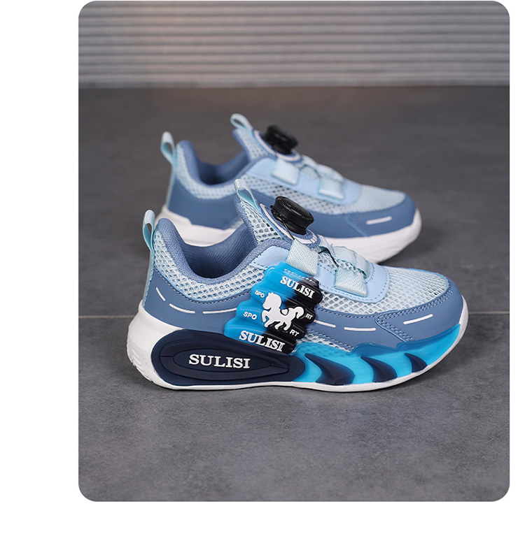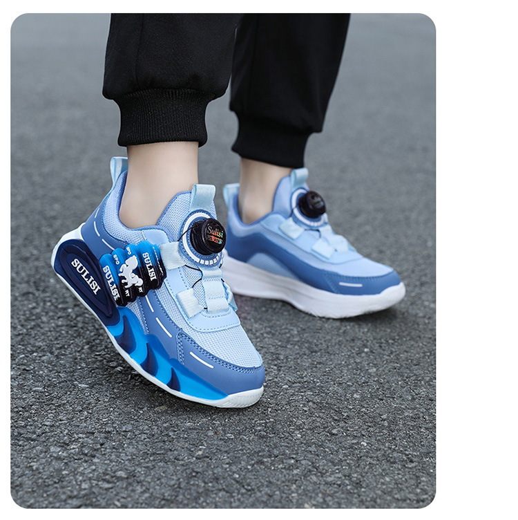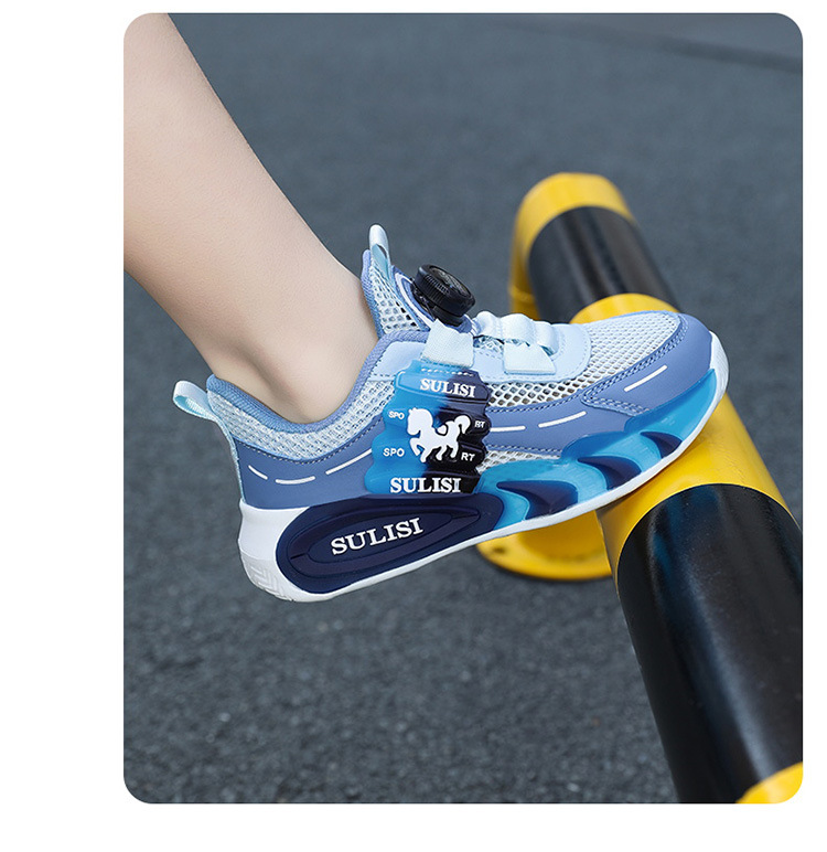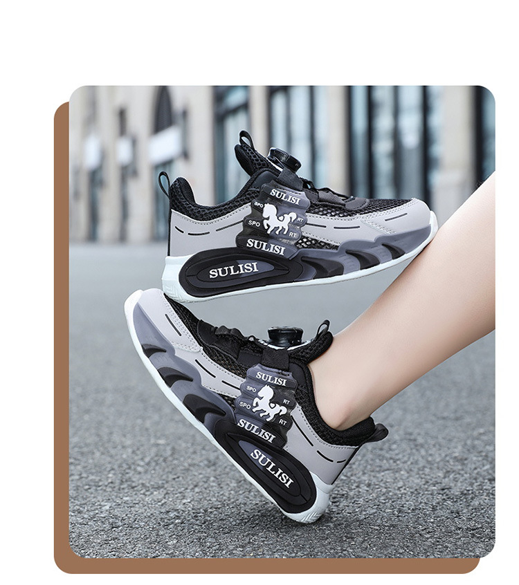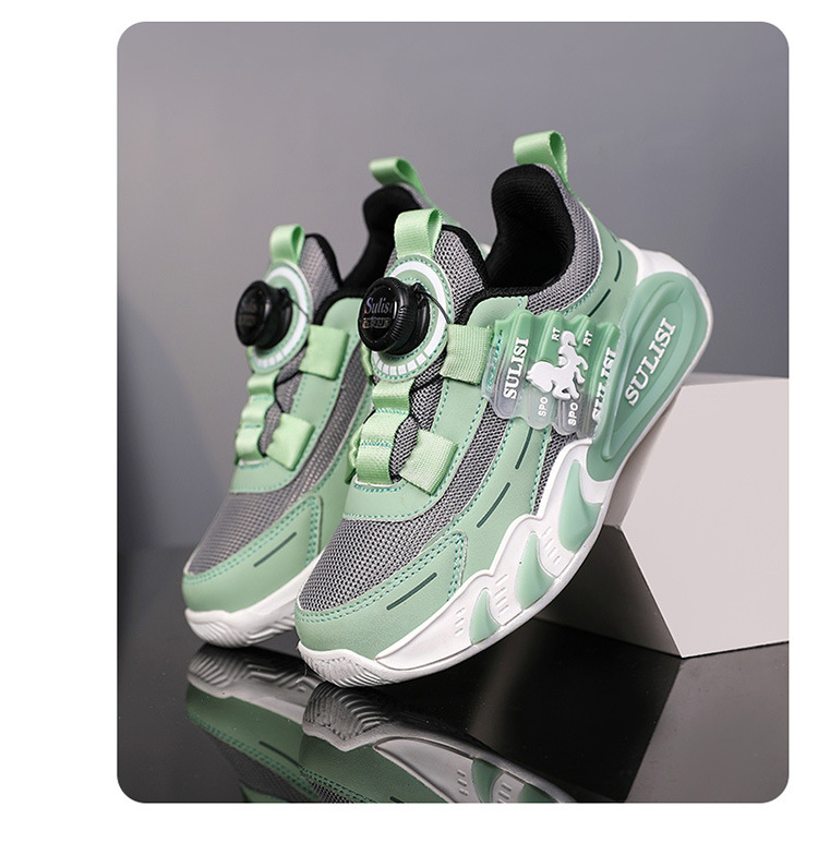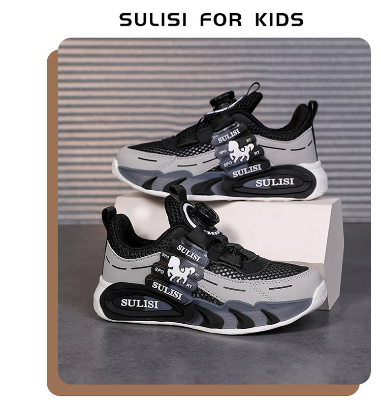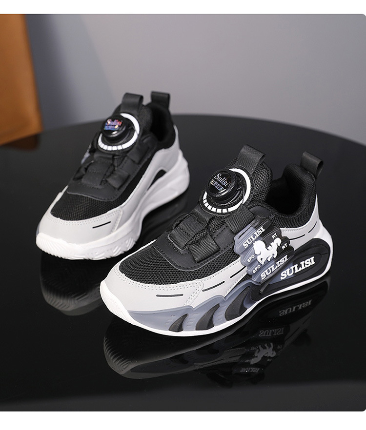Zapatos giratorios con botones, malla, zapatos deportivos para niños de moda transpirables, 2025 nuevos zapatos para correr para niños, cabello lacio de fábrica