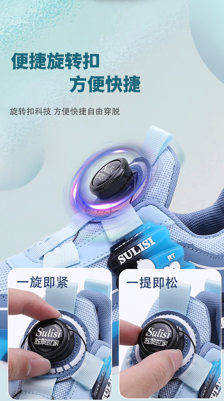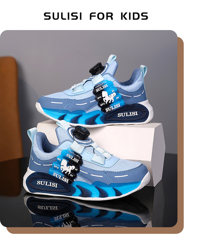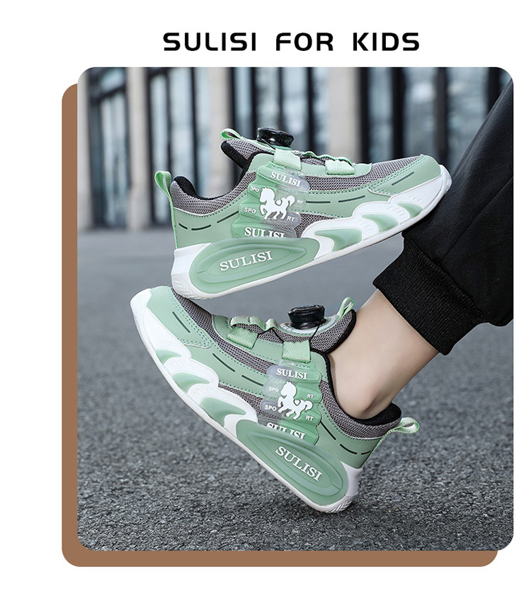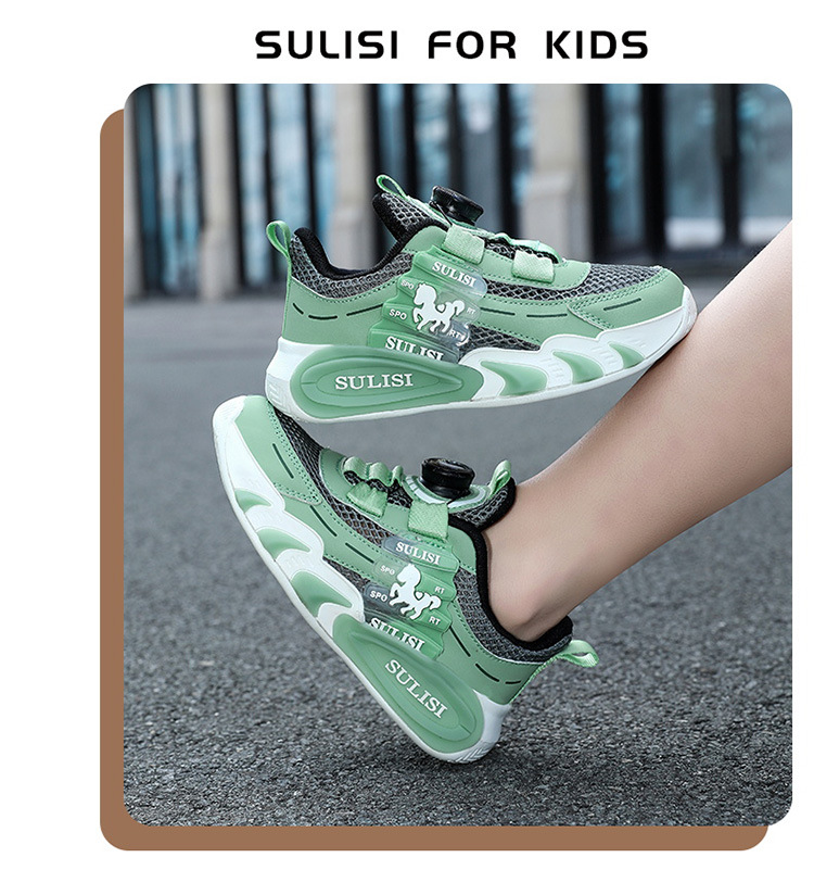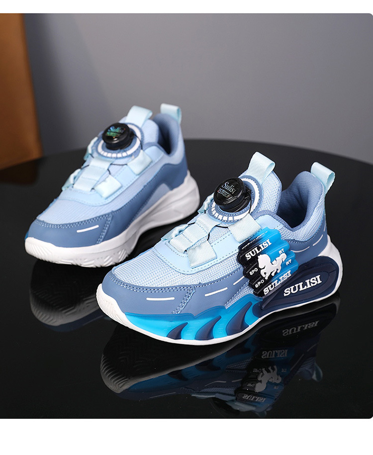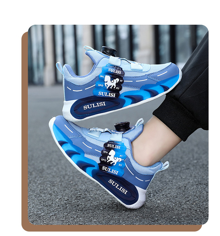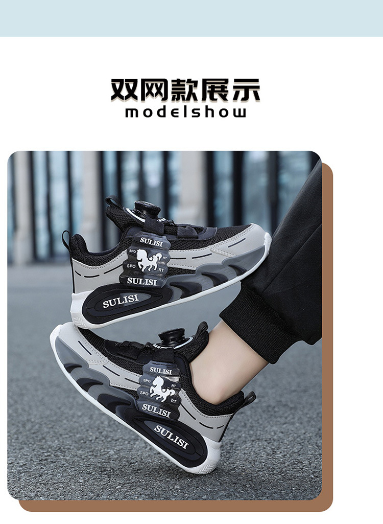 Zapatos giratorios con botones, malla, zapatos deportivos para niños de moda transpirables, 2025 nuevos zapatos para correr para niños, cabello lacio de fábrica