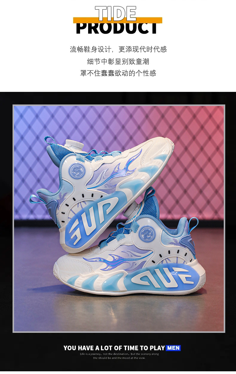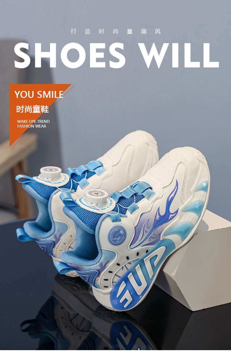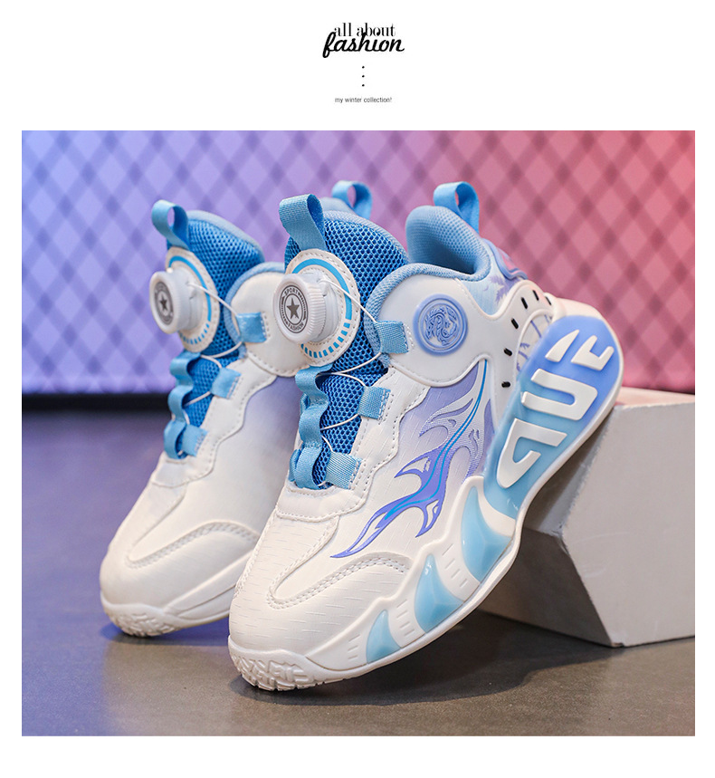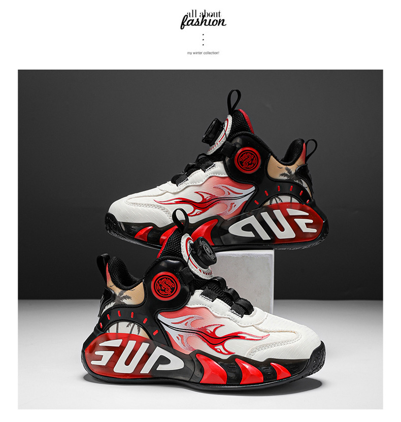 2025 primavera moda zapatos deportivos para niños superficie de cuero botones giratorios resistentes al desgaste zapatos de baloncesto ligeros de todo fósforo para niños y niñas