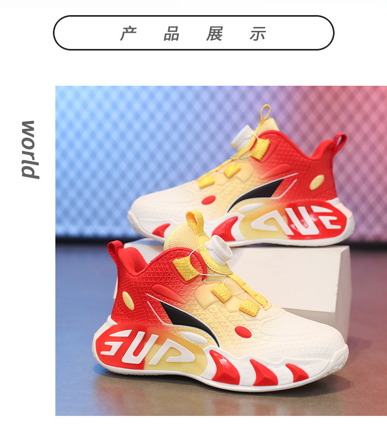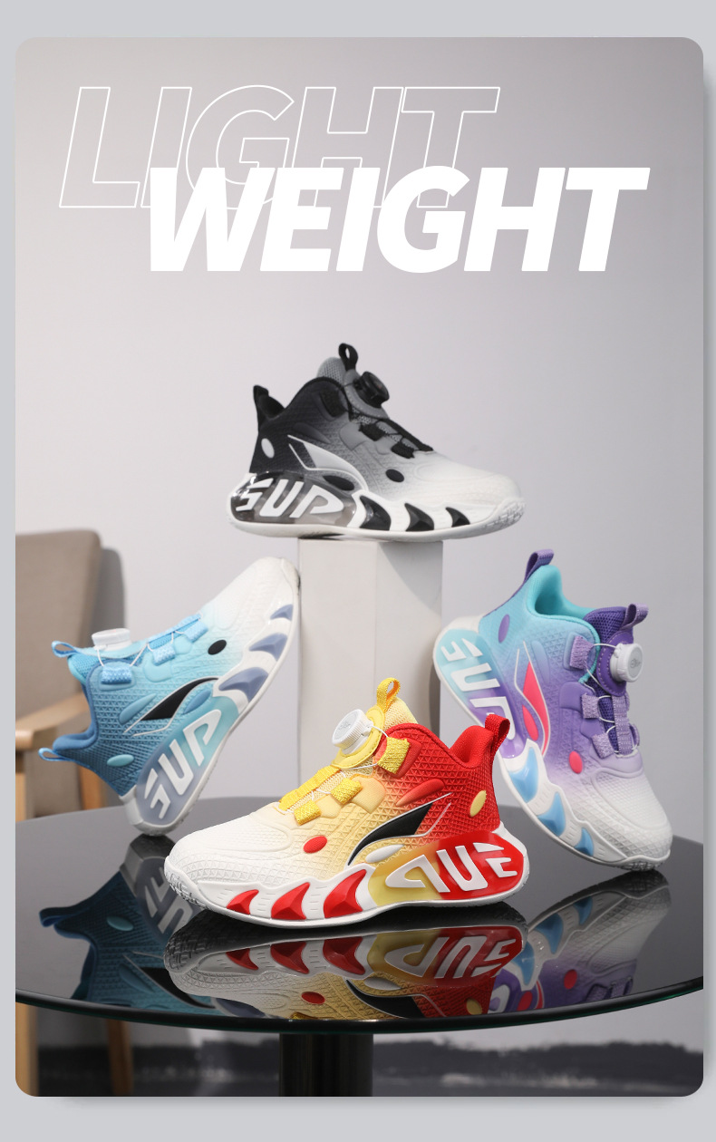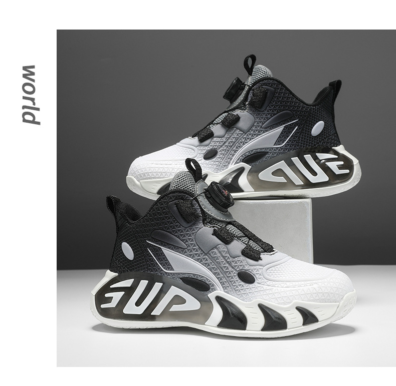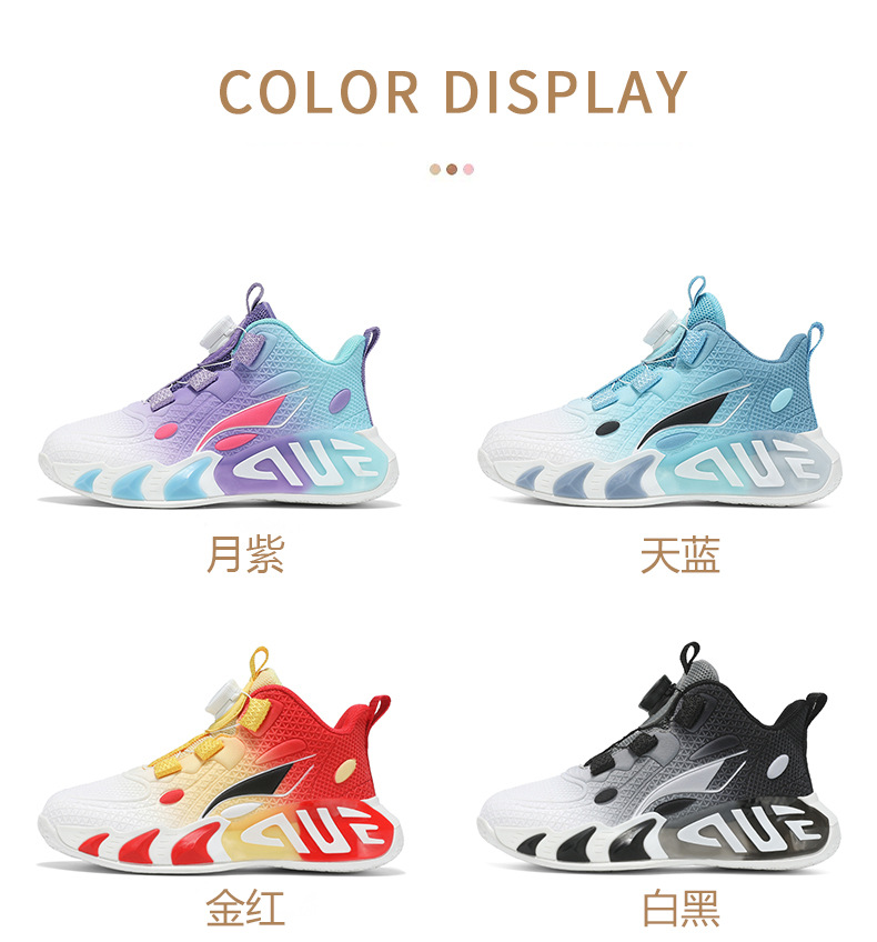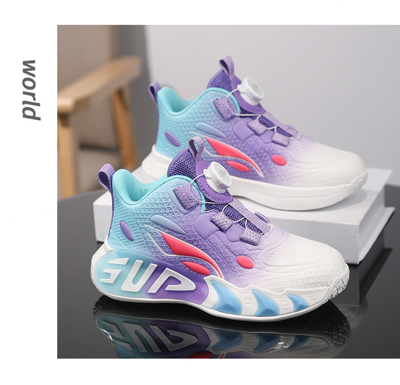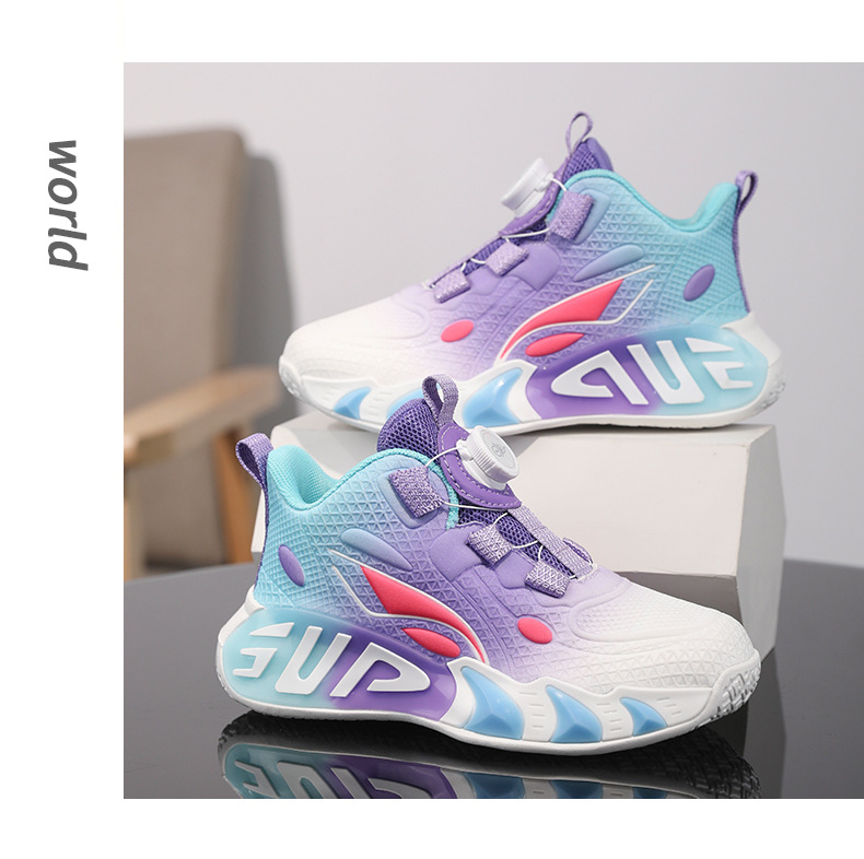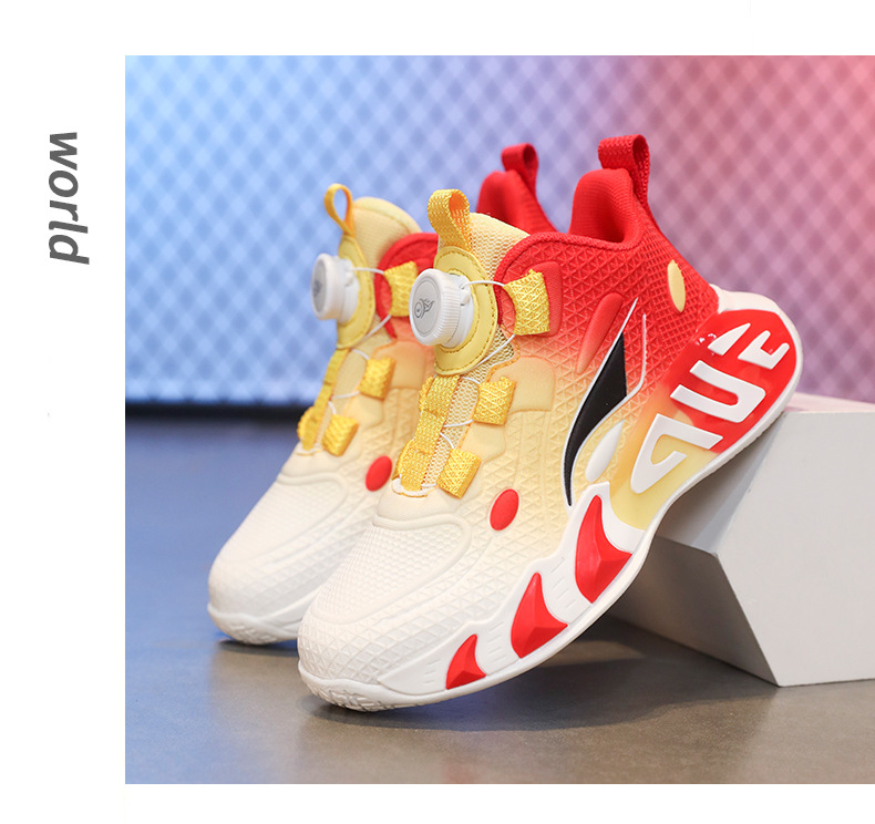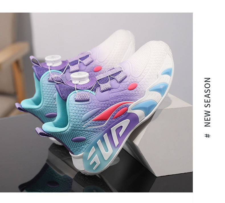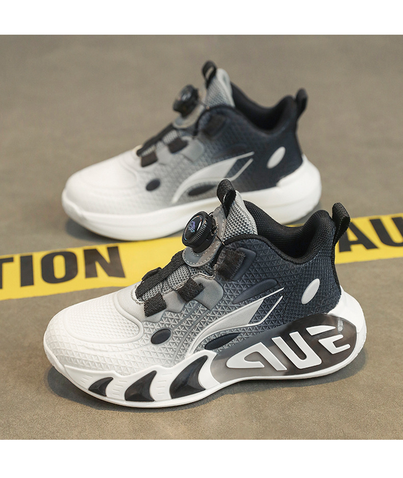 Primavera y otoño malla transpirable suela suave zapatos deportivos antideslizantes zapatos de baloncesto para niños pequeños, medianos y grandes zapatos para correr con hebilla giratoria para niños