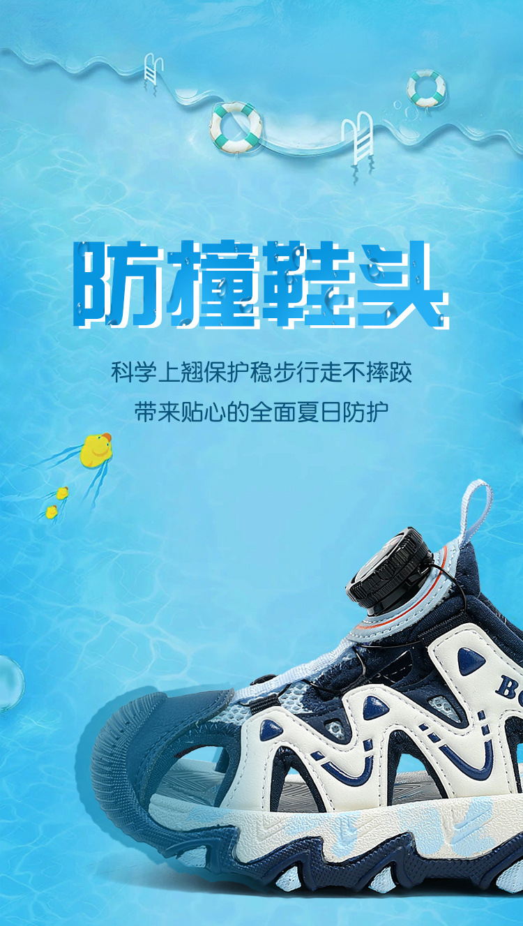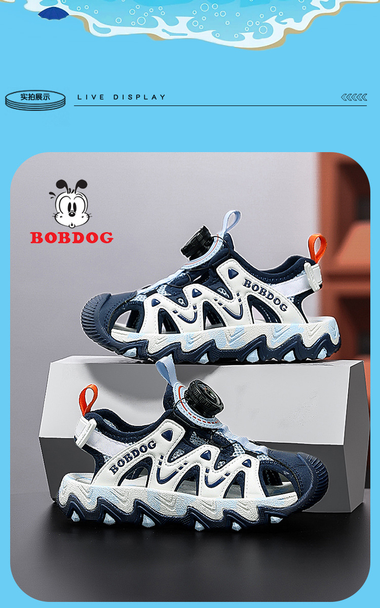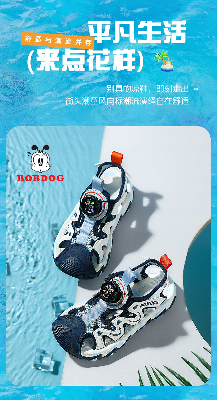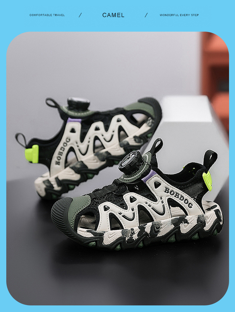 Babudou Sandalias para niño Verano 2025 Nuevo Baotou Suela suave Botón giratorio antideslizante Zapatos deportivos de playa para niños