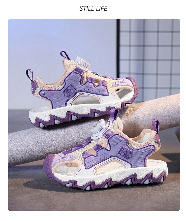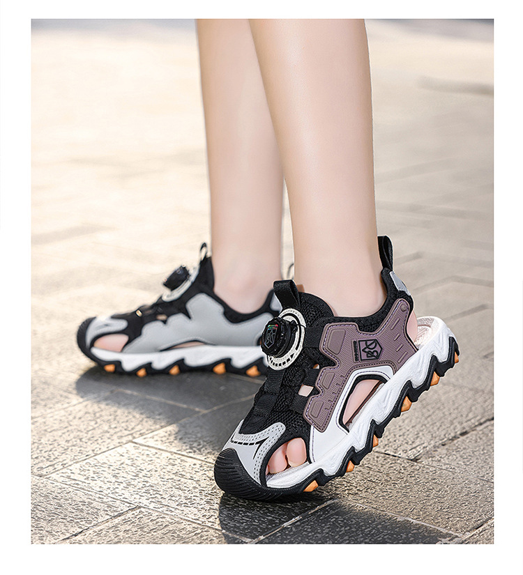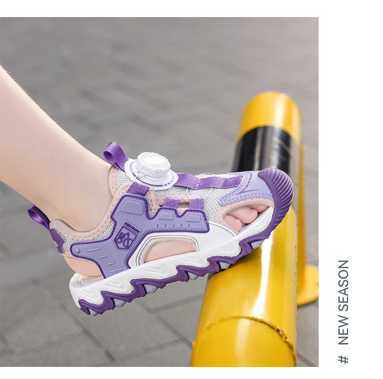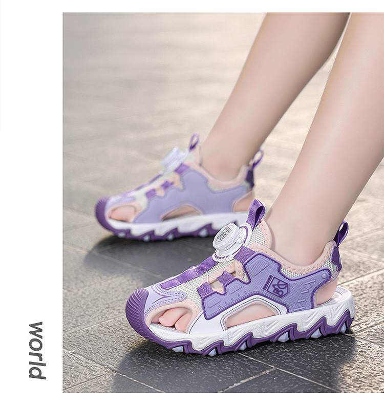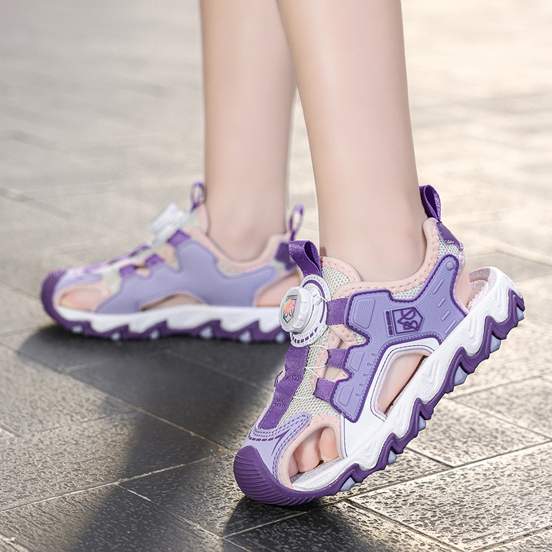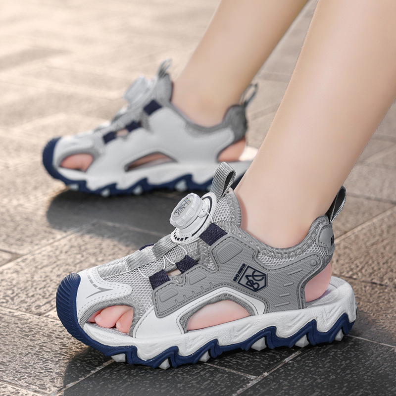 Sandalias Baotou para niñas 2025 nuevo botón giratorio para niños grandes zapatos de playa para niños antideslizantes de suela suave y resistentes al desgaste