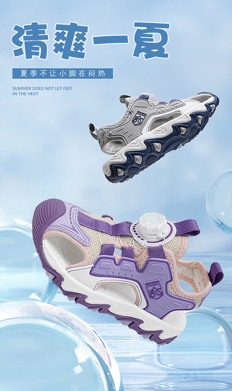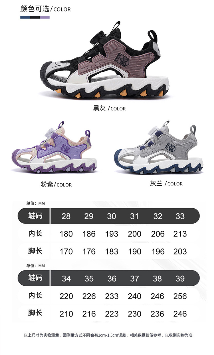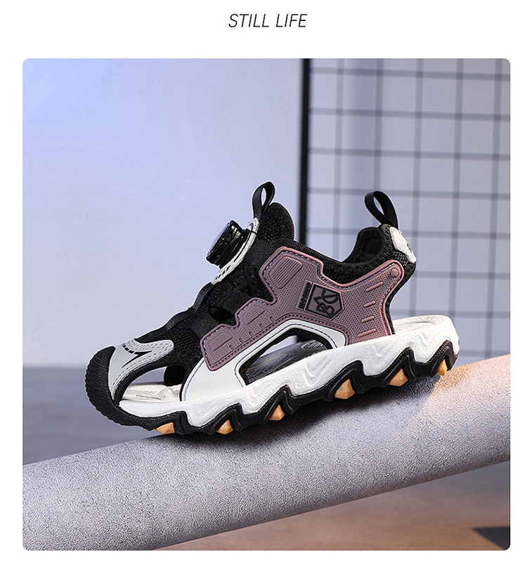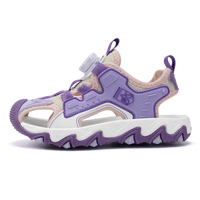 Sandalias Baotou para niñas 2025 nuevo botón giratorio para niños grandes zapatos de playa para niños antideslizantes de suela suave y resistentes al desgaste