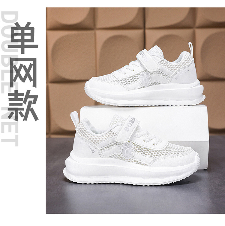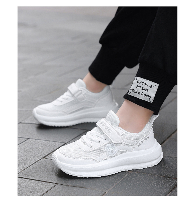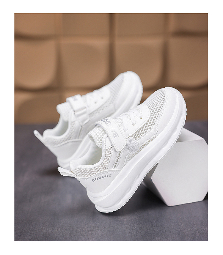 Babudou Zapatos para niños Calzado deportivo blanco para niños Calzado blanco para niños y niñas Calzado para correr de escuela primaria transpirable de una sola red de verano