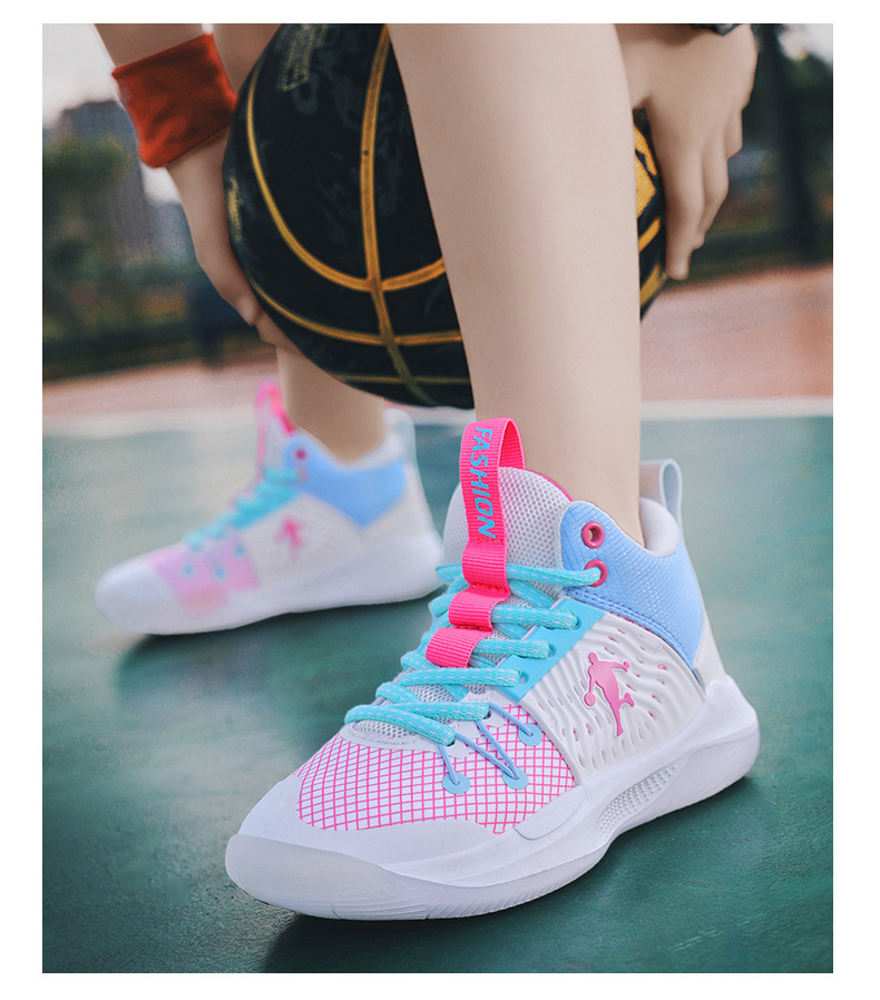 Zapatillas de baloncesto para niños 2025 verano nuevas zapatillas de deporte de combate real con superficie de malla transpirable para adolescentes zapatos para correr con absorción de impactos resistentes al desgaste
