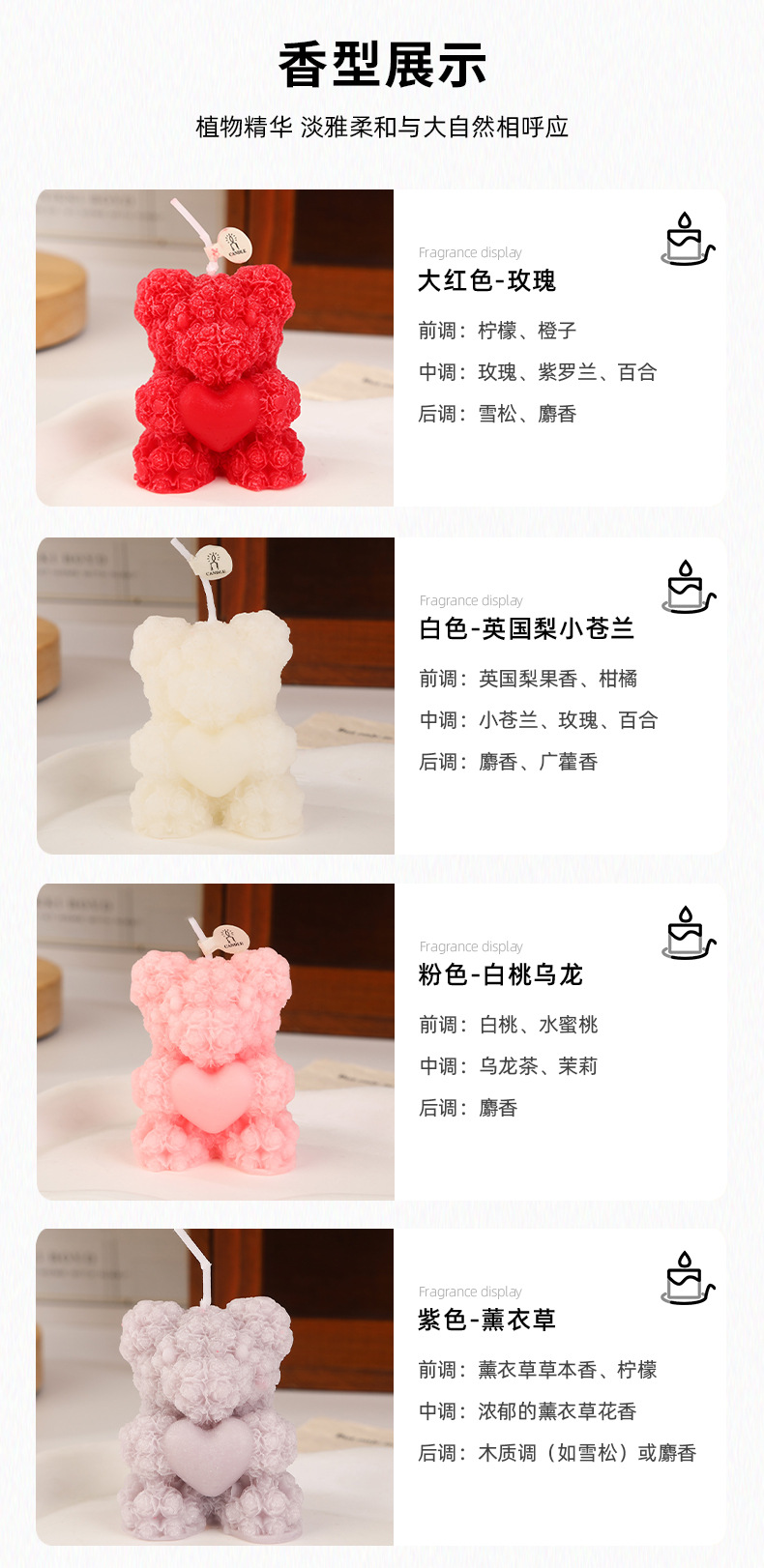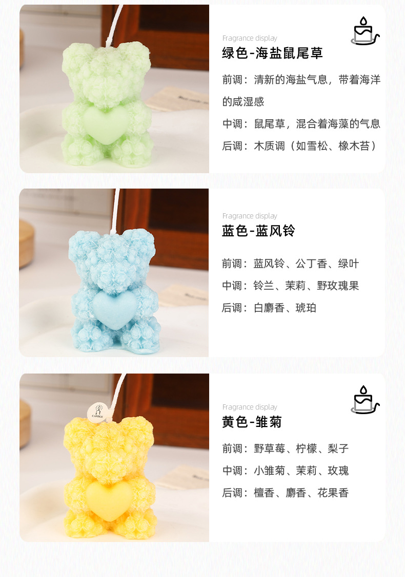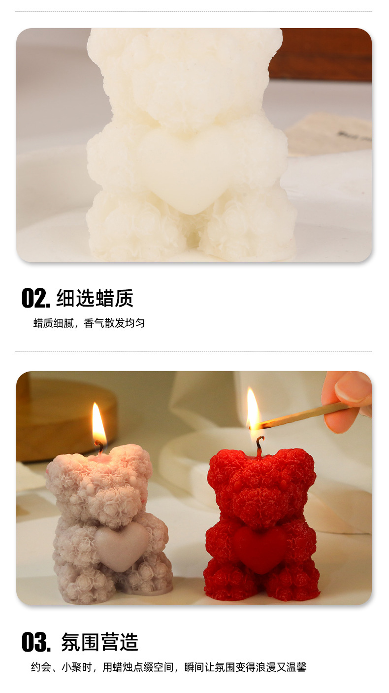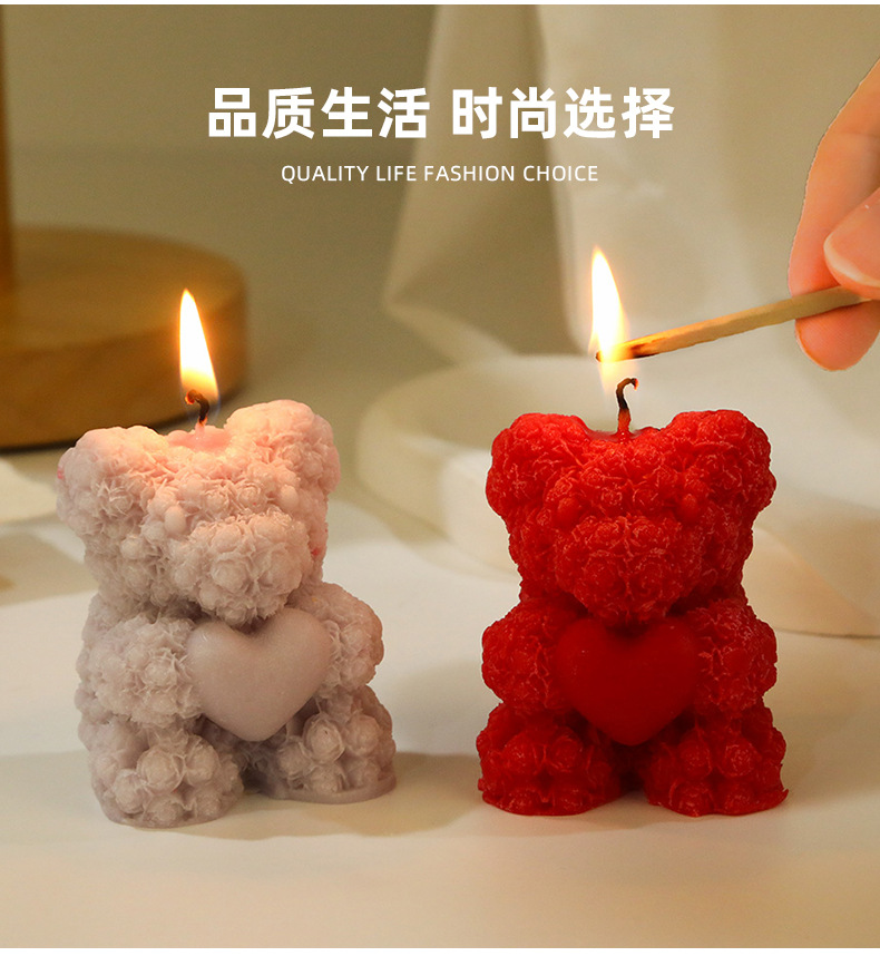 Rose bear perfume vela al por mayor creativa casera de la atmósfera del día de San Valentín perfume regalo de mano modelado vela transfronteriza