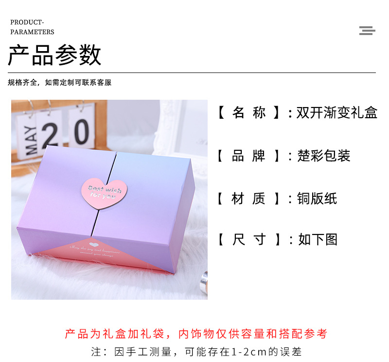 Caja de regalo con doble apertura degradada "Gradient Love" + bolsa de regalo; N.º 1: 20*15*7