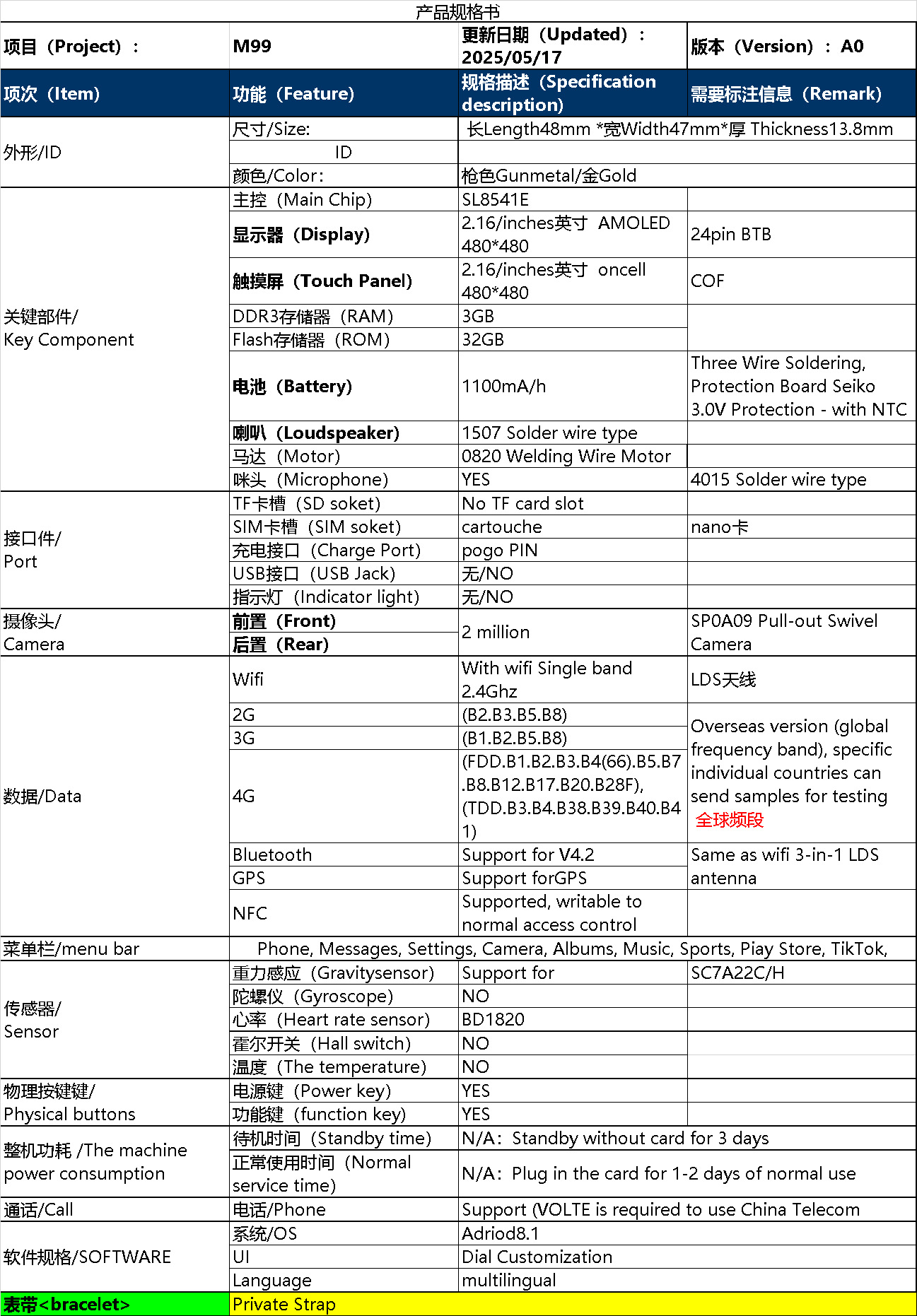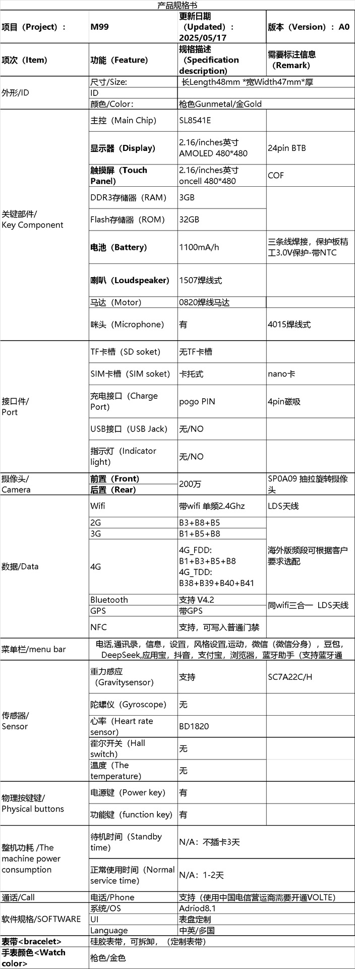 | Color | M99 [versión china] Negro. (3 + 32) + 1100mA + cinta de silicona + cable de carga + película, M99 [versión china] plateado. (3 + 32) + 1100mA + cinta de silicona + cable de carga + película, M99 [versión en inglés] negro.. (Pantallas anchas + Google), M99 [versión en inglés] Plata.. ((Pantallas anchas + Google), M99 [versión en chino] Negro. (3 + 32) + 1100mA + cable de carga + película + silicona + acero de Milán doble banda, M99 [versión china] plata. (3 + 32) + 1100mA + cable de carga + película + silicona + acero de Milán doble banda |
