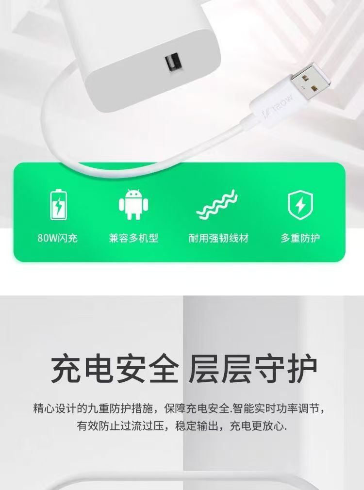 Aplicable a vivo80w cargador X80 cabeza de carga súper rápida S18 / 16 / 15 cabeza de carga flash cable de datos de cargaTypec