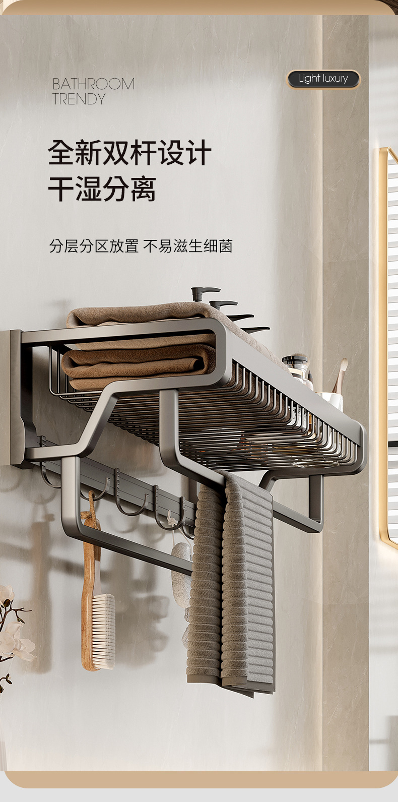 Rack de toallas de baño sin perforación de baño de baño de inodoro de almacenamiento de ropa integrada de pared rack de toallas de baño