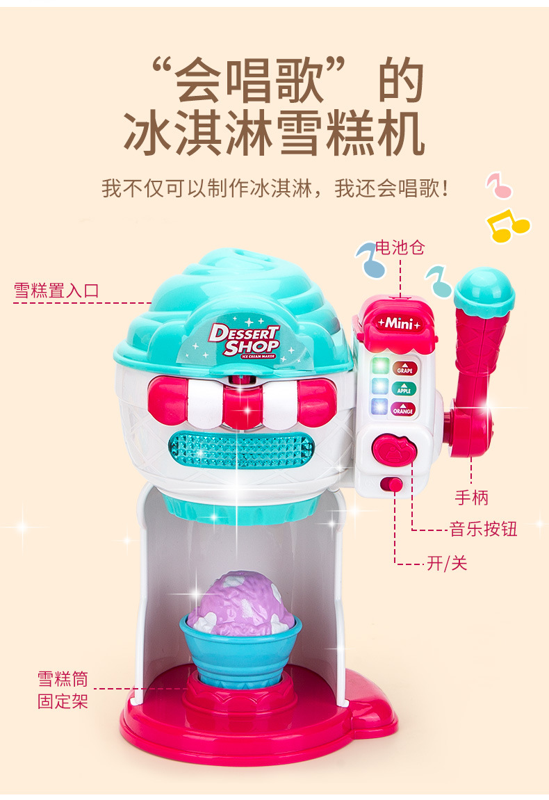 Luz, música, helado, helado, juguetes de cocina, postres, juguetes para niños al por mayor.
