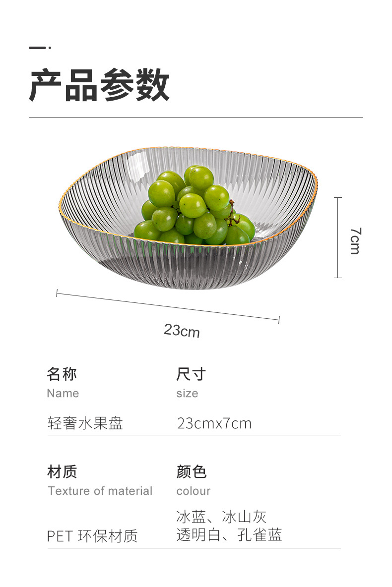 Sala de estar, mesa de centro para el hogar, simple, ligero, lujoso, plato de frutas de alto valor, borde dorado, almacenamiento de bocadillos gruesos, frutas y verduras al por mayor