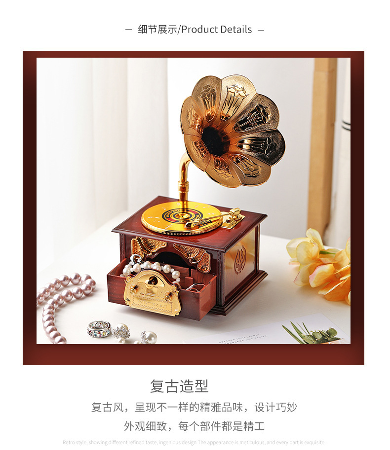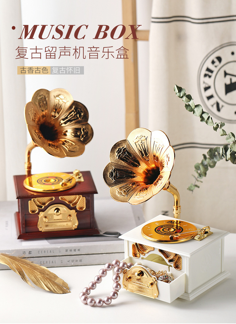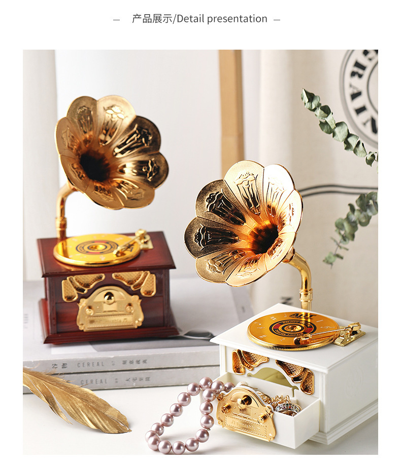 Gramo clásico retro modelado música decoración de escritorio decoración retro caja de sonido regalo del día del estudiante para niños