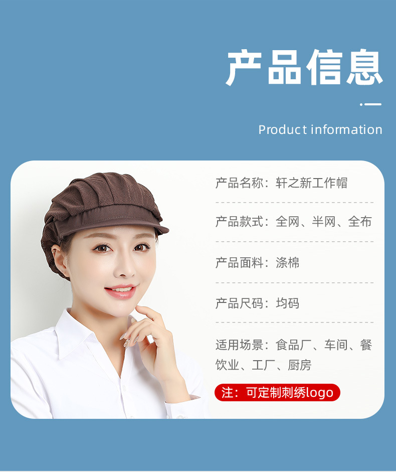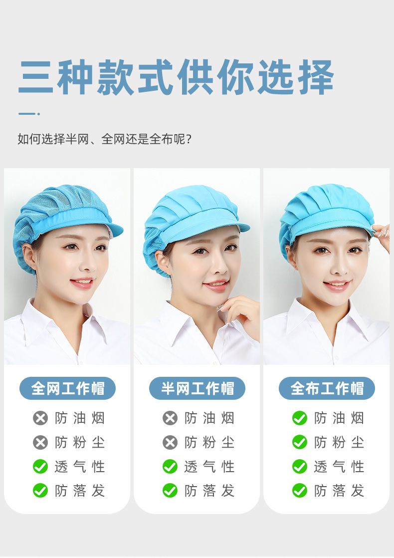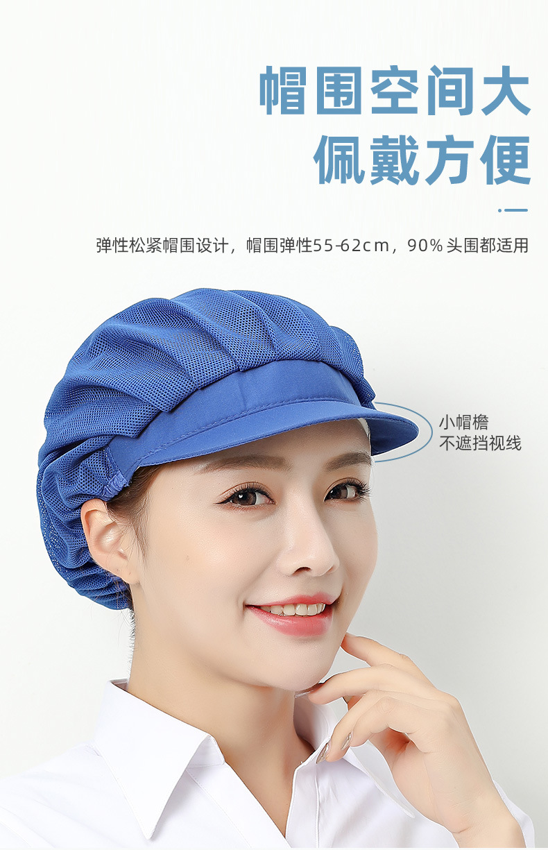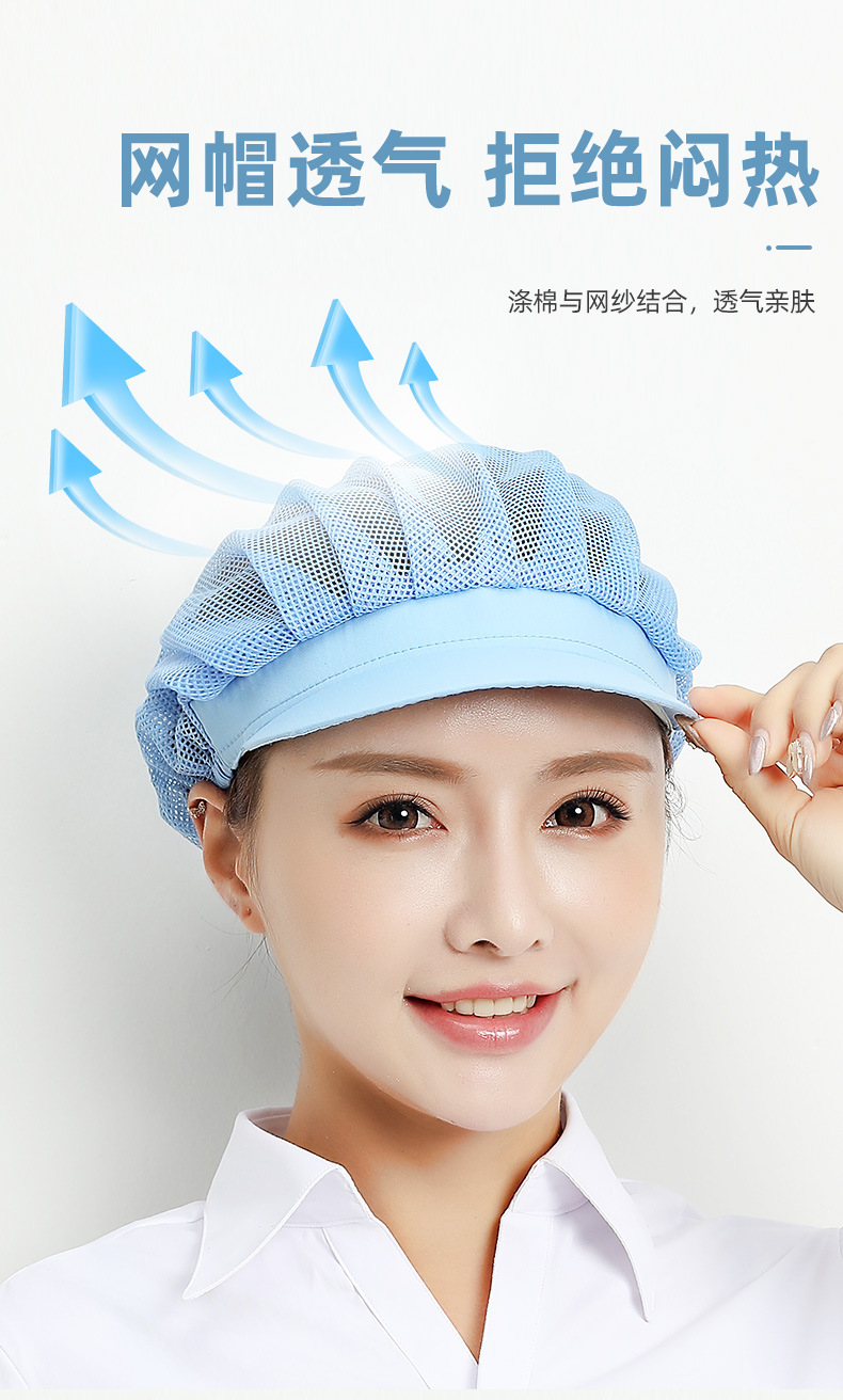 Gorros de trabajo para fábrica y taller de Xuanzhi, gorros de malla para cantina, a prueba de polvo, para chefs y camareros de restaurantes, para higiene alimentaria.