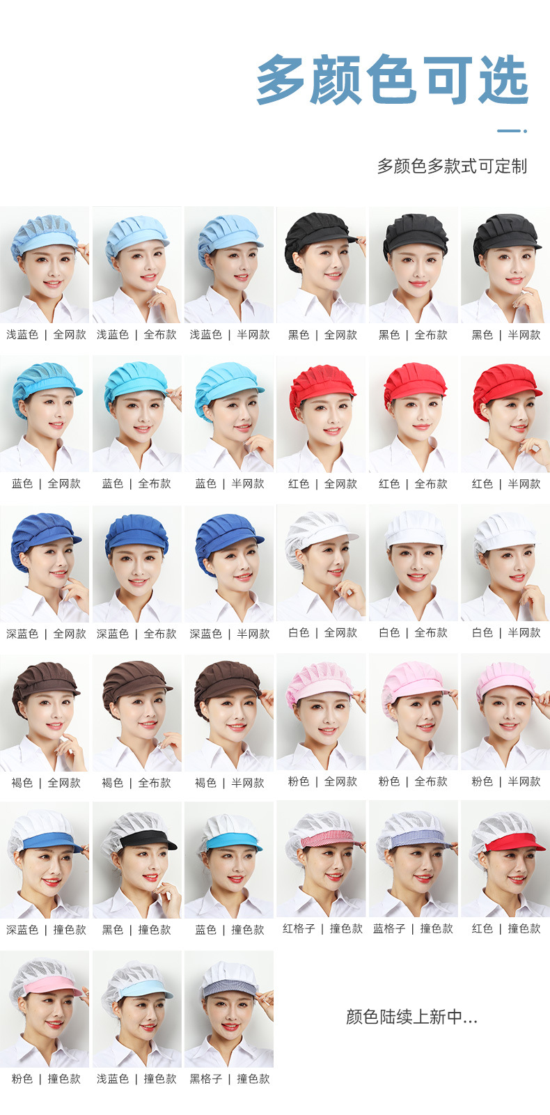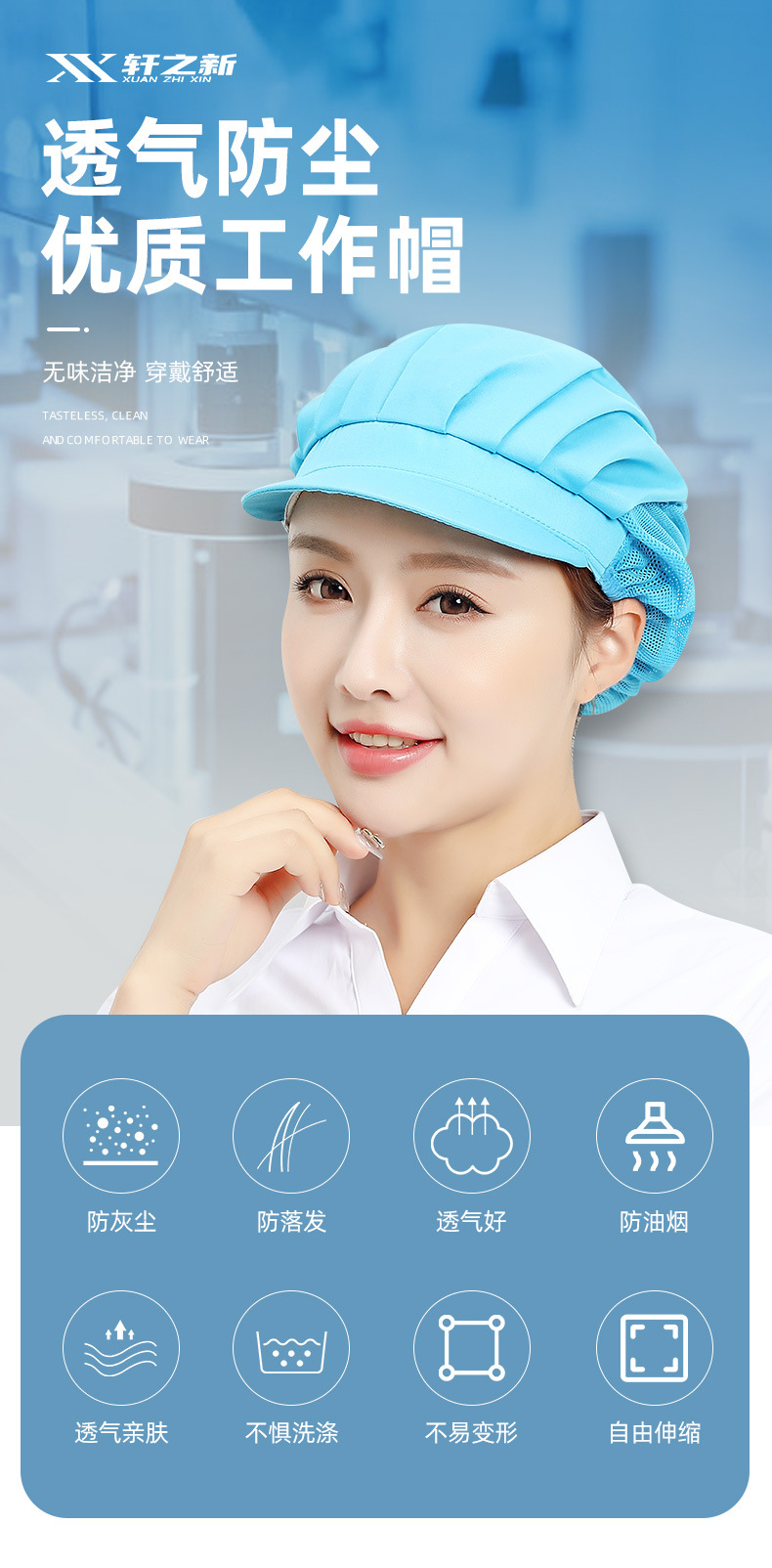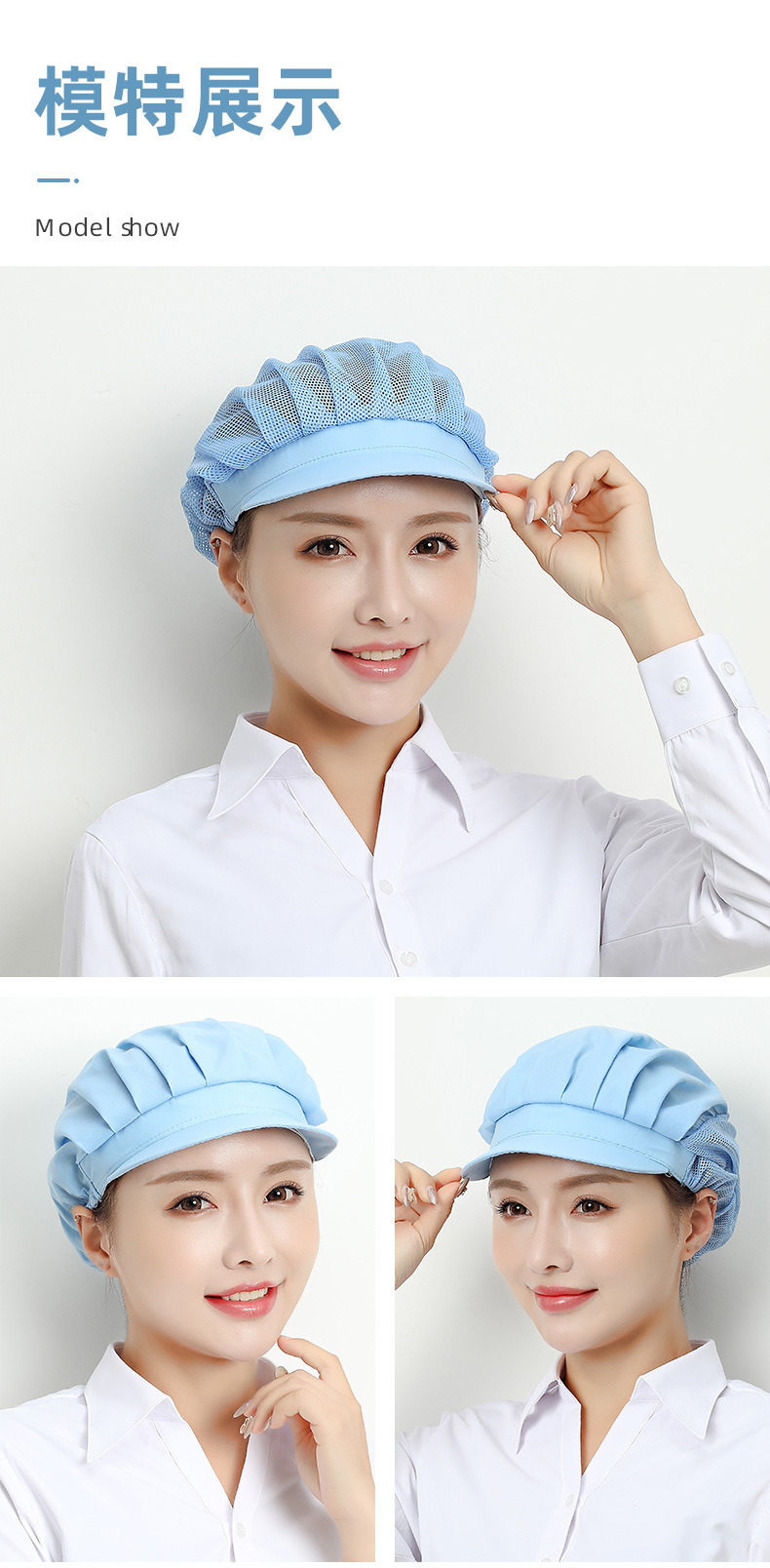 Gorros de trabajo para fábrica y taller de Xuanzhi, gorros de malla para cantina, a prueba de polvo, para chefs y camareros de restaurantes, para higiene alimentaria.