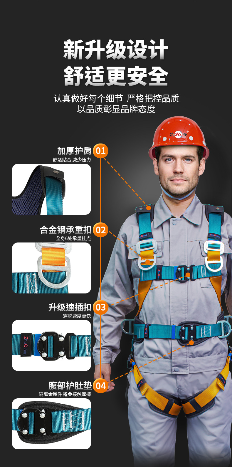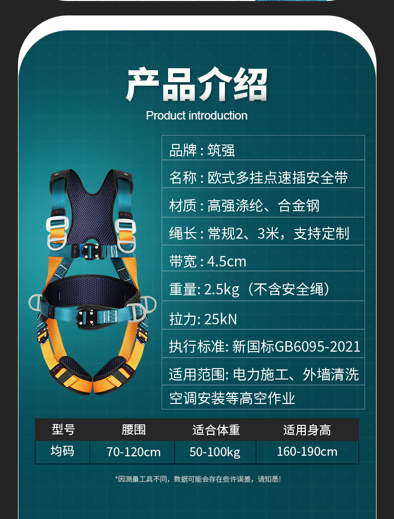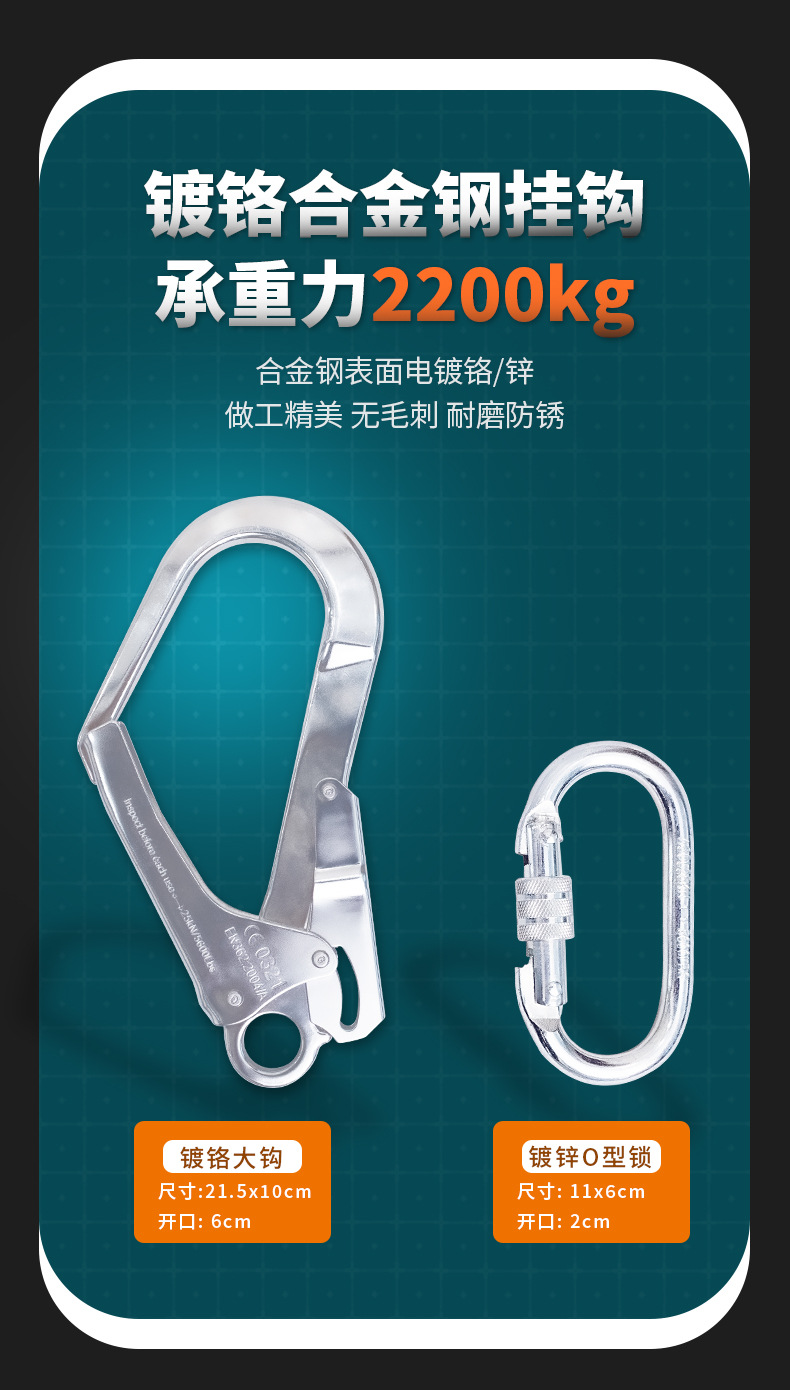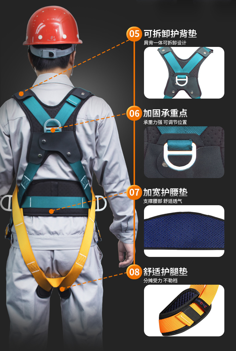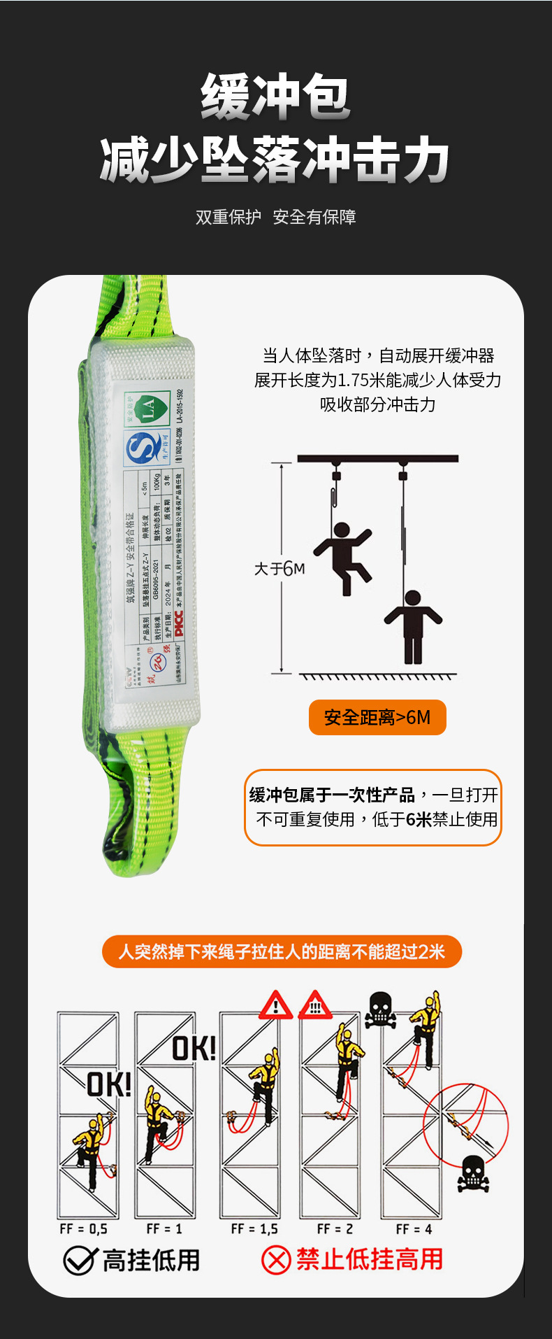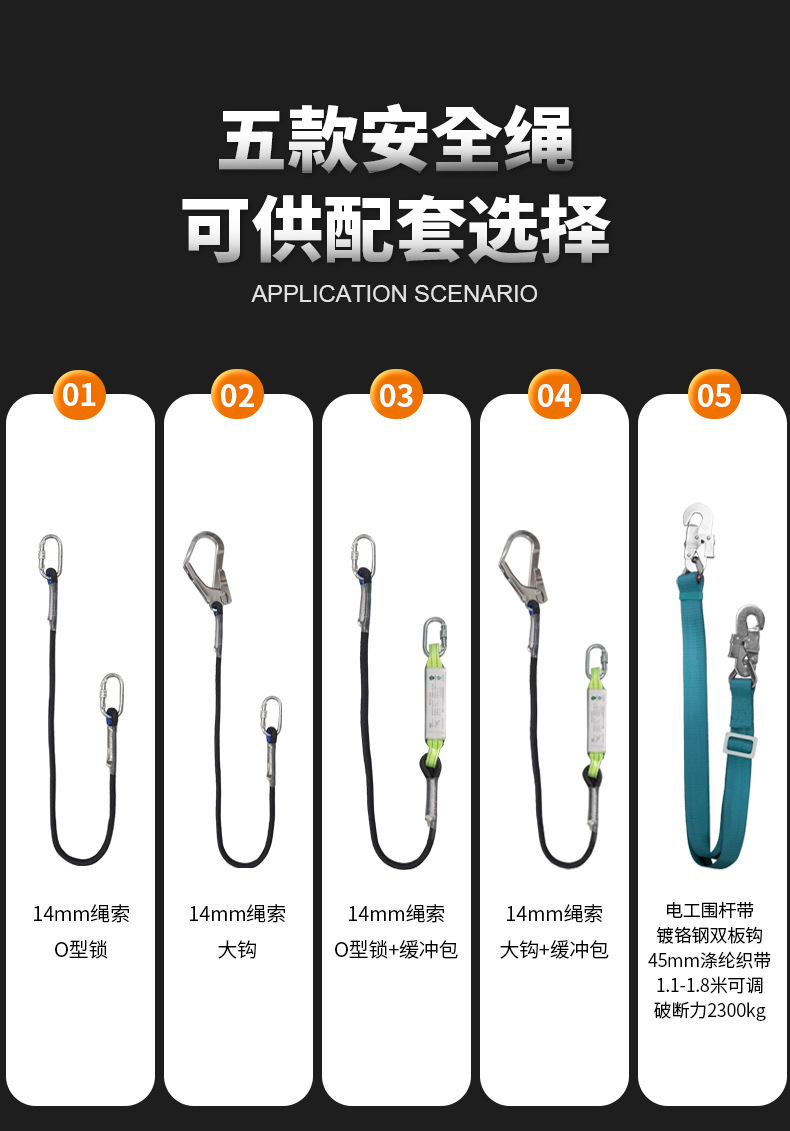 | Modelo | Cinturón de seguridad de inserción rápida de varios puntos de colgar de estilo europeo (sin cuerda de seguridad), gancho en forma de O único 1.8m, gancho en forma de O único 3m, gancho en forma de O único 1.8m, gancho en forma de O único 3m, gancho en forma de O doble 1.8m, gancho en forma de O doble 3m, gancho en forma de O doble 1.8m, gancho en forma de O doble 3m, gancho en forma de O único 1.8m + bolsa de amortiguación, gancho en forma de O único 1.8m + bolsa de amortiguación, gancho en forma de O doble 1.8m + bolsa de amortiguación, cinturón de barrera independiente (opcional) |