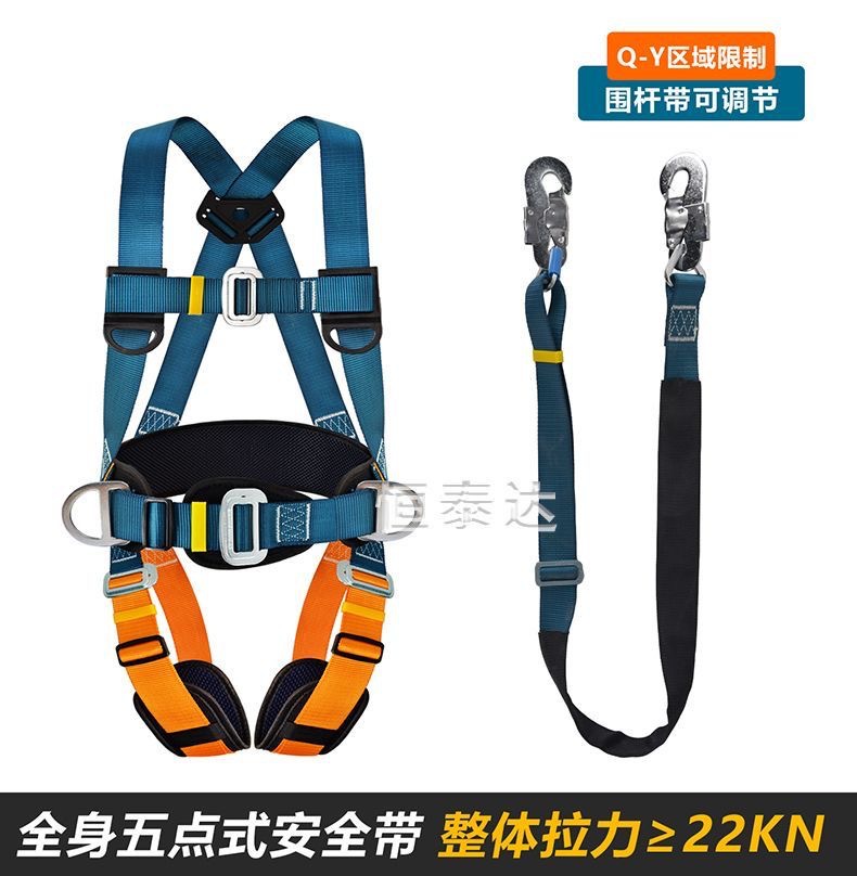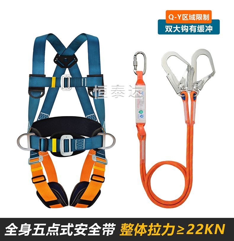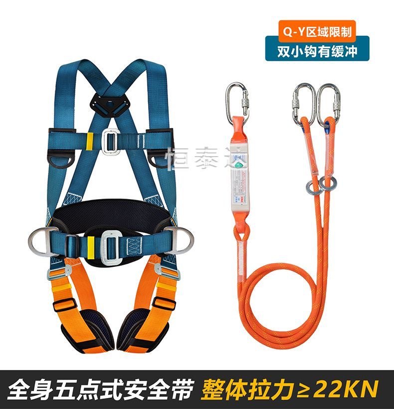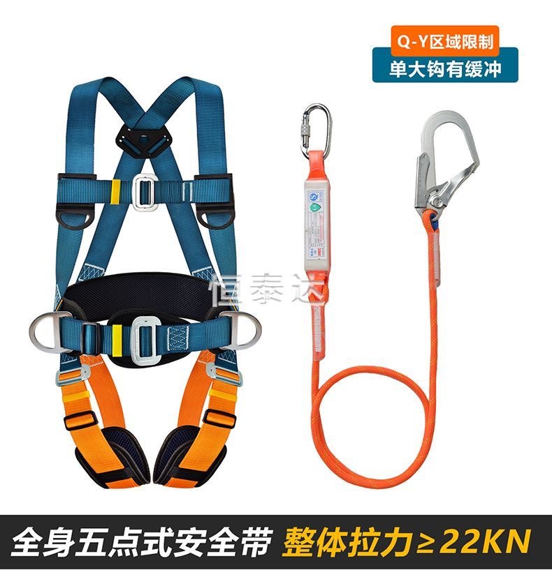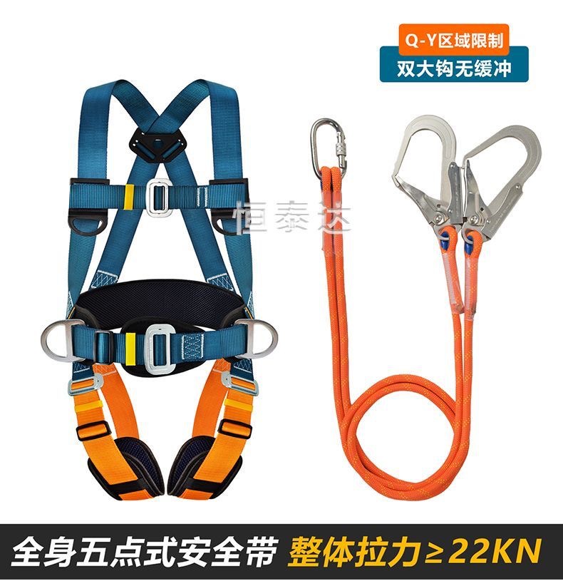 Nuevo cinturón de seguridad estándar nacional de cinco puntos de trabajo aéreo antiacaídas cuerda de seguridad doble gancho bolsa de amortiguación doble gancho conjunto completo