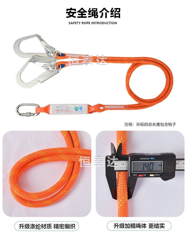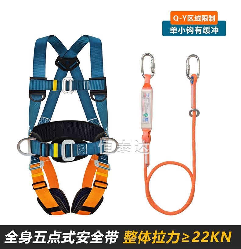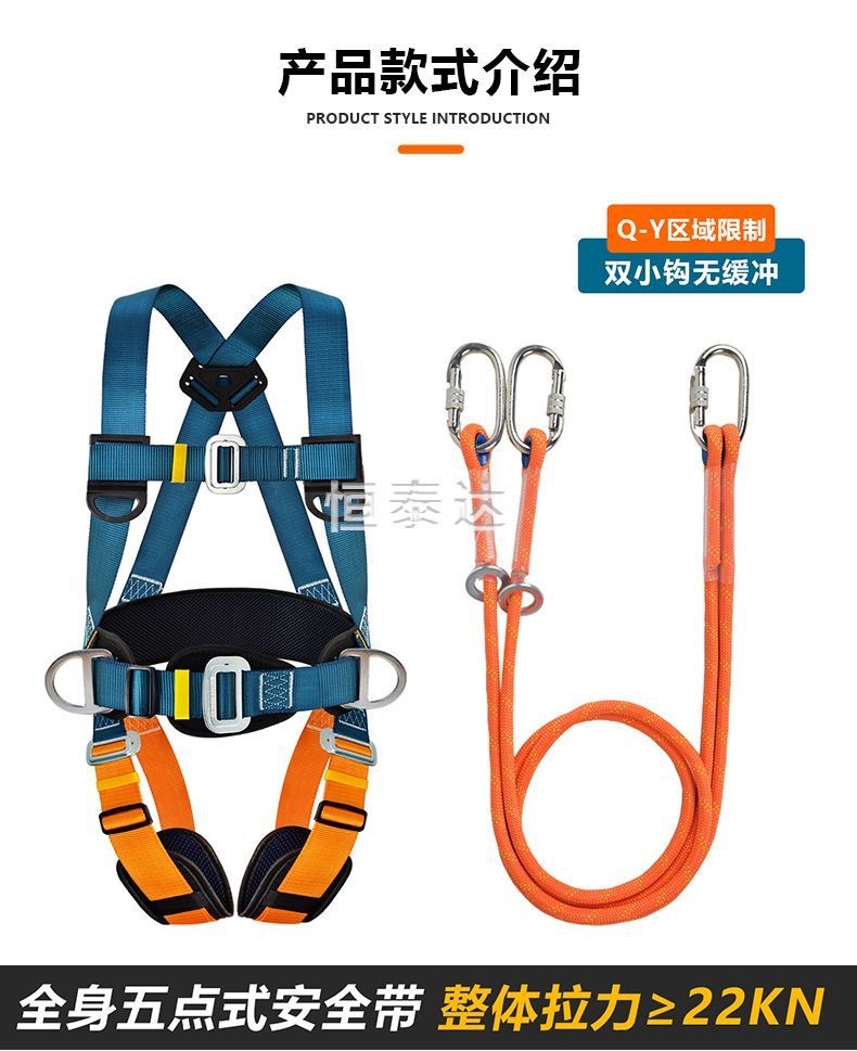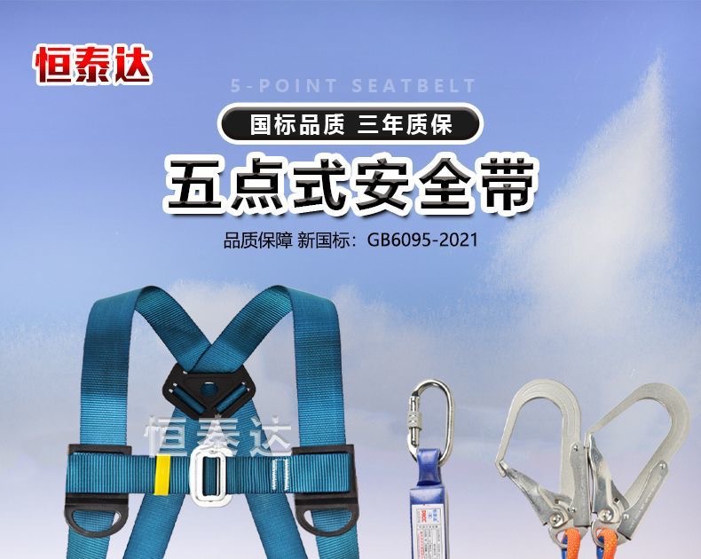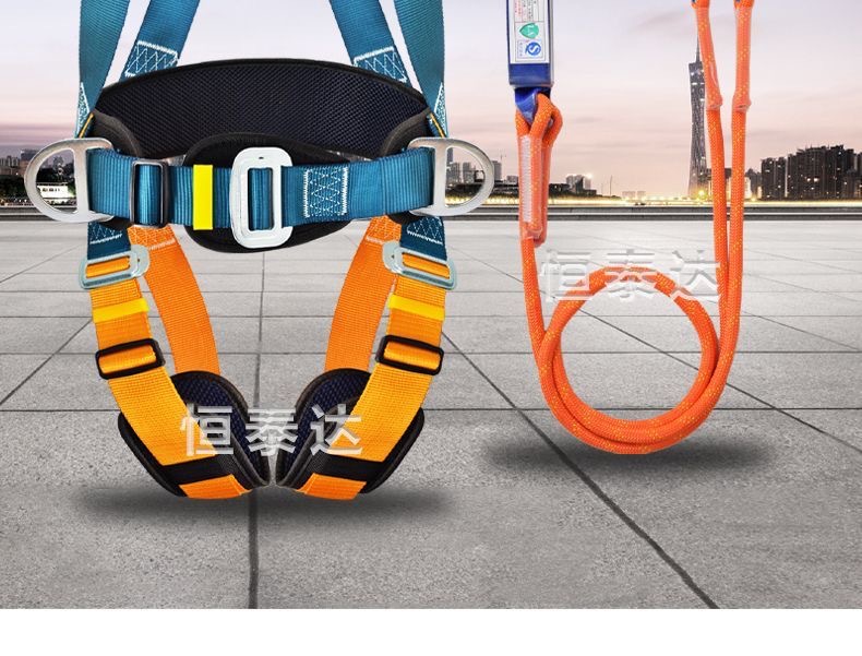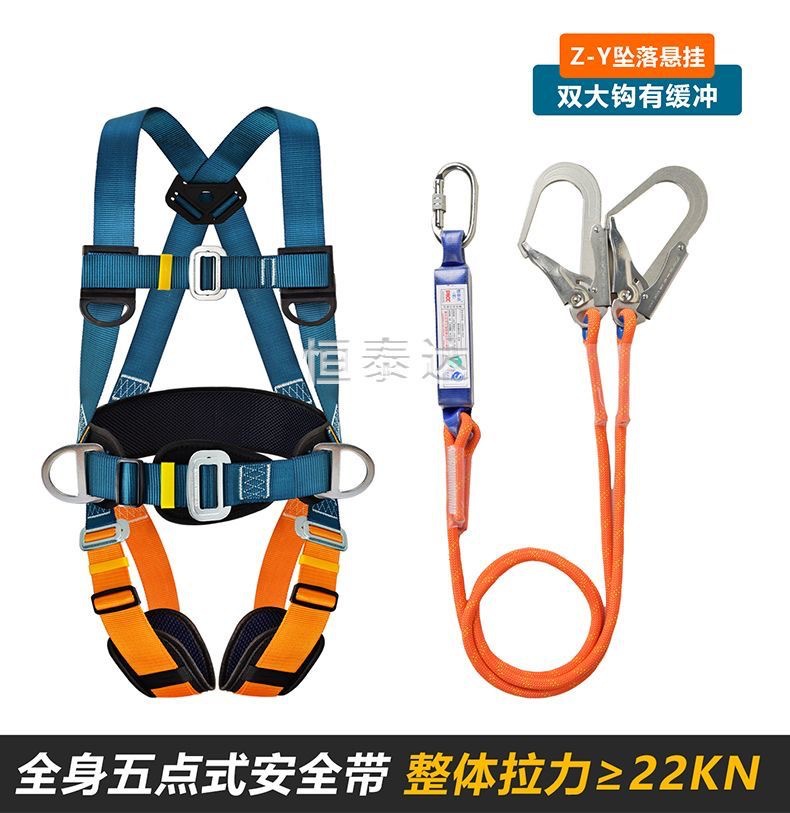 Nuevo cinturón de seguridad estándar nacional de cinco puntos de trabajo aéreo antiacaídas cuerda de seguridad doble gancho bolsa de amortiguación doble gancho conjunto completo