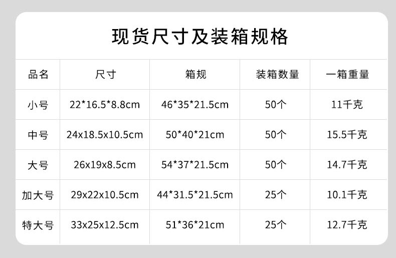 | Especificaciones | Pequeño 220 * 165 * 88mm, más grande 290 * 220 * 105mm, mediano 240 * 185 * 105mm, grande 260 * 190 * 85mm, grande 330 * 250 * 125mm |