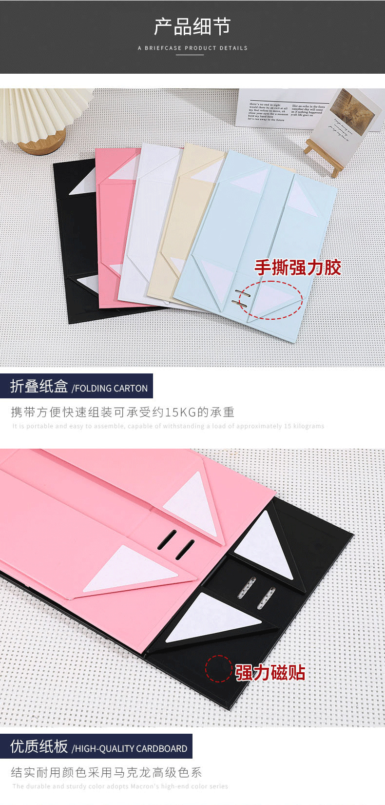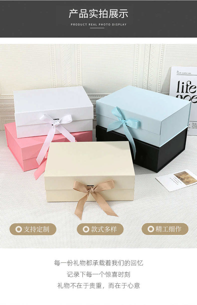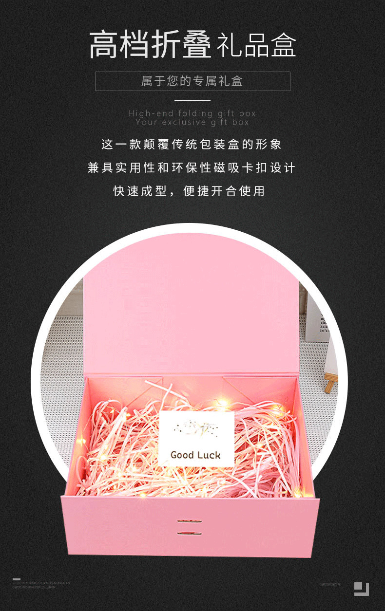 Caja plegable negra de alta calidad, comercio exterior, caja de embalaje plegable de una pieza, caja de regalo de negocios de alta gama, caja de cosméticos